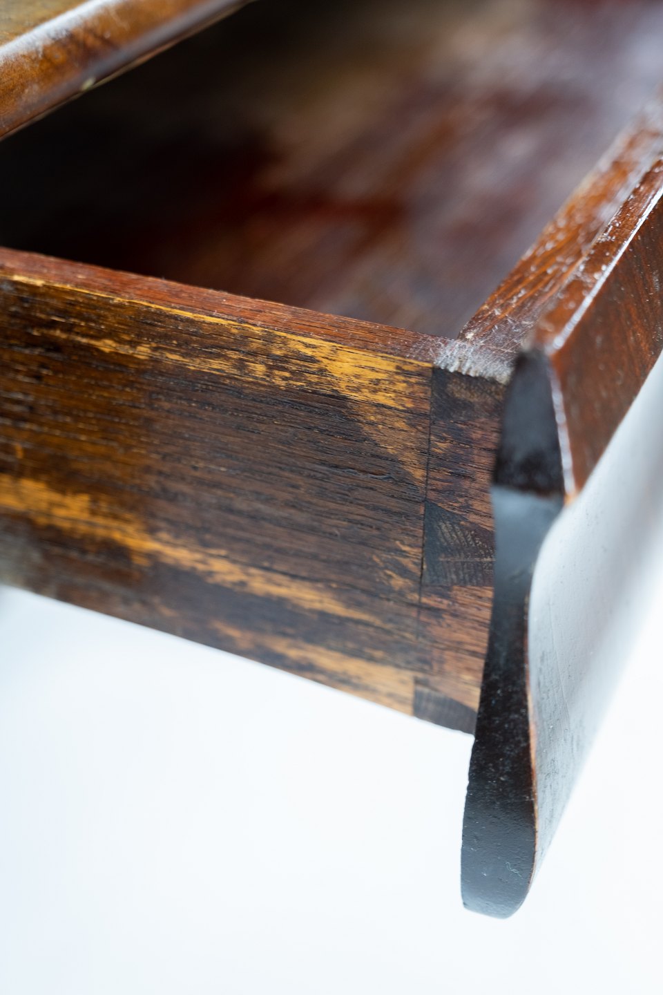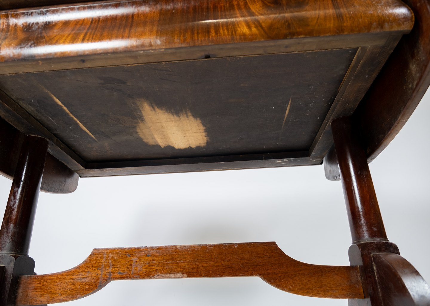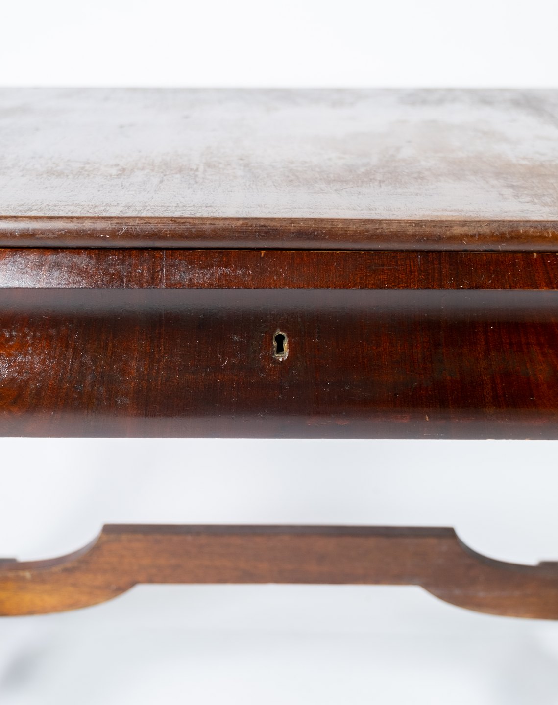 Antikt skrivebord af mahogni med skuffe og klapper fra 1860.