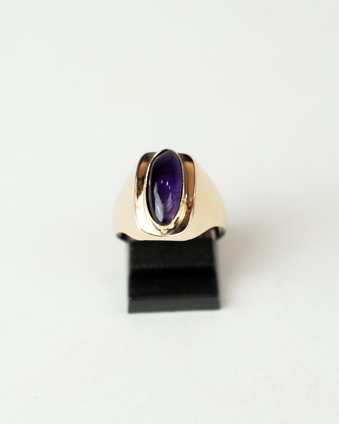 Ring decorated with amethyst and of 14 carat gold, stamped FF.