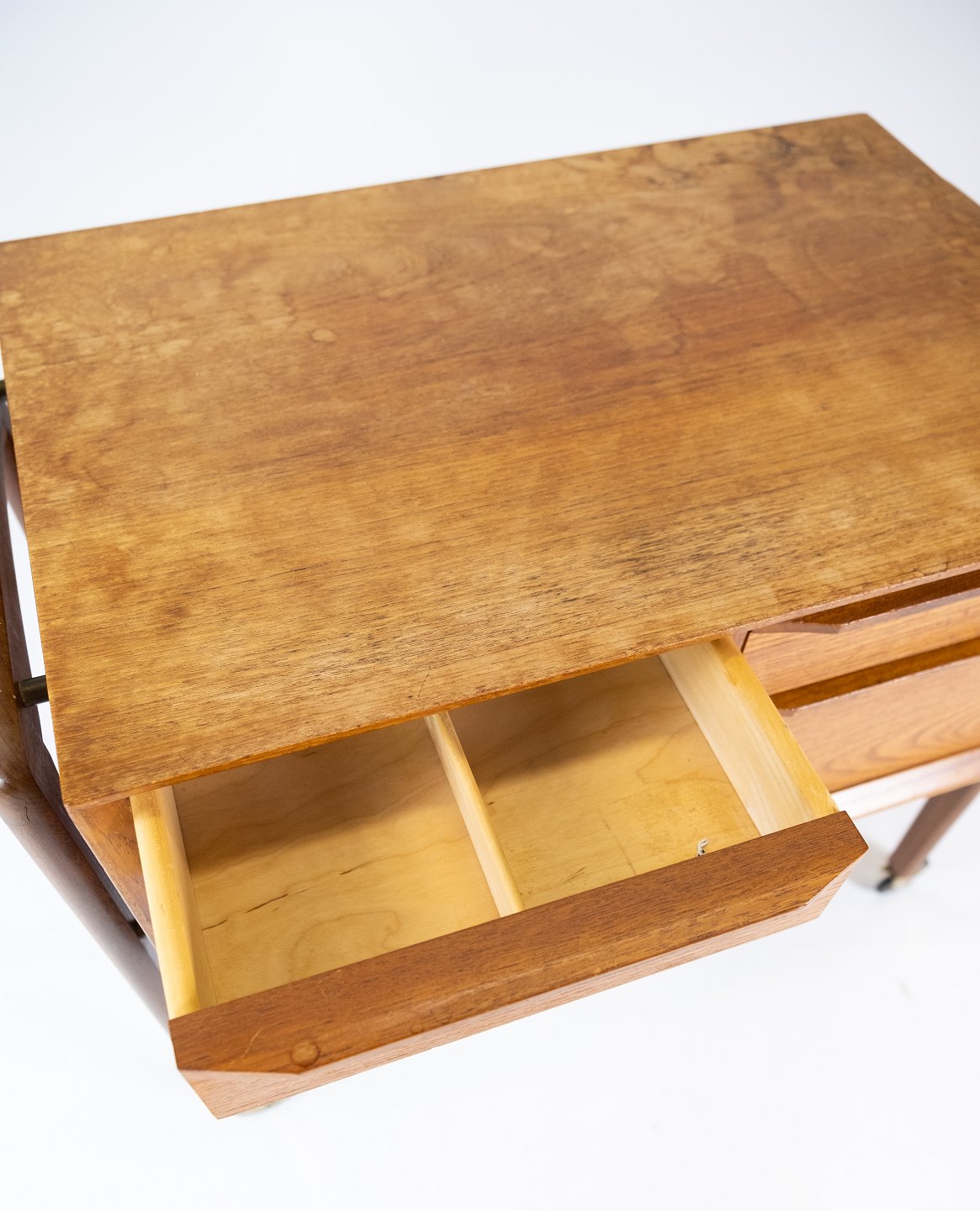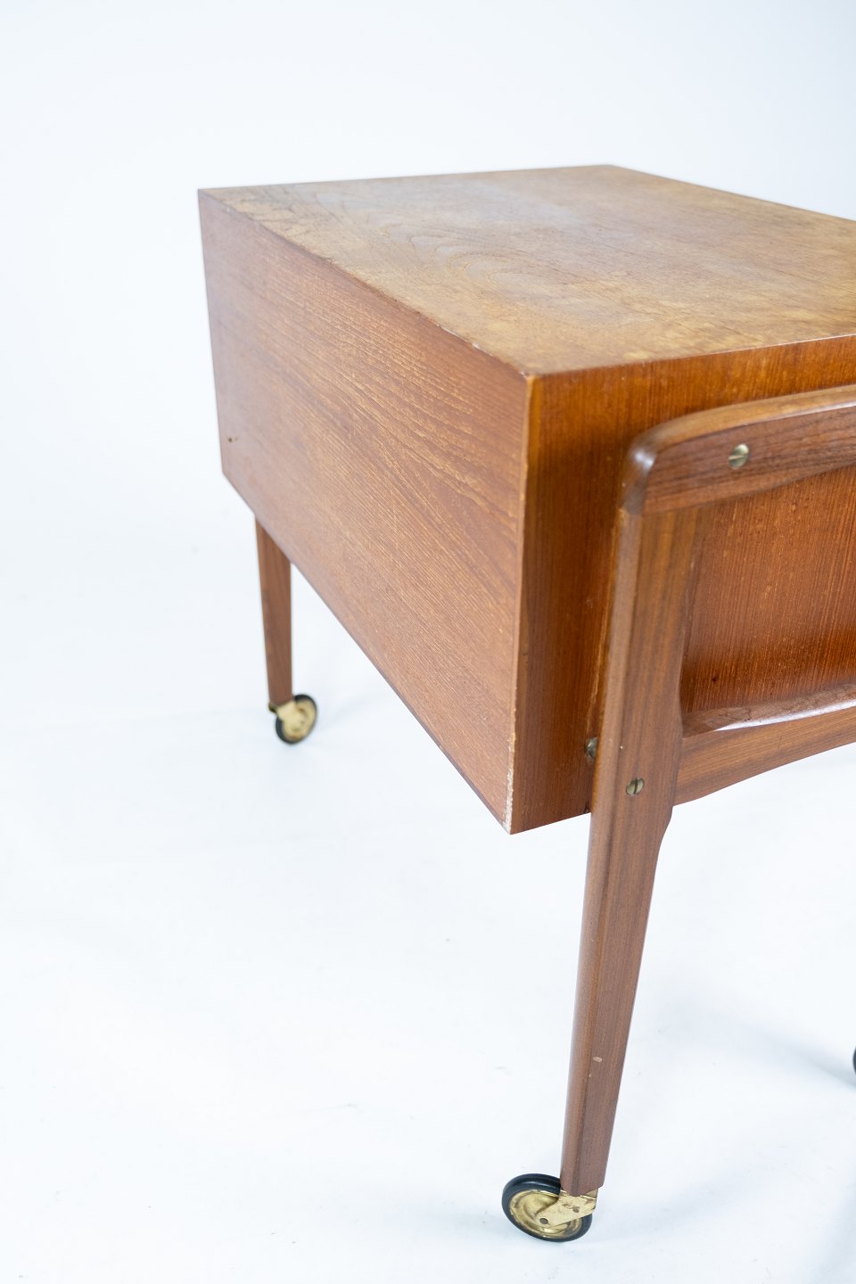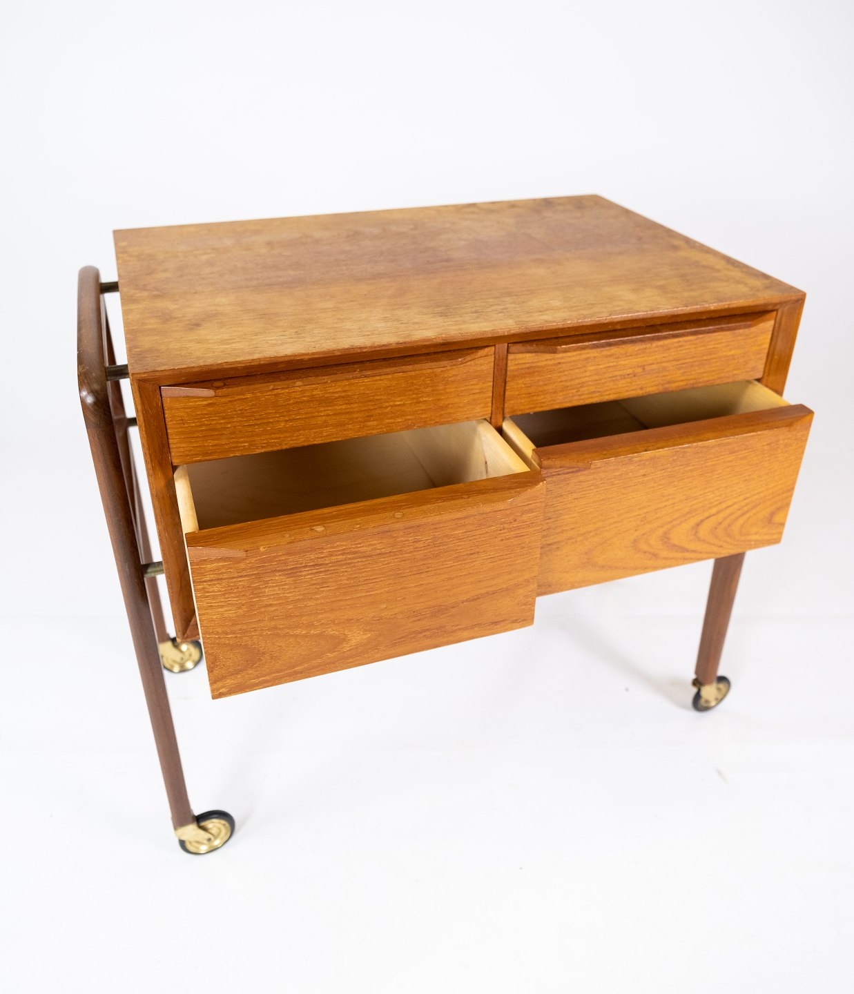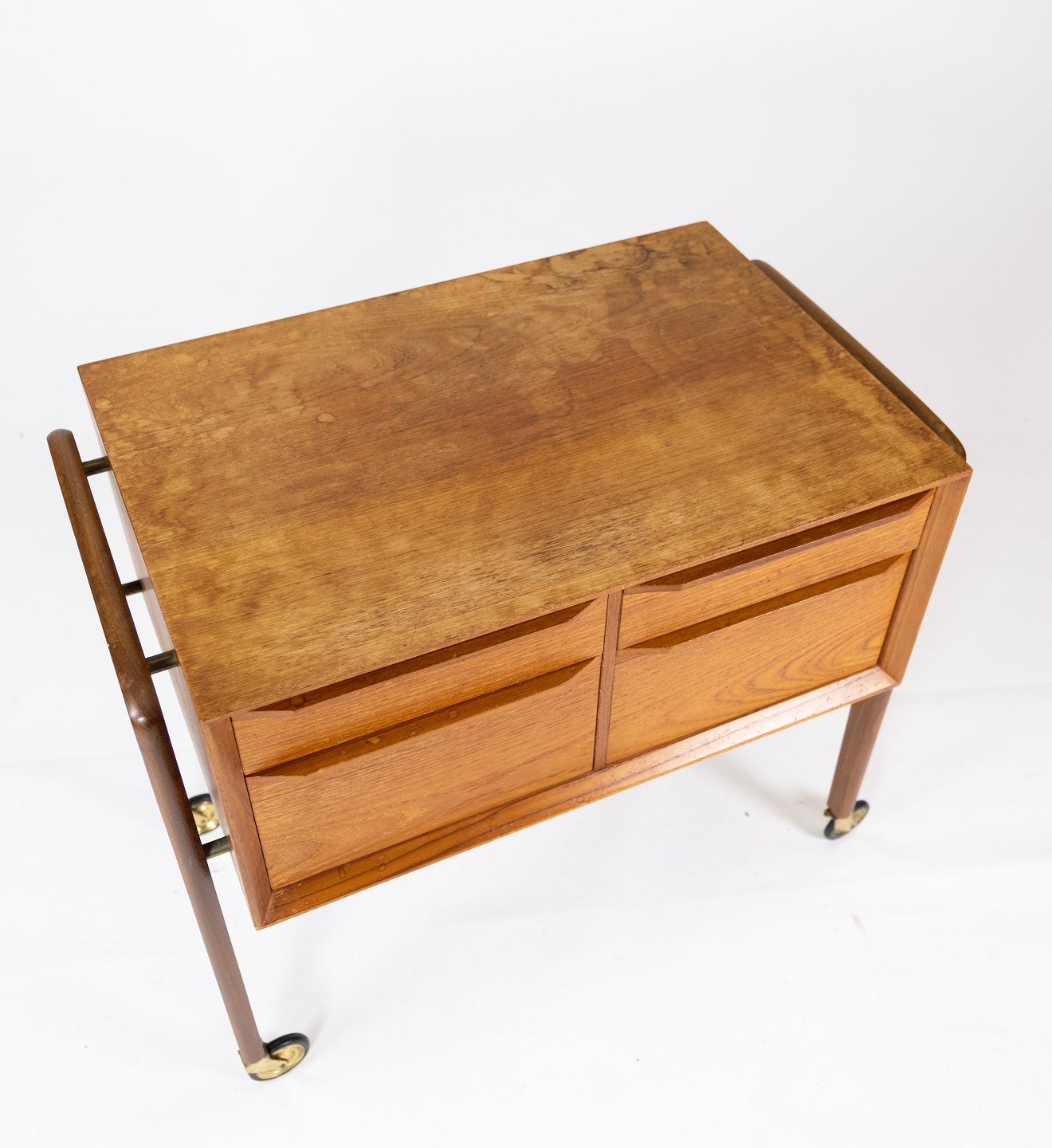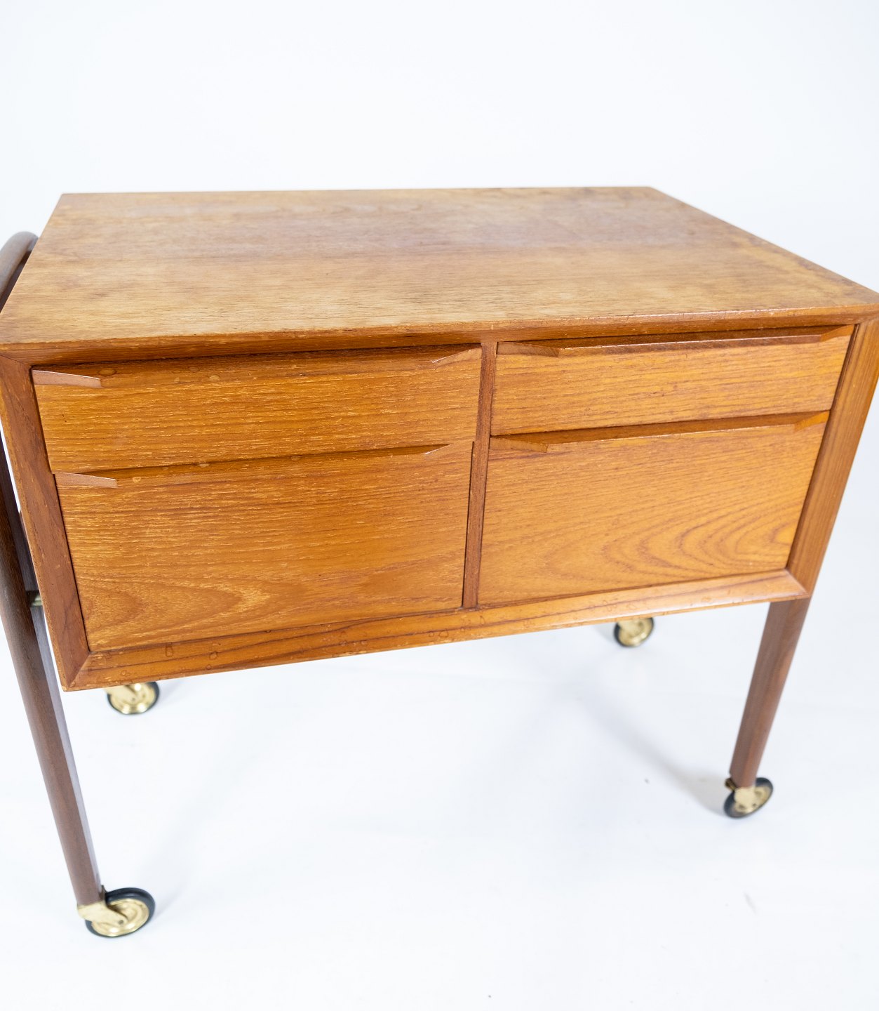 SolgtSidebord med skuffer og på hjul i teak af dansk design fra 1960erne. Bordet er i flot brugt stand.