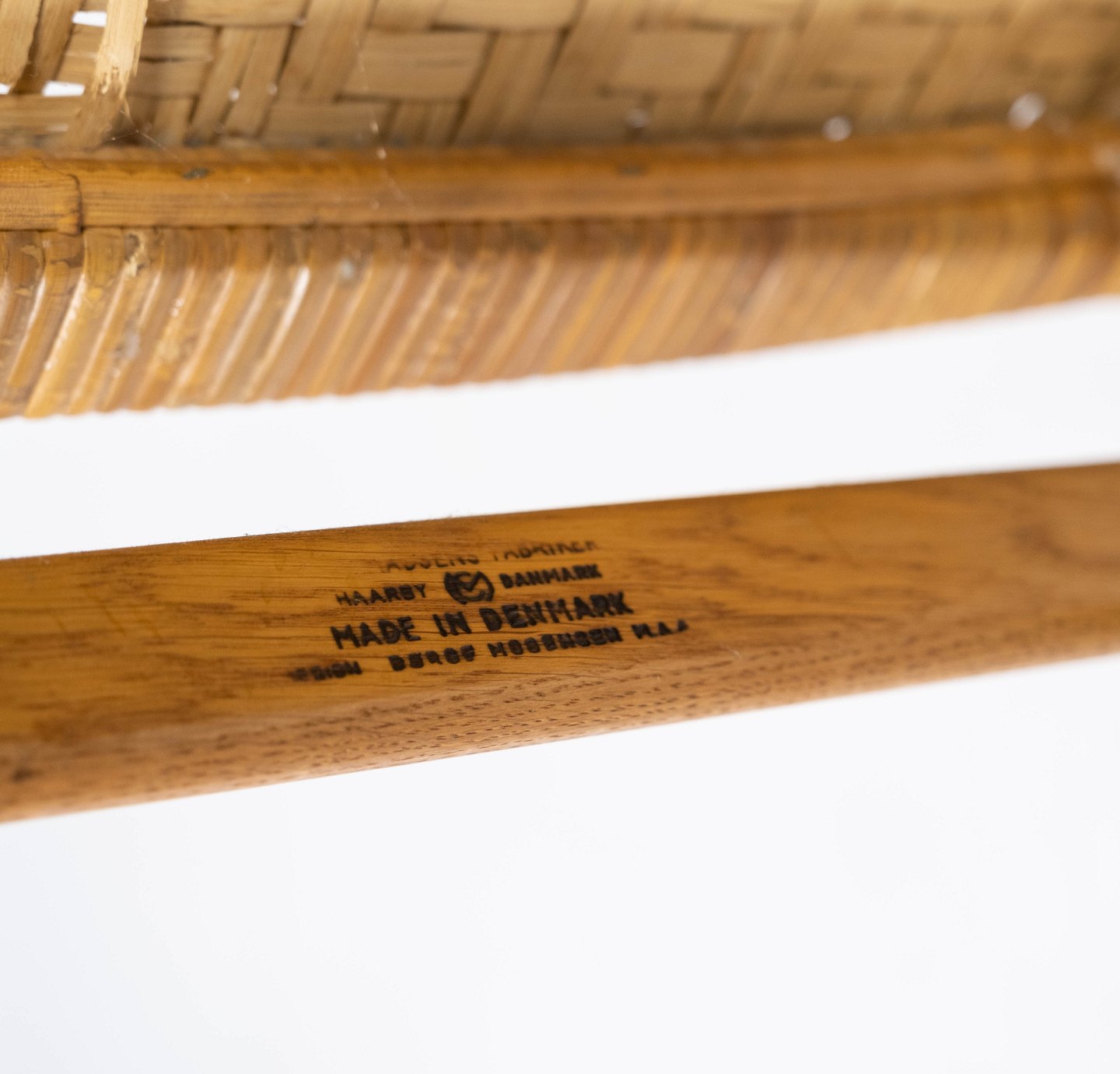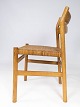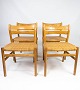 Et sæt af fire spisestuestole i egetræ og sæde i flet, designet af Børge Mogensen og fremstillet af Haaby Møbler i 1960erne. Stolene er i flot brugt stand.