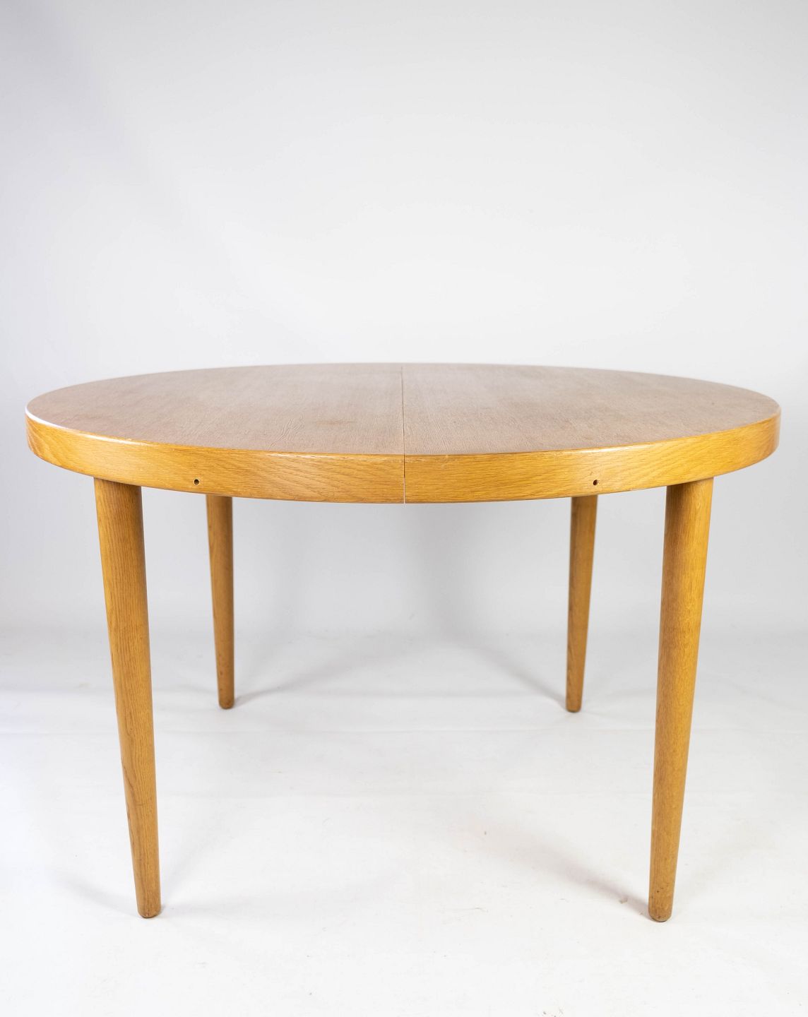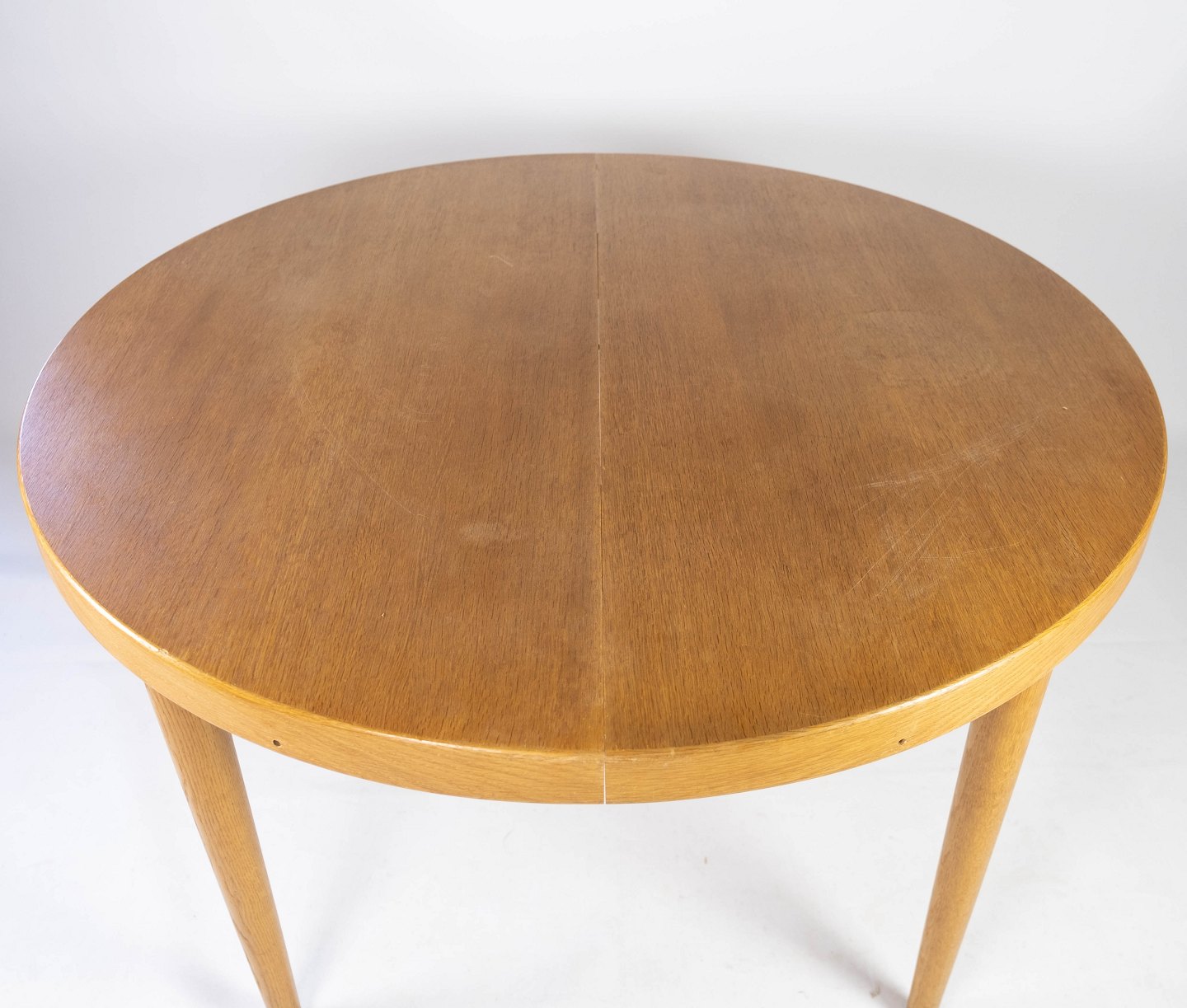 SolgtSpisebord i eg med to tillægsplader designet af Omann Junior fra 1960erne. Bordet er i flot brugt stand.