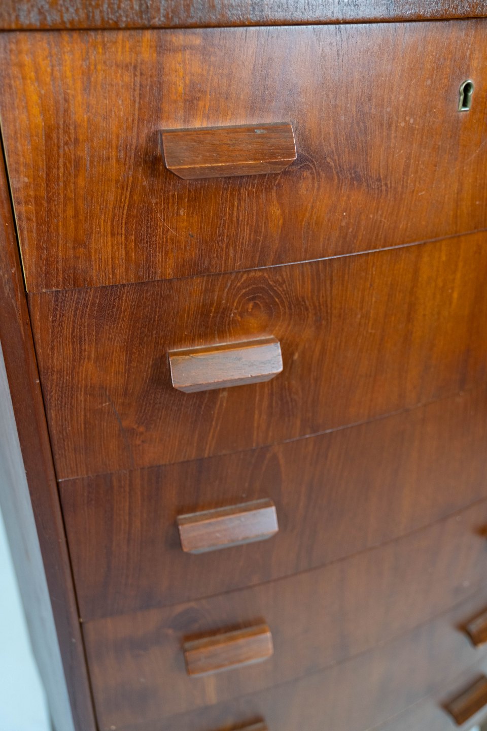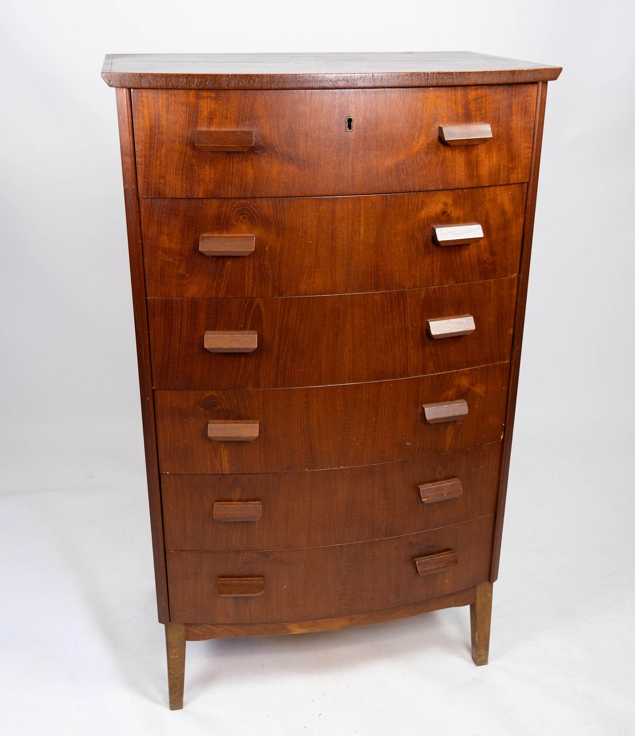 SoldTall chest of drawers in teak of danish design from the 1960s. The chest is in great vintage condition.
