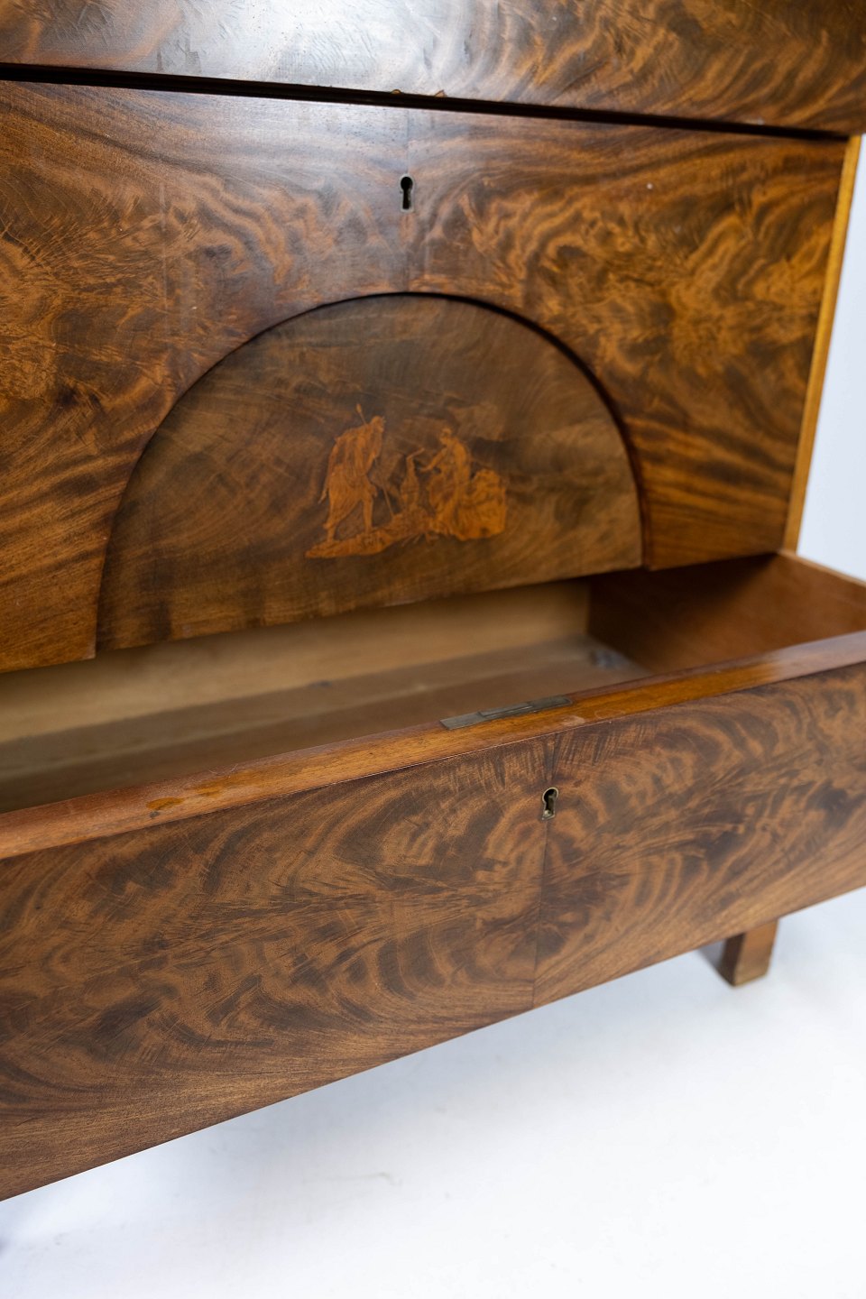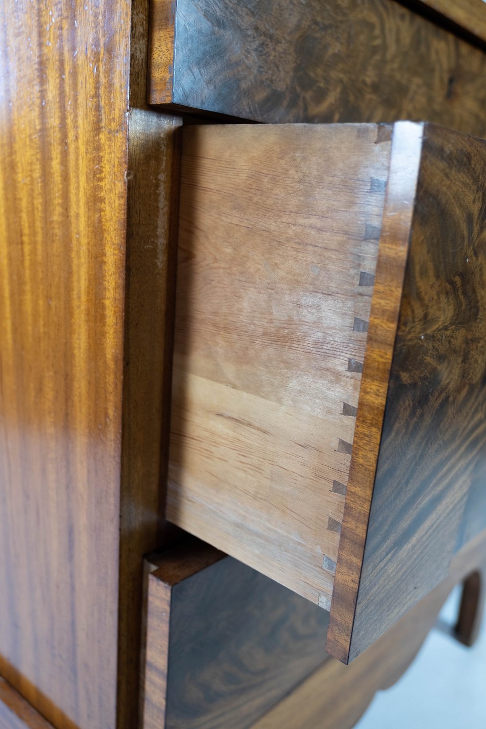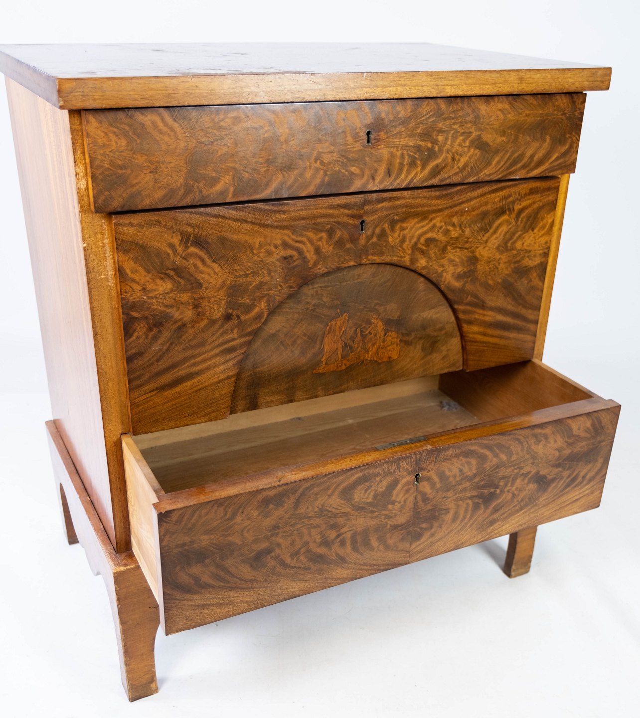Antique dresser of mahogany with inlaid wood, in great vintage condition from the 1840s.