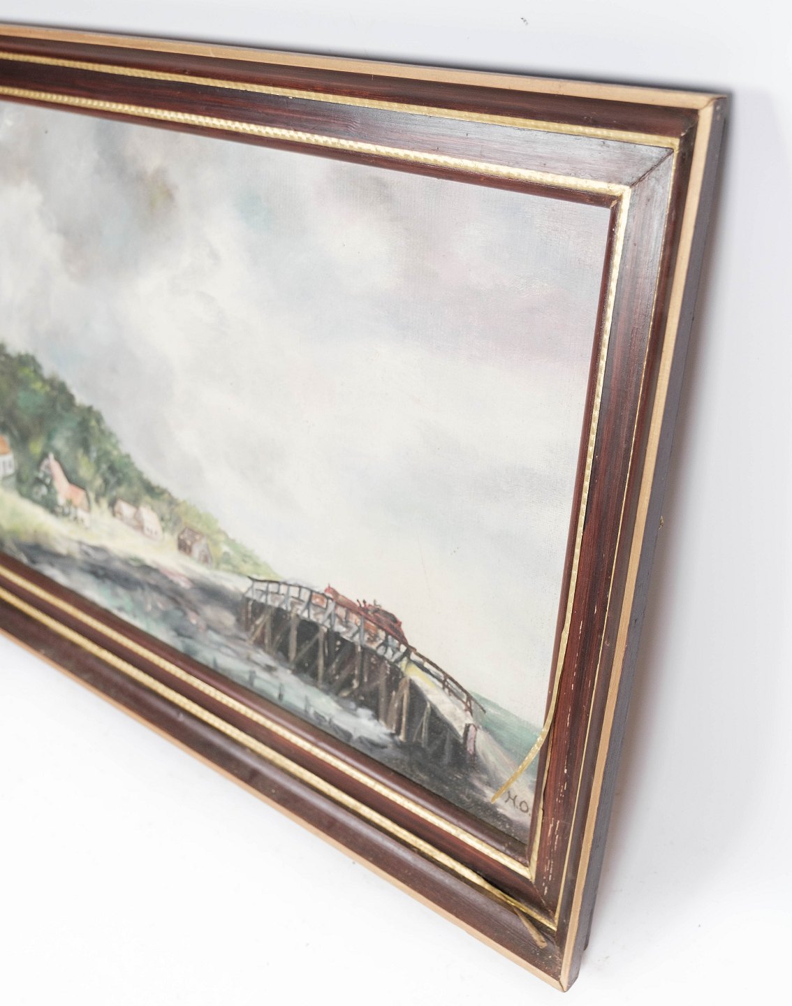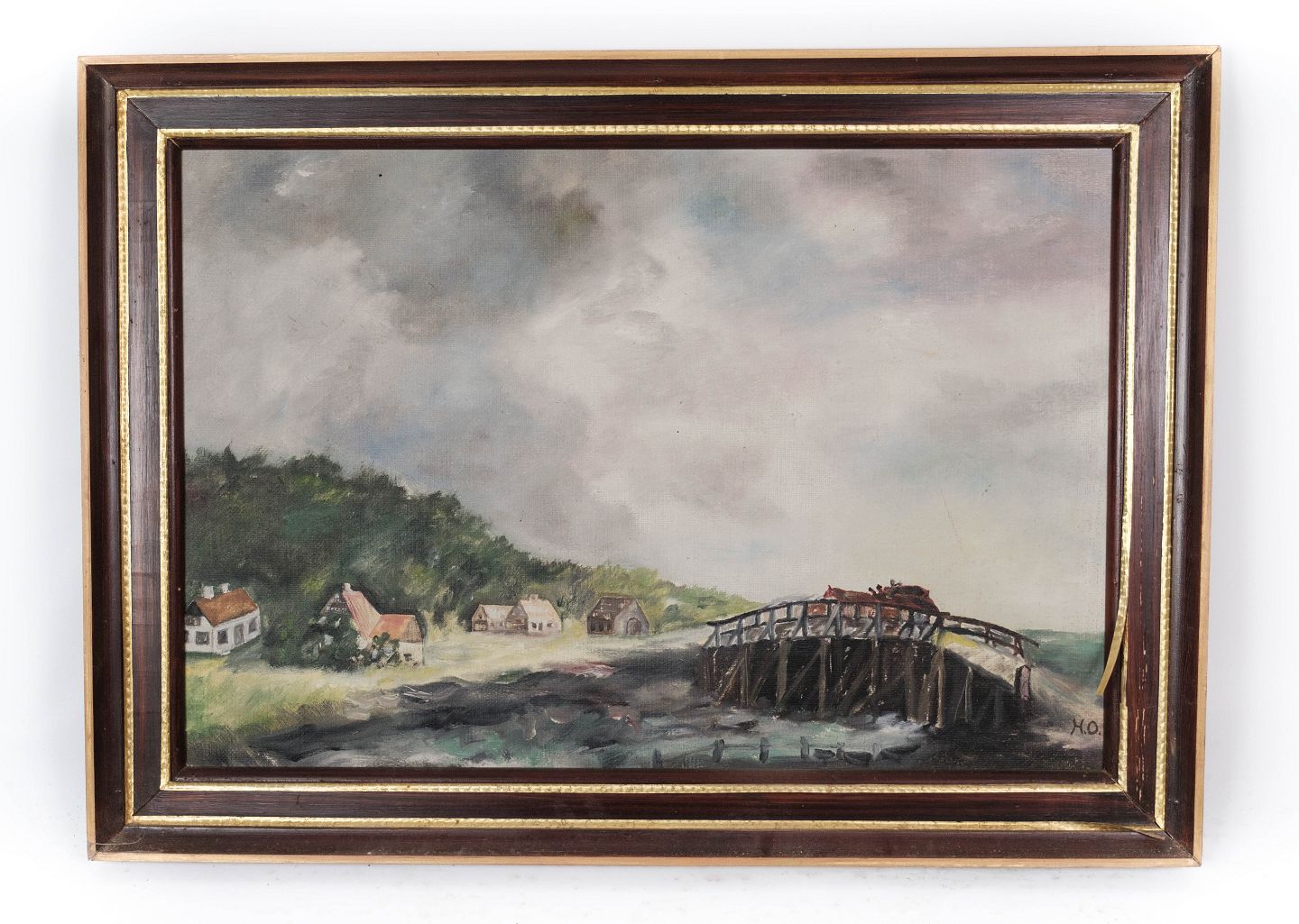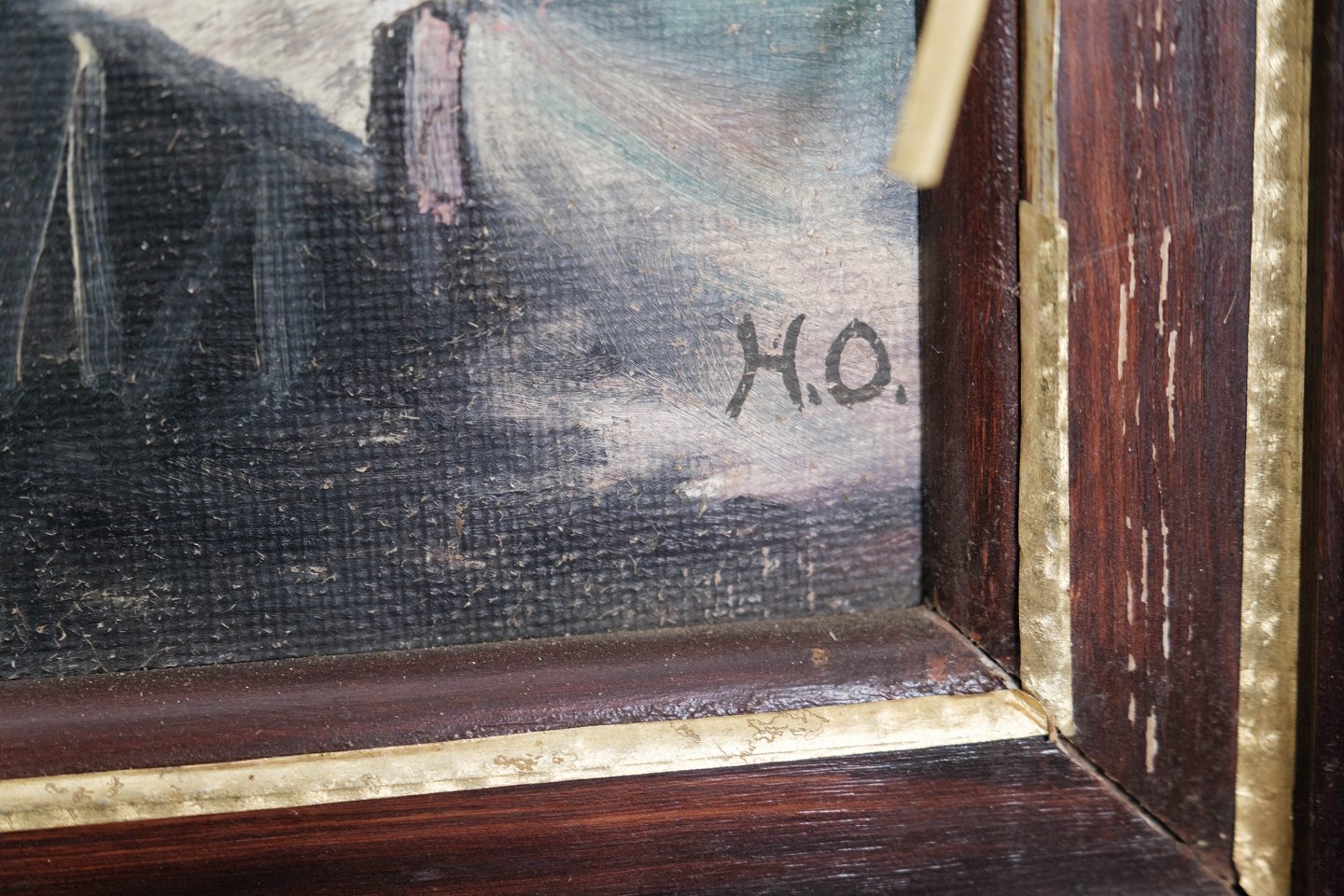 Painting on canvas with nature motif and wooden frame, signed H.O.