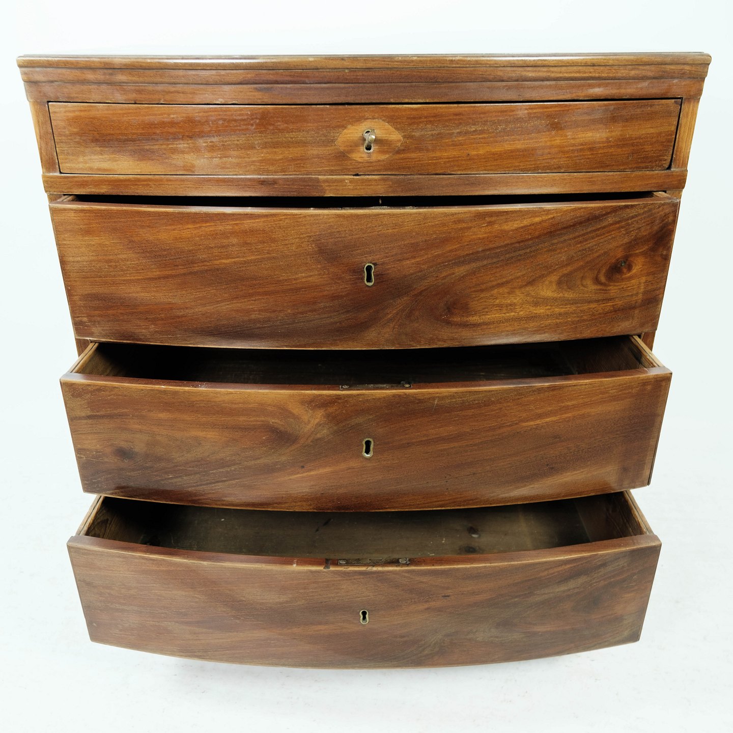 SoldEmpire chest of drawers of polished mahogany with four drawers, from around 1820. The chest is in great antique condition.
