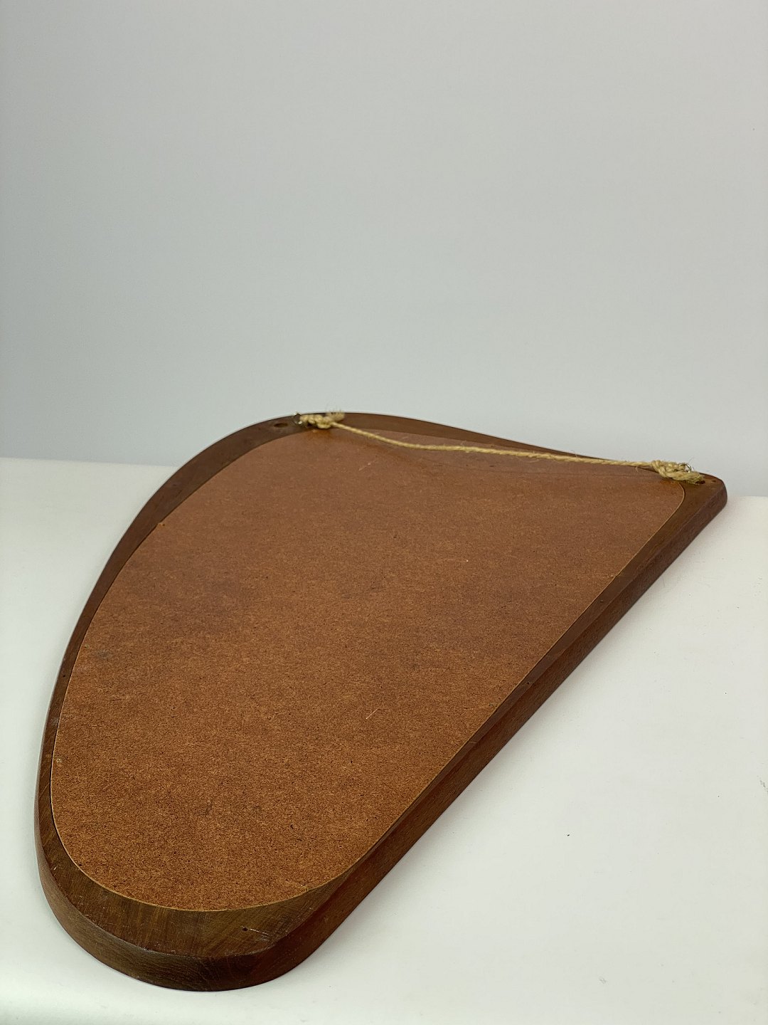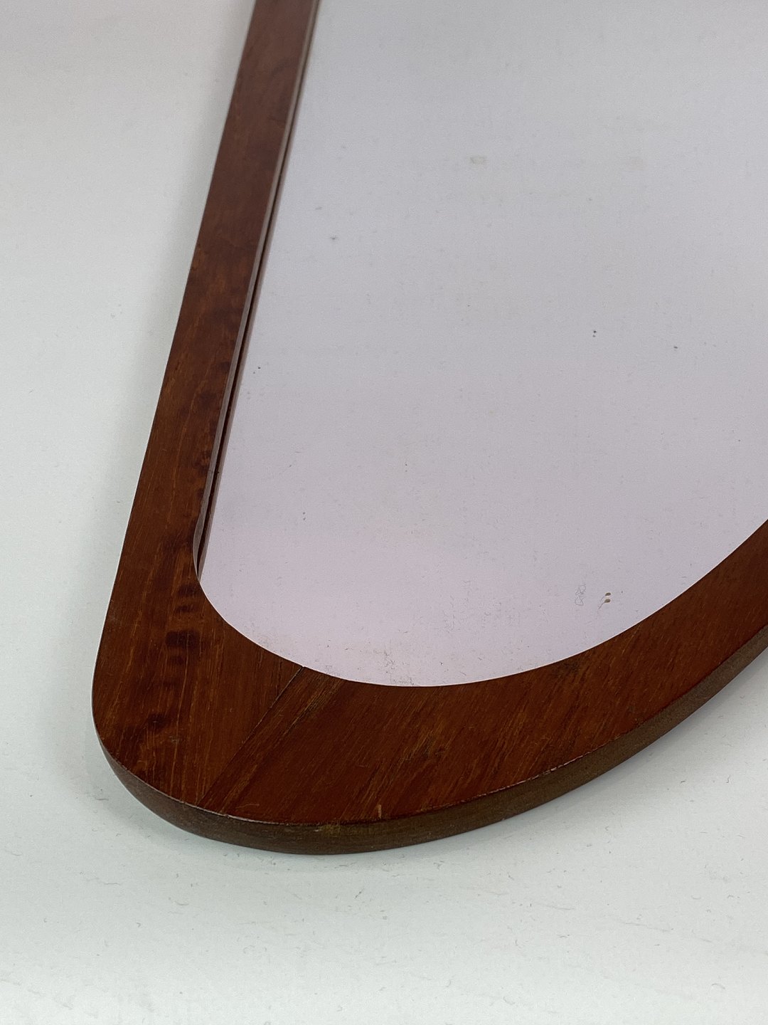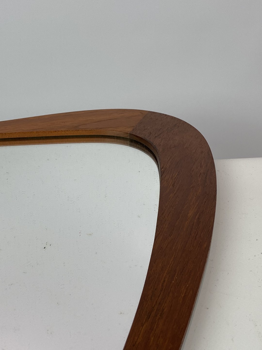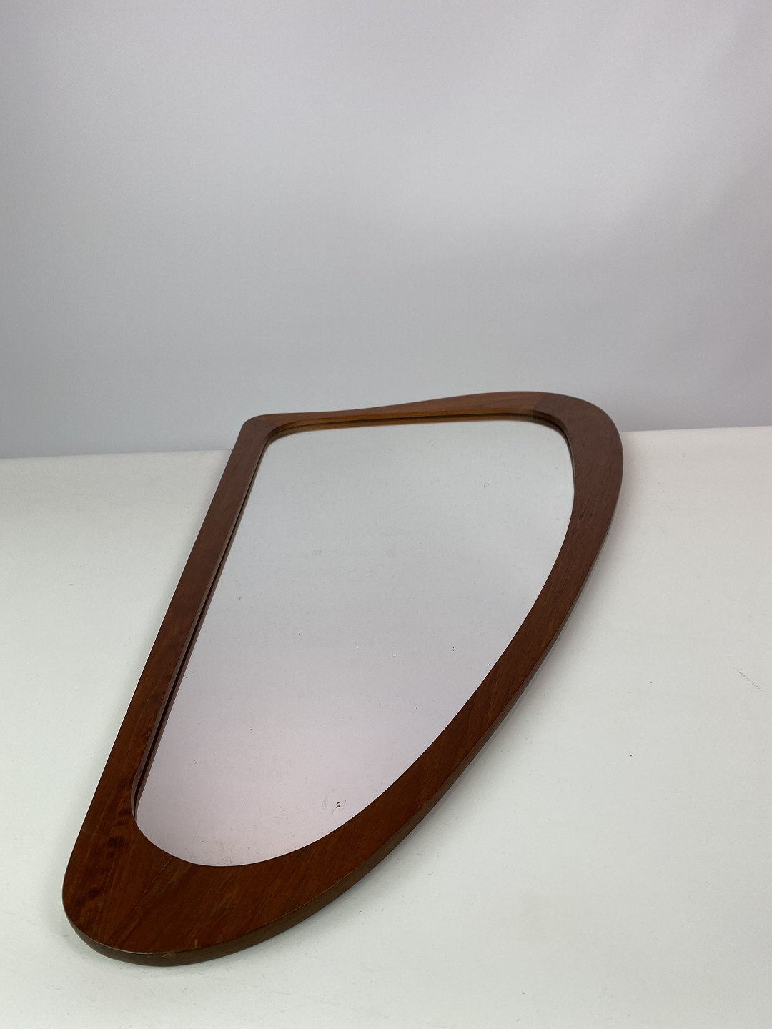 Spejl i teak af dansk design fra 1960erne. Spejlet er af asymmetrisk facon og i flot brugt stand.