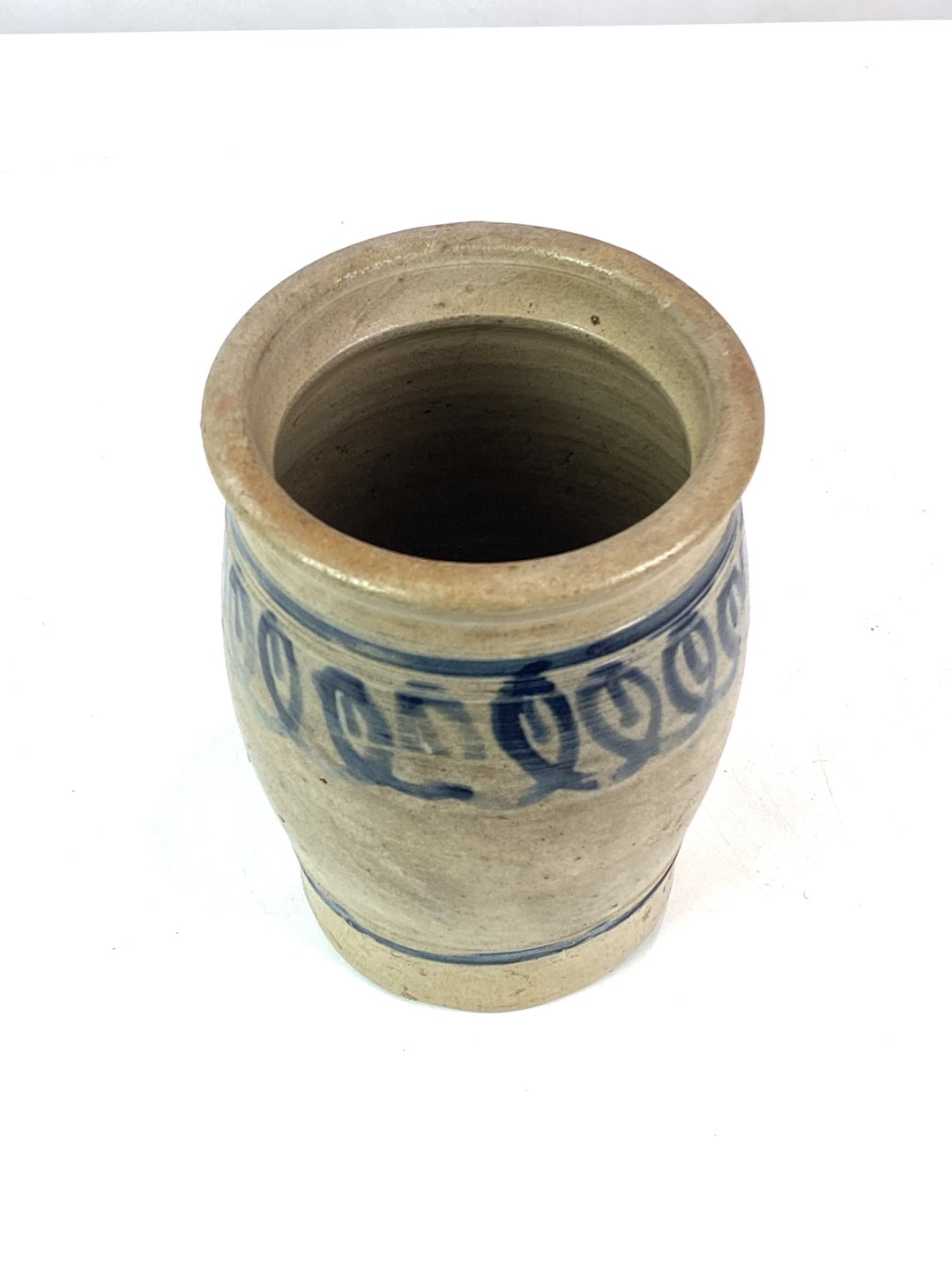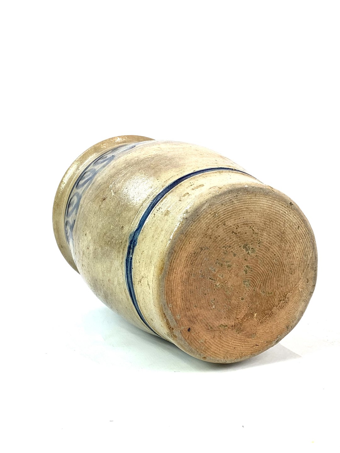 Grå keramik vase eller krukke med blåt mønstre fra 1930erne. Vasen er i flot brugt stand.