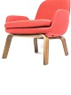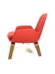 Lænestol med ben af valnød og polstret med rødt stof af dansk design for Normann Copenhagen.