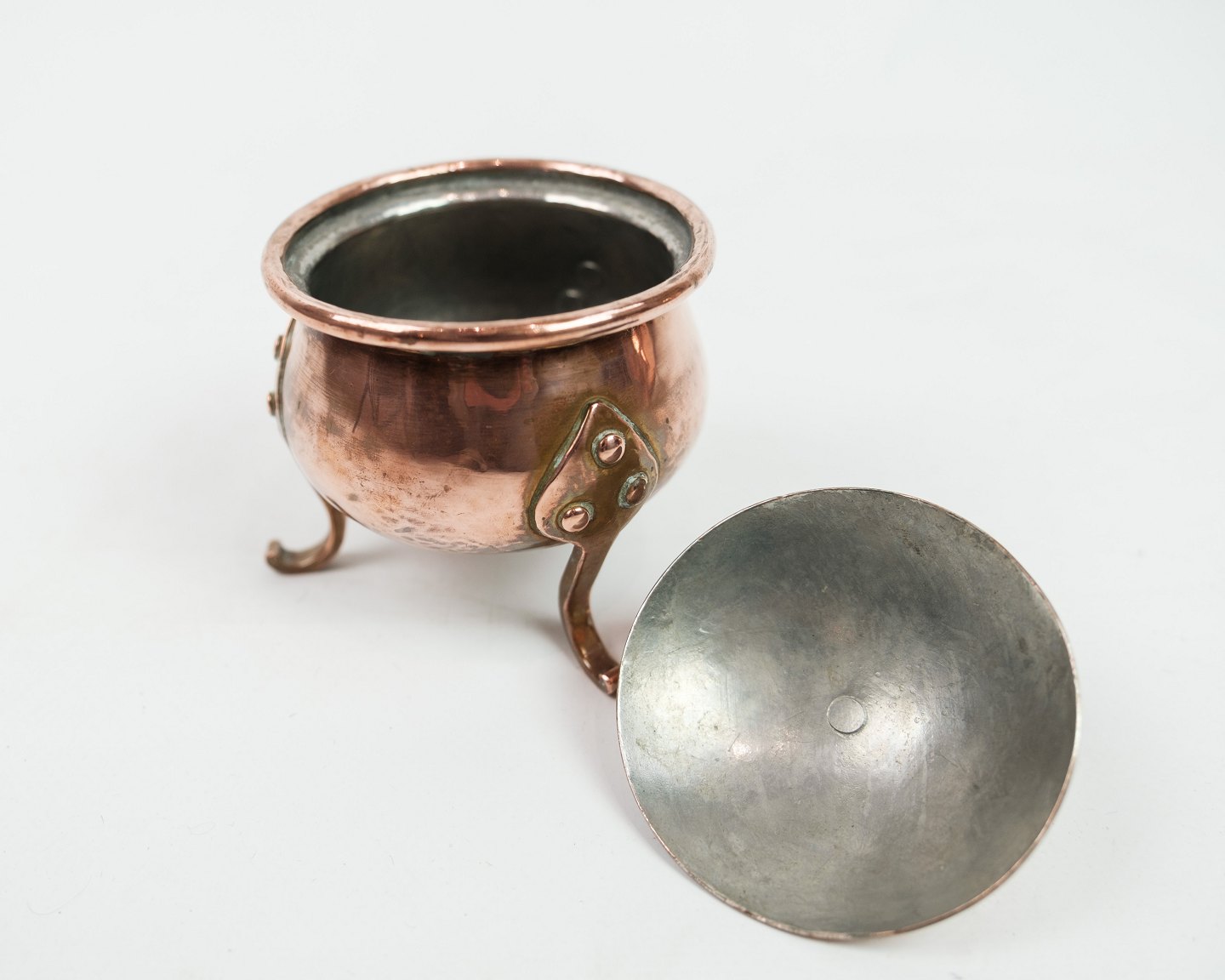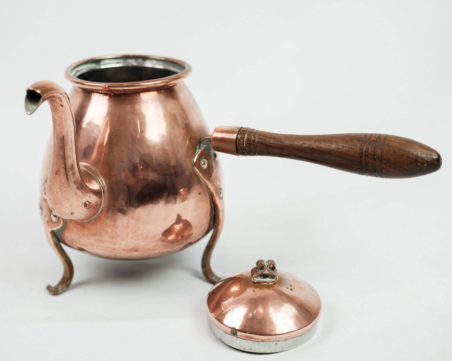 Set of 3 copper parts coffee pot sugar bowl and cream jug from around 1960s respectively. All parts in very fine used condition.