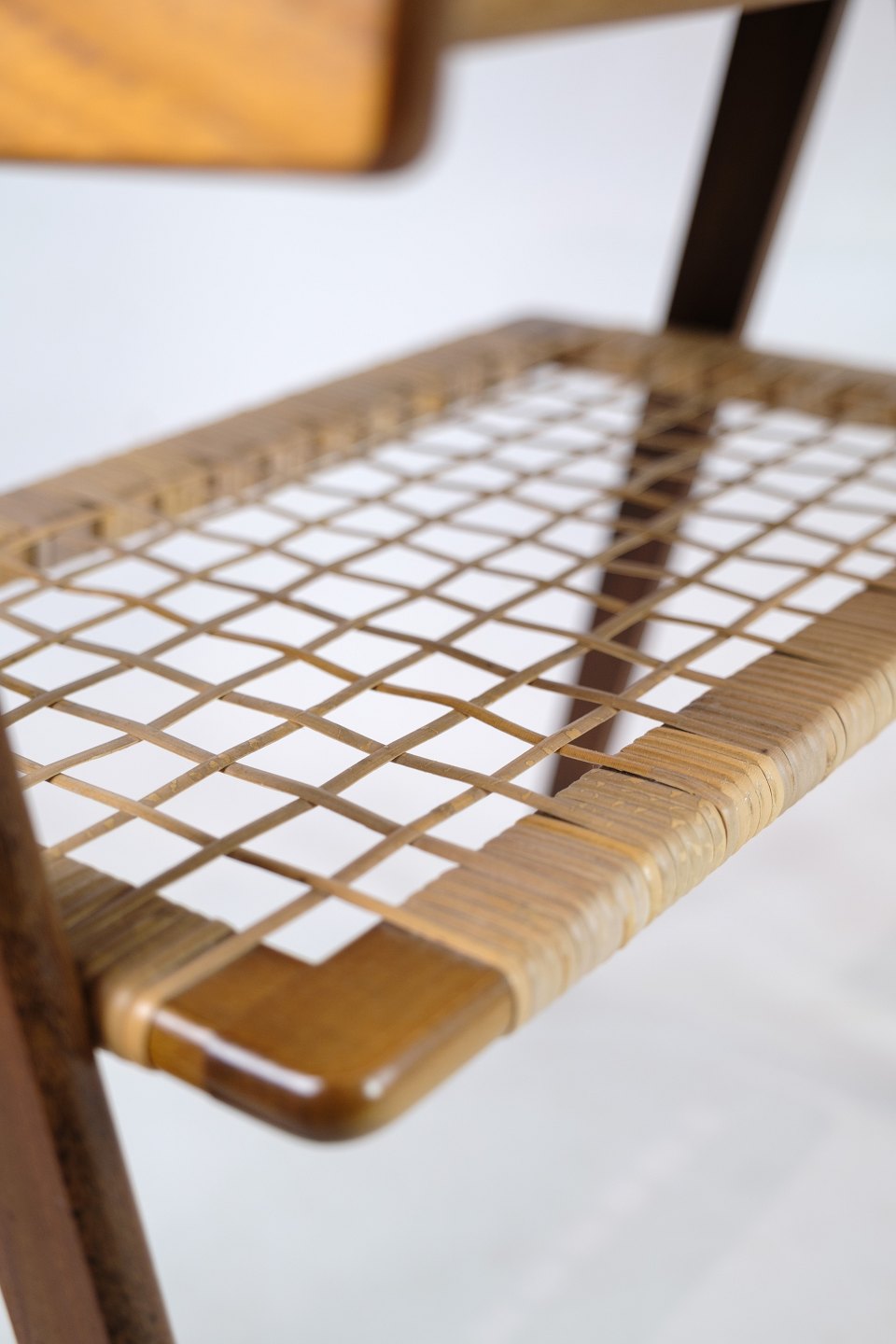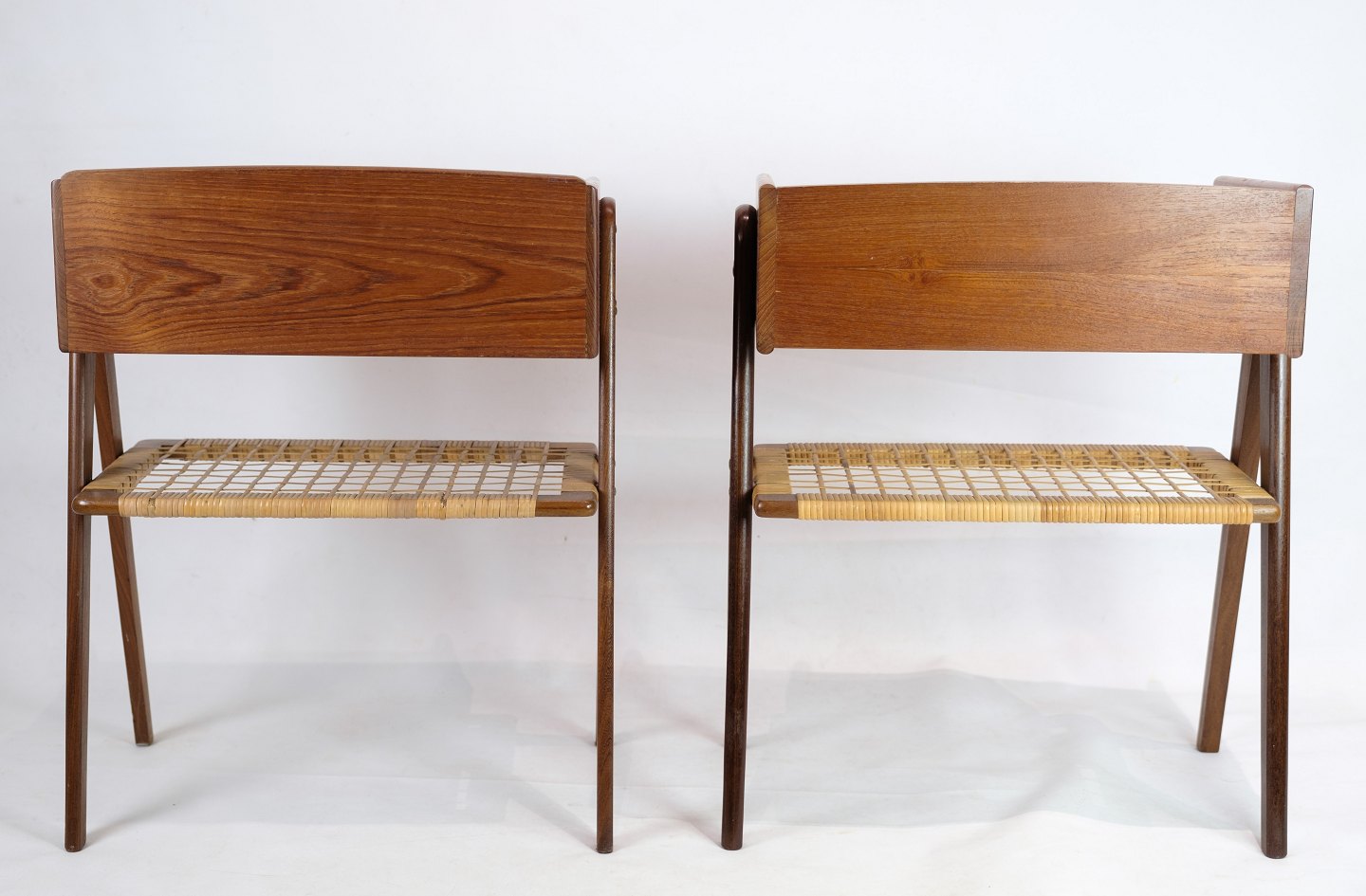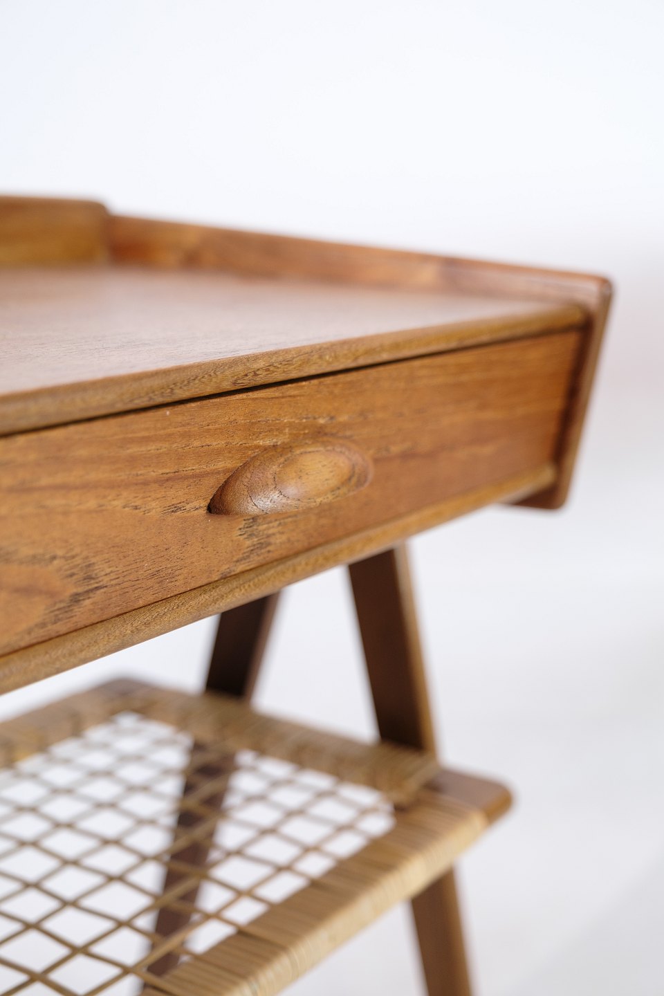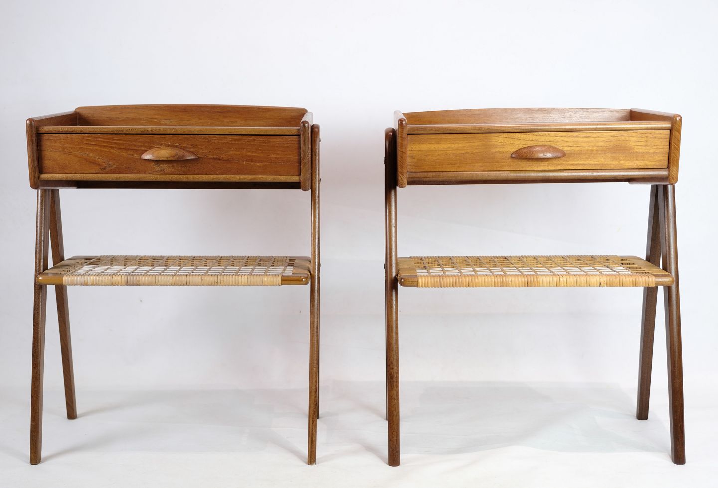 A pair of bedside tables / bedside tables, designed by Søren Rasmussen in teak wood with drawer and wicker lid from around the 1960s.