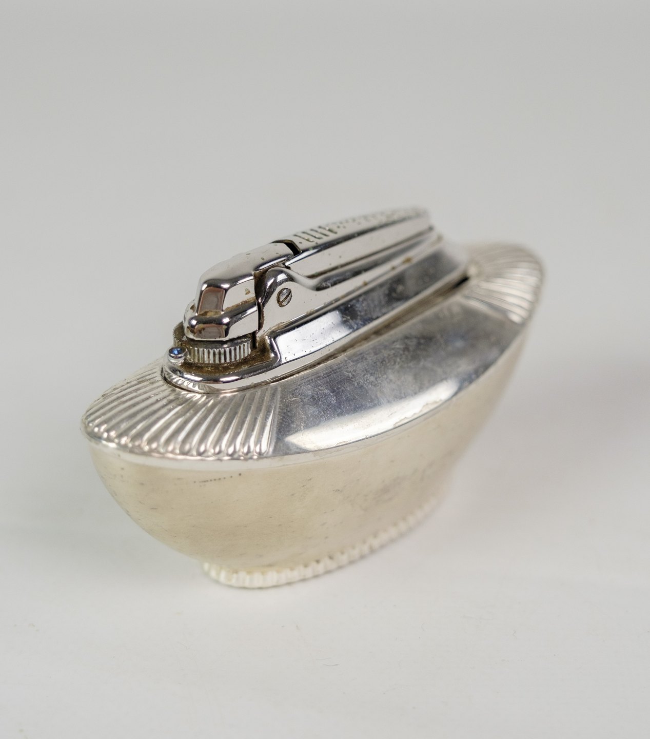 Table lighter, model Ronson made in metal originally from England engraved "Patented". With Reg trade mark.
