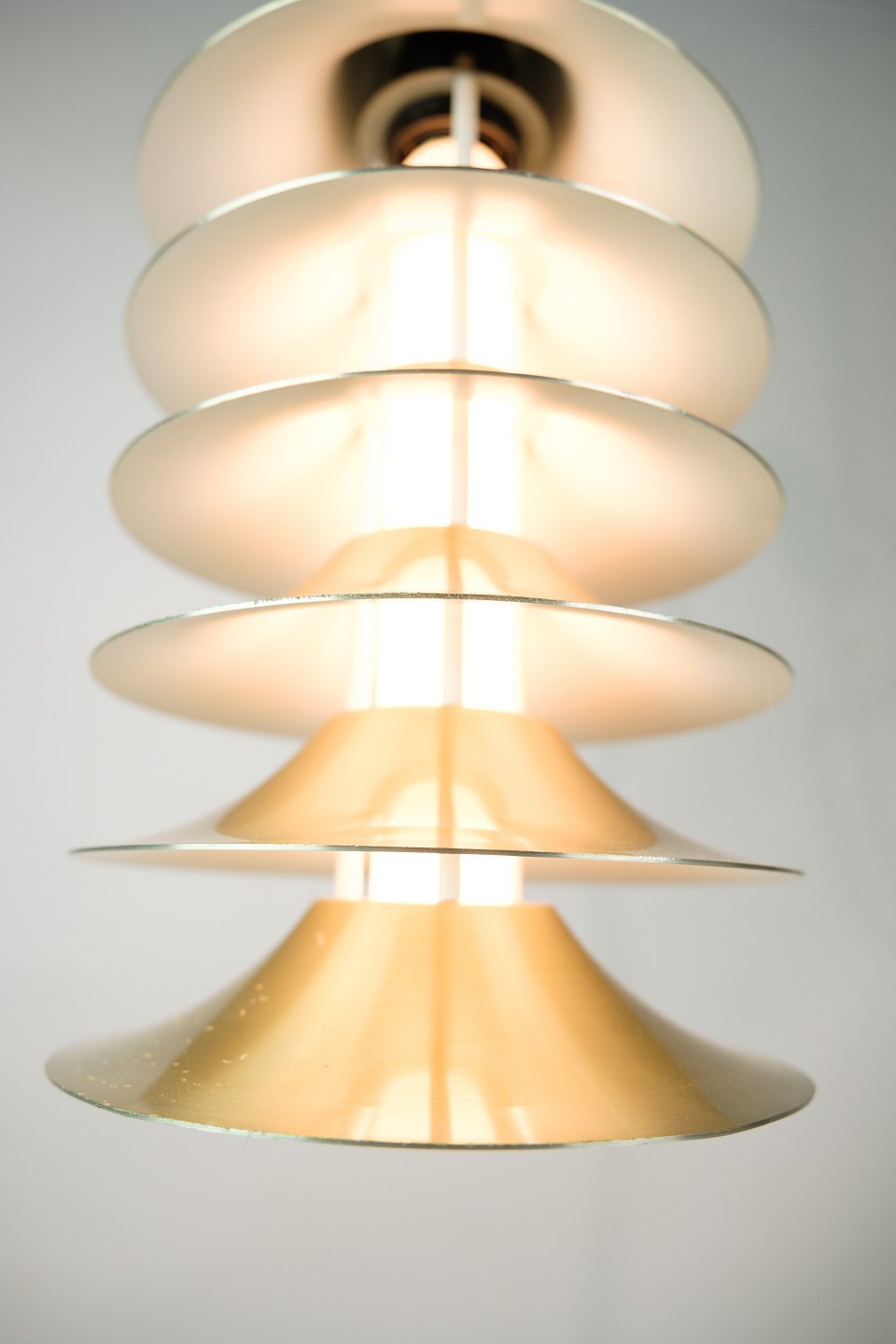Vintage pendel i Aluminium med opbyggede med flere lag af dansk design fra omkring 1970'erne.