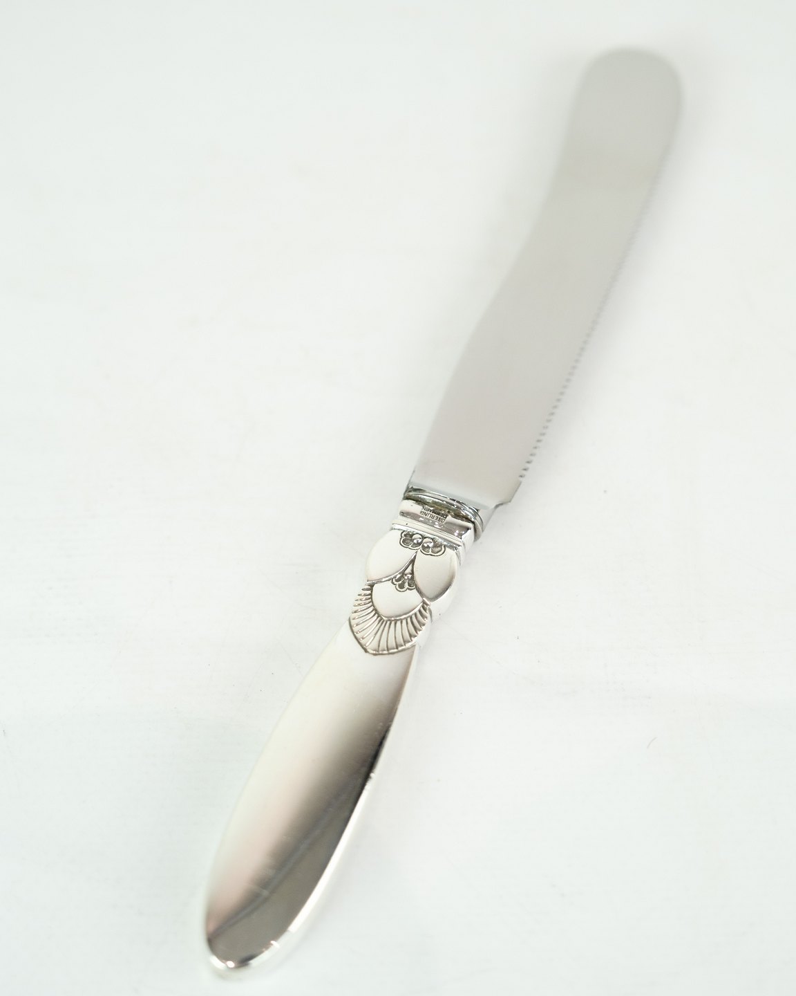 SoldBread knife with cactus blade by George Jensen in sterling silver.