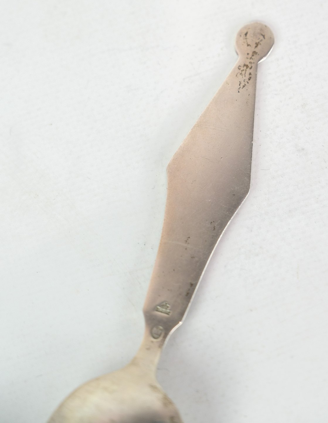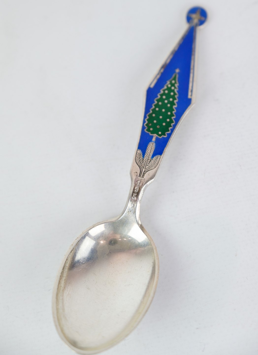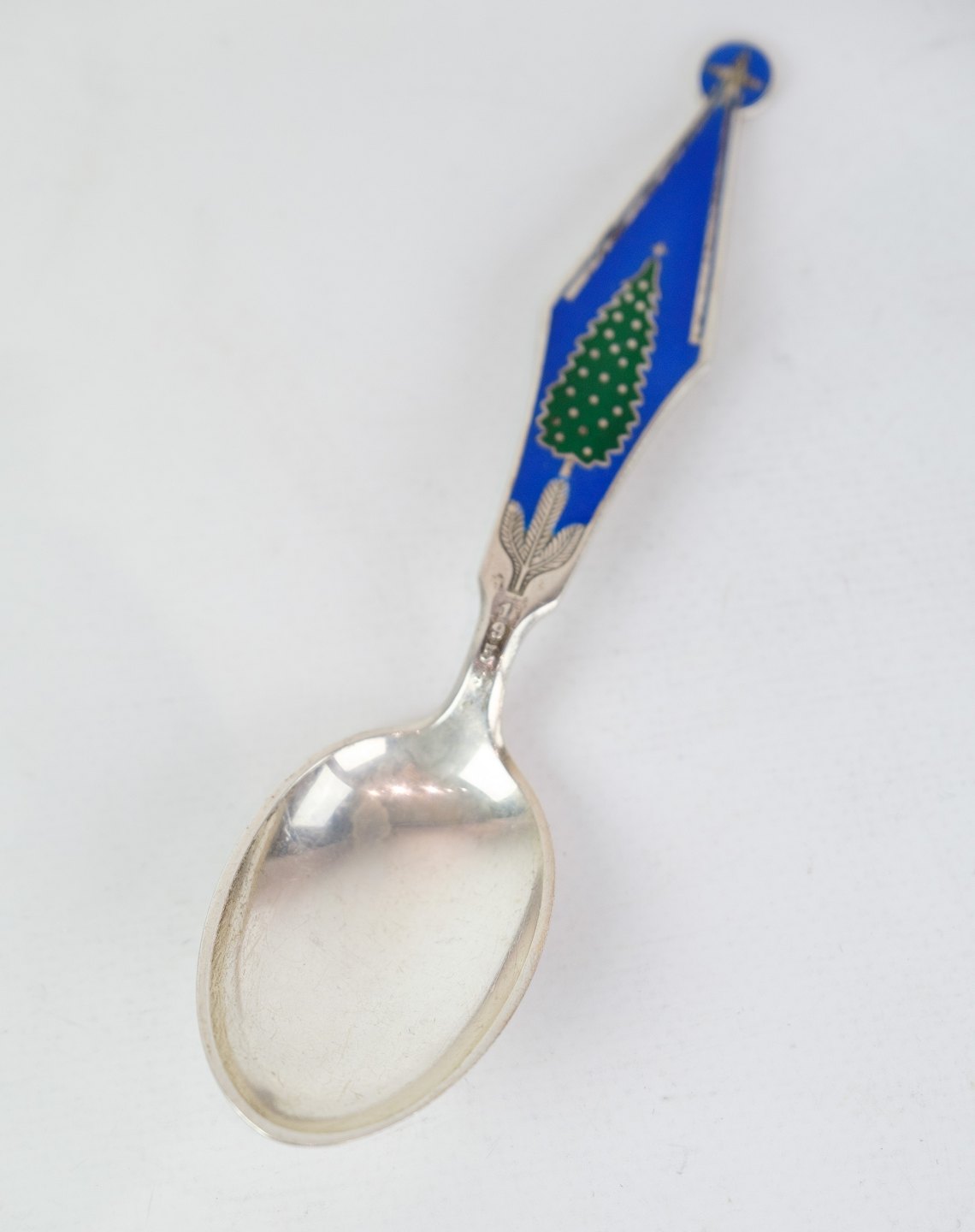 Older Christmas spoon with nice decoration with a three-towered silver Christmas tree in fine used condition.