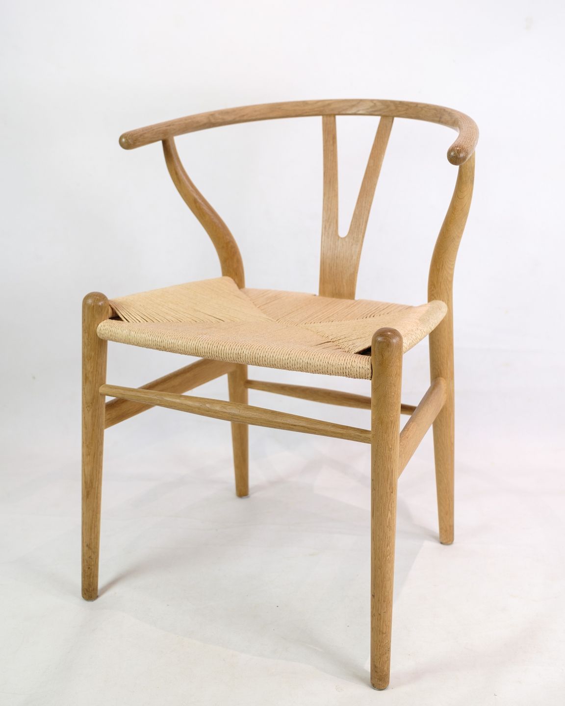 SolgtSæt af fire y-stole model ch24, lavet i egetræ. Designet af Hans J. Wegner og fremstillet af Carl Hansen & Søn. Stolene er fra 1990erne