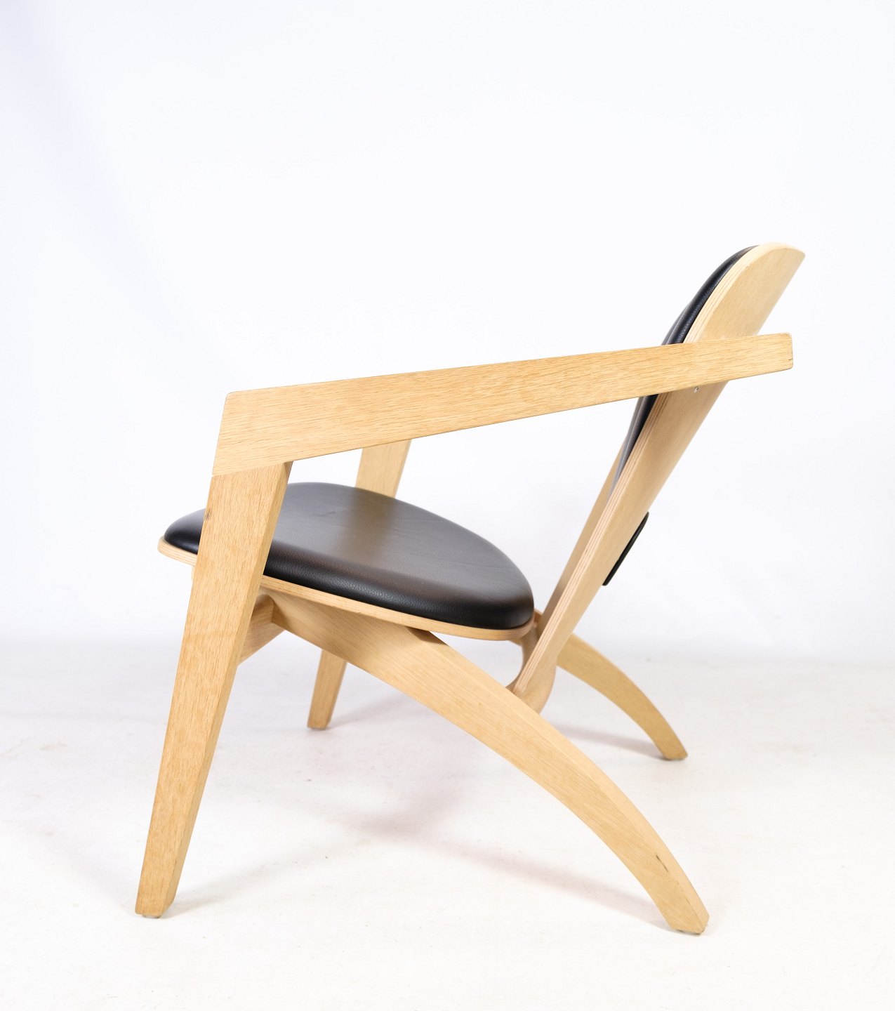 SoldOne of Wegner's designs is the GE 460 armchair, which was created in 1977. The chair is made of soap treated oak wood and has a seat and backrest upholstered in black leather, which gives it an exclusive and elegant feel. The chair is produced and branded by Getama, a recognized Danish furniture production company.