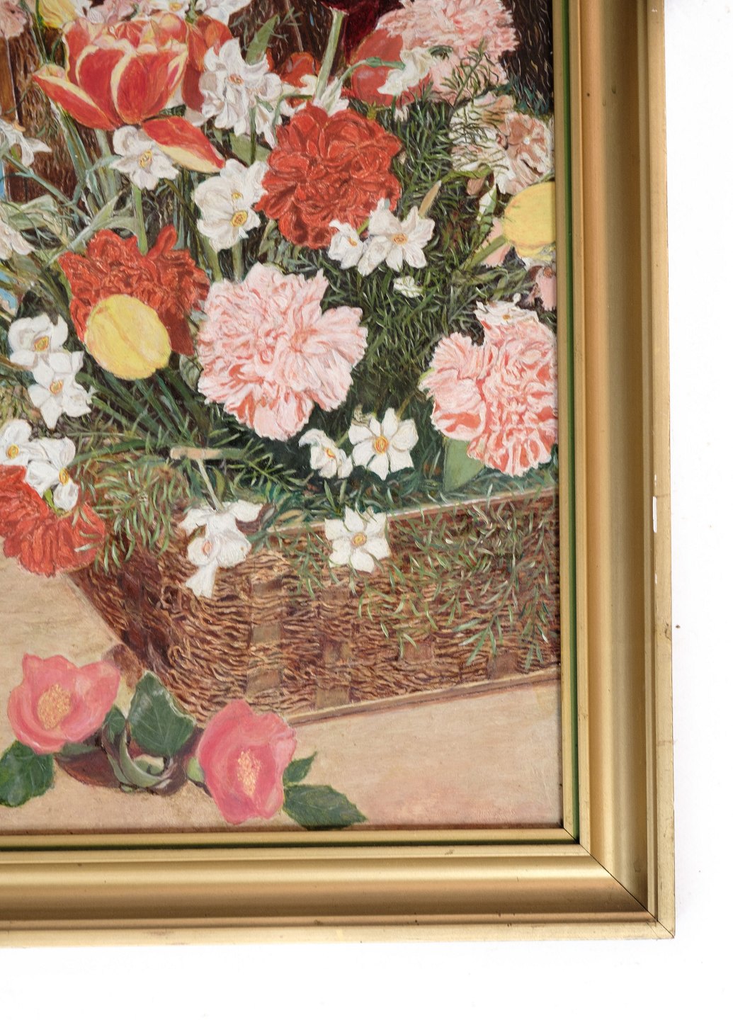 SolgtMaleri på lærredet i guldramme af blomster motiv fra omkring 1950'erne
