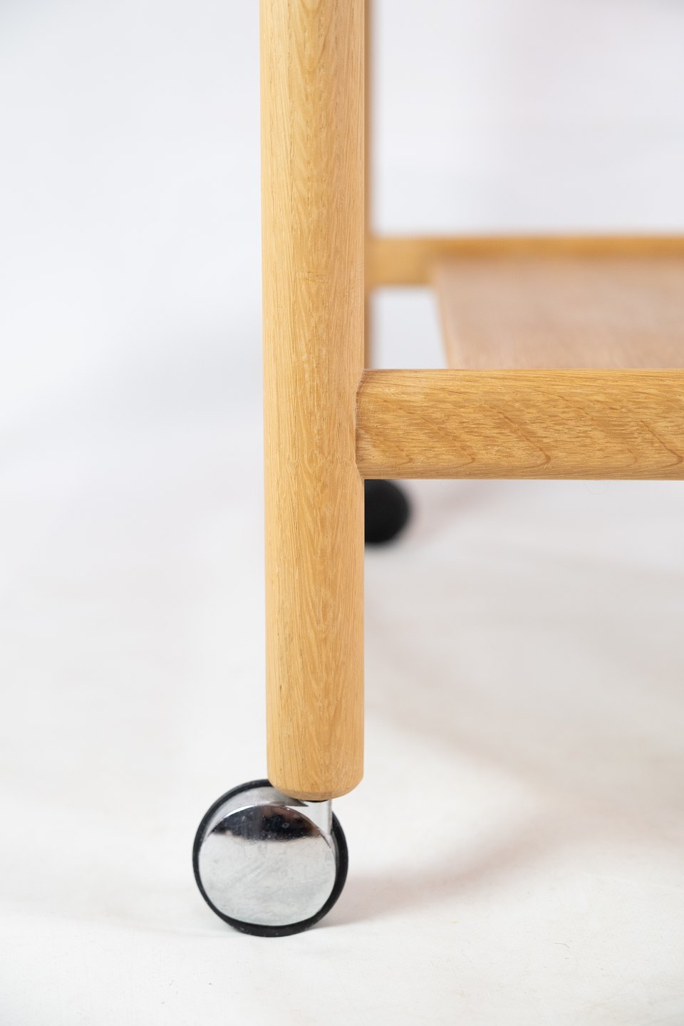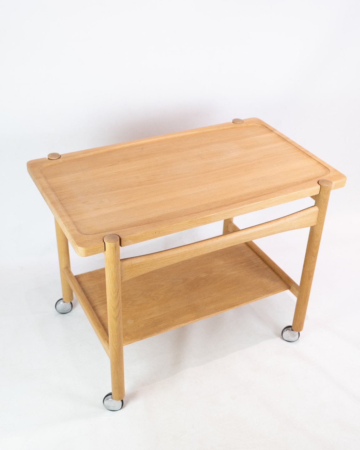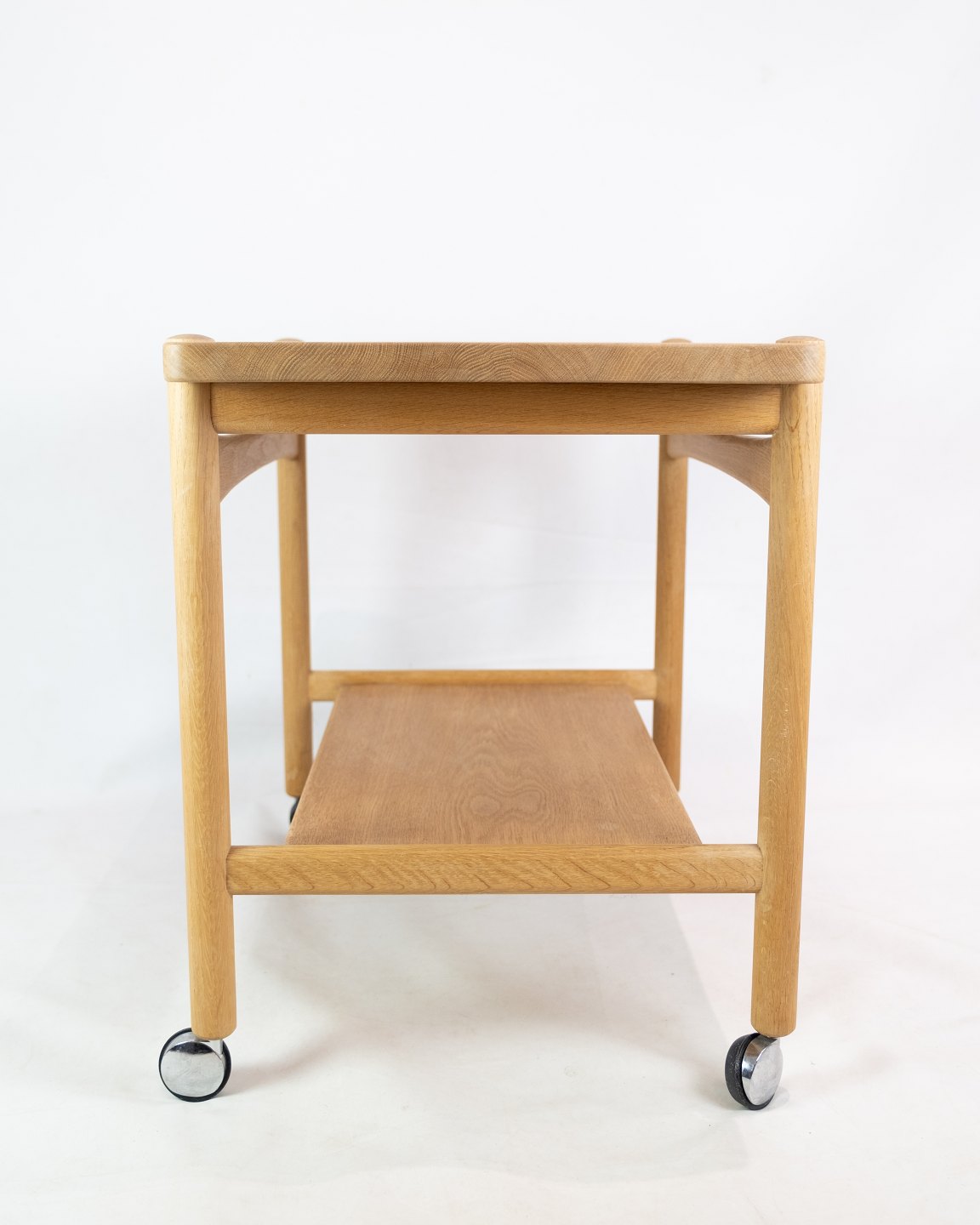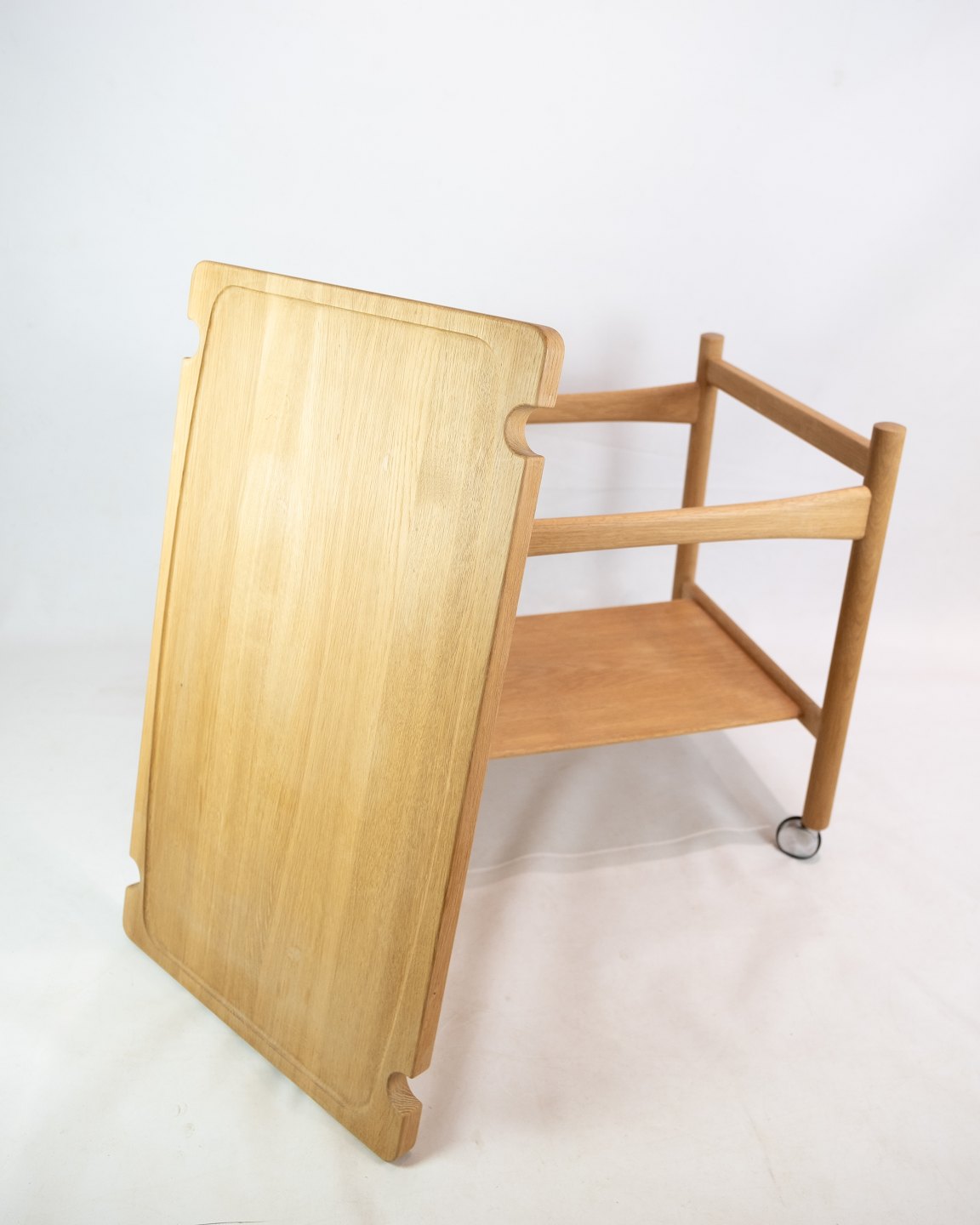 Hans J. Wegners design tilfører en tidløs elegance og funktionalitet til serveringsvognen, hvilket gør den til en eftertragtet og værdsat møbelgenstand. Med sin massivt egetræskonstruktion er "AT 48" serveringsvognen et smukt eksempel på dansk designarv, der vil tilføje en elegant touch til ethvert hjem eller interiør.