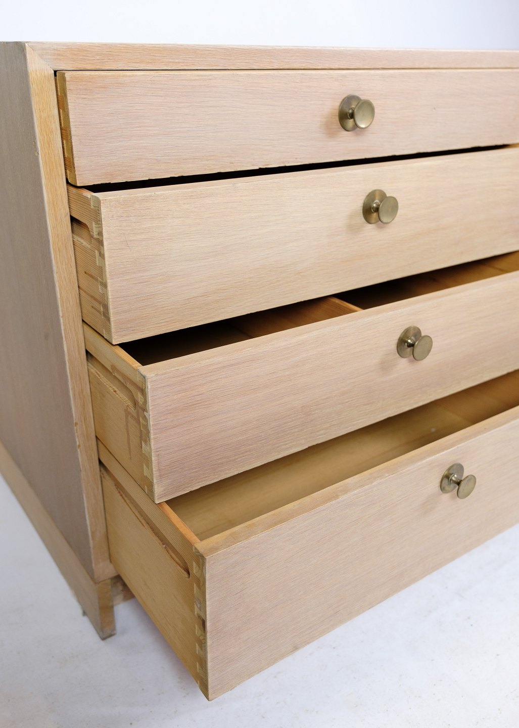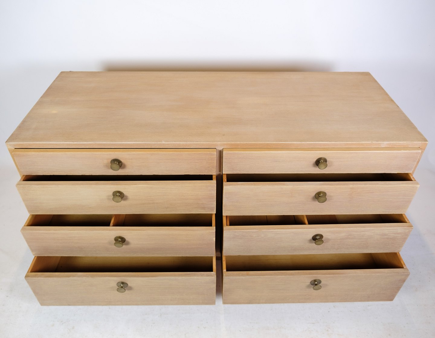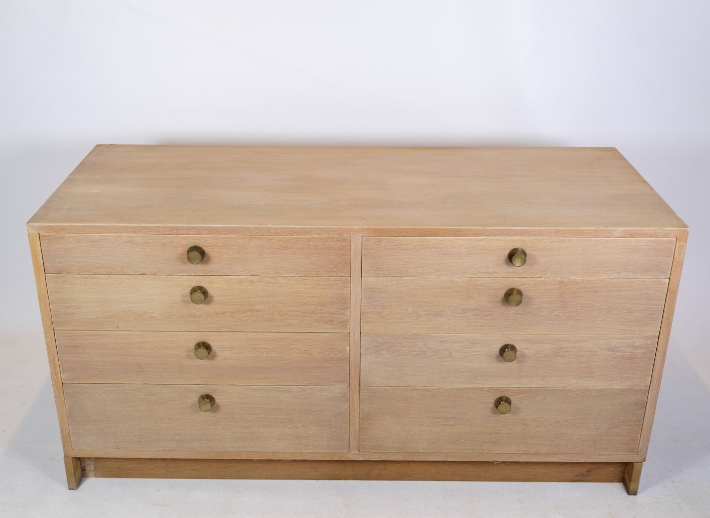 SolgtSkænk / Kommode, designet af Børge Mogensen af egetræ med 8 skuffer og messing greb fra omkring 1960'erne.