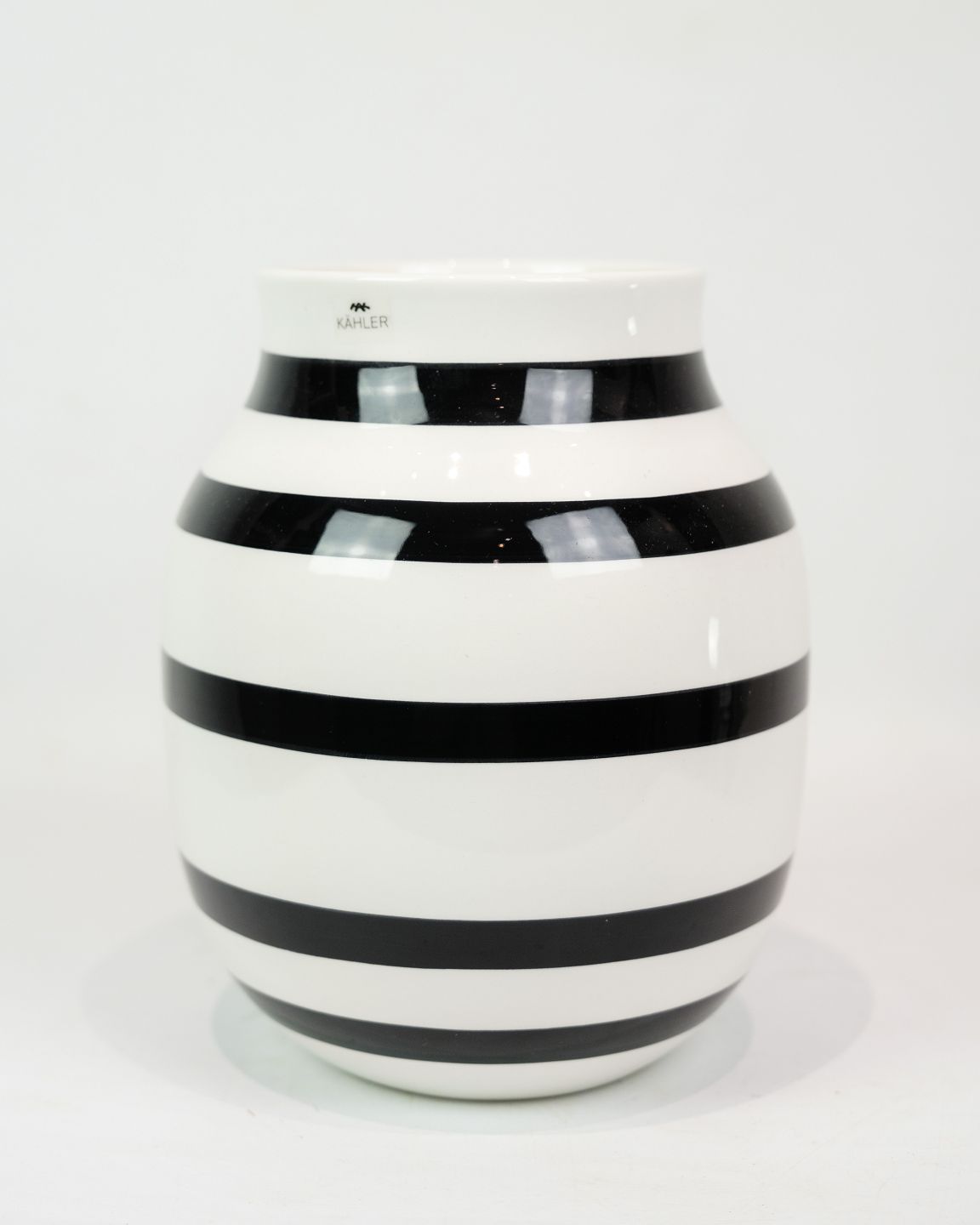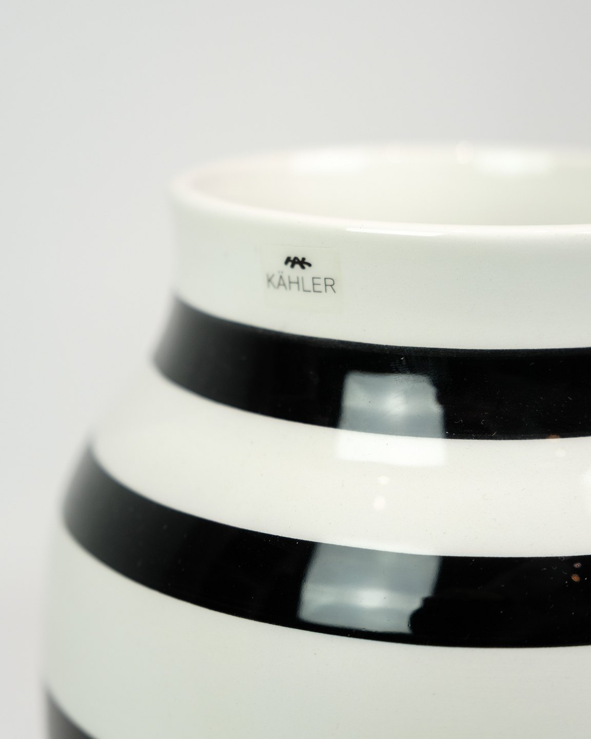 Kähler er en uundværlig favorit i utallige hjem takket være sit klassiske udseende og moderne design. Denne smukke vase, der er en del af en serie, passer perfekt til det skandinaviske hjem med sit enkle, men alligevel iøjnefaldende udtryk. Hver Kähler-vase i serien er håndmalet, hvilket betyder, at ingen to er helt ens. Den unikke charme og personlighed, der følger med variationerne i farve og bredde på striberne, gør hver vase til et kunstværk i sig selv. Tilføj et strejf af elegance og individualitet til dit hjem med en Kähler-vase, der vil pryde ethvert rum med sin skønhed og unikke karakter.