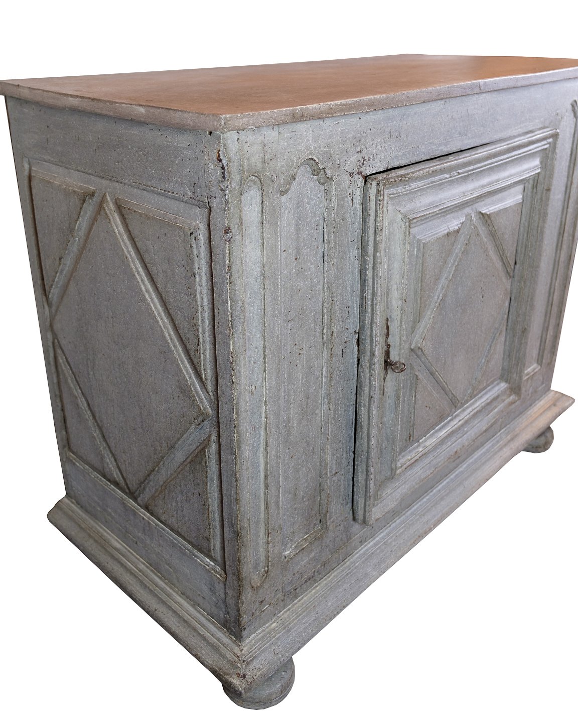 Originalt malet madskab fra 1720'erne med spansk oprindelse, gråfarvet. Madskabe blev brugt til at opbevare madvarer og beskytte dem mod skadedyr i en tid, hvor moderne køleskabe ikke fandtes. Disse skabe blev ofte placeret i køkkenet eller spisestuen og havde ventilationsåbninger eller trådnet, der sikrede frisk luft omkring madvarerne.