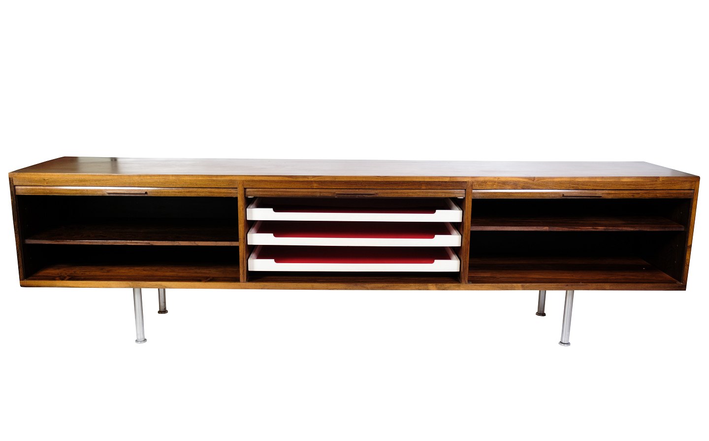 SoldThis sideboard in rosewood represents the timeless elegance and functionality that characterizes Danish design from the 1960s. The sideboard offers both style and practical storage space.