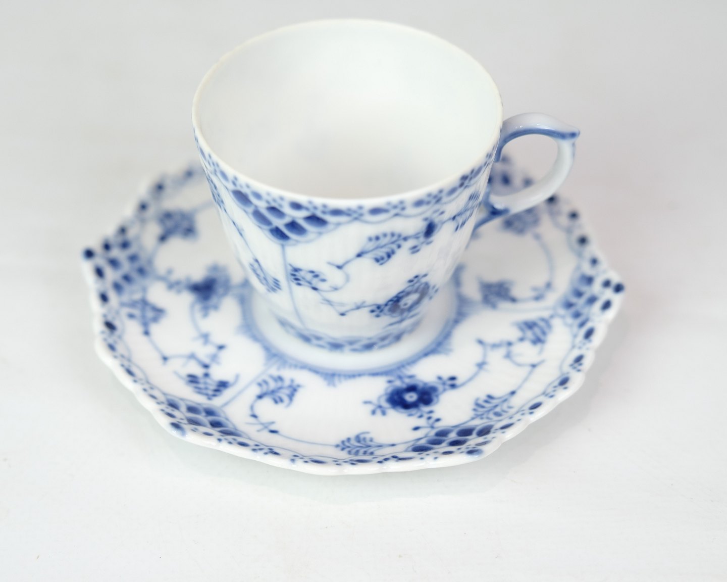 Kop med tilhørende underkop idealt til en espresso eller, som lille te / kaffe kop med mønstret musselmalet eller helblonde. Sættet har nr. 1/1038 og står i flot stand uden skår. For info omkring 1. eller 2. sortering kontakt os.