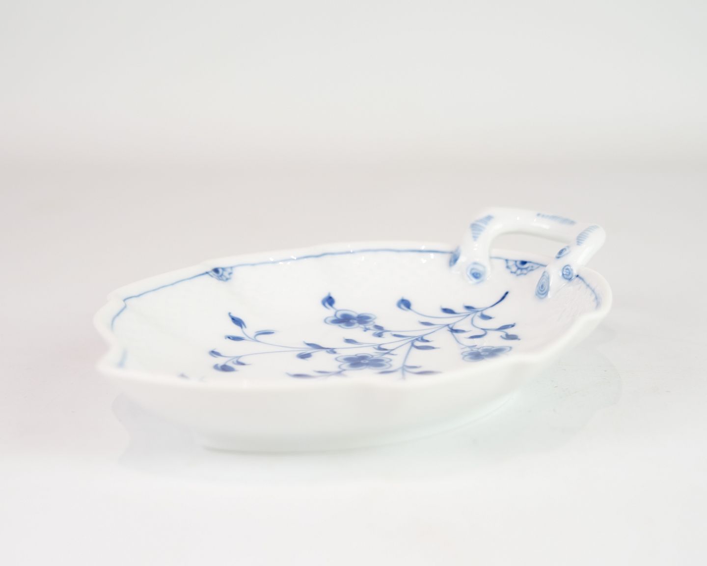 Leaf dish no. 198 from Bing & Grondahl. Made of porcelain and decorated with a hand-painted butterfly motif. The shape is inspired by a leaf, which gives the dish a characteristic expression. With stamp under the bottom.