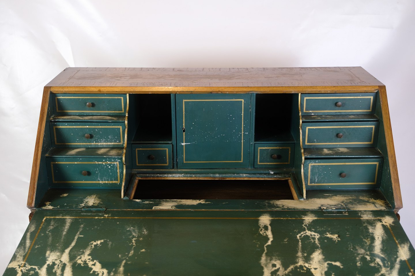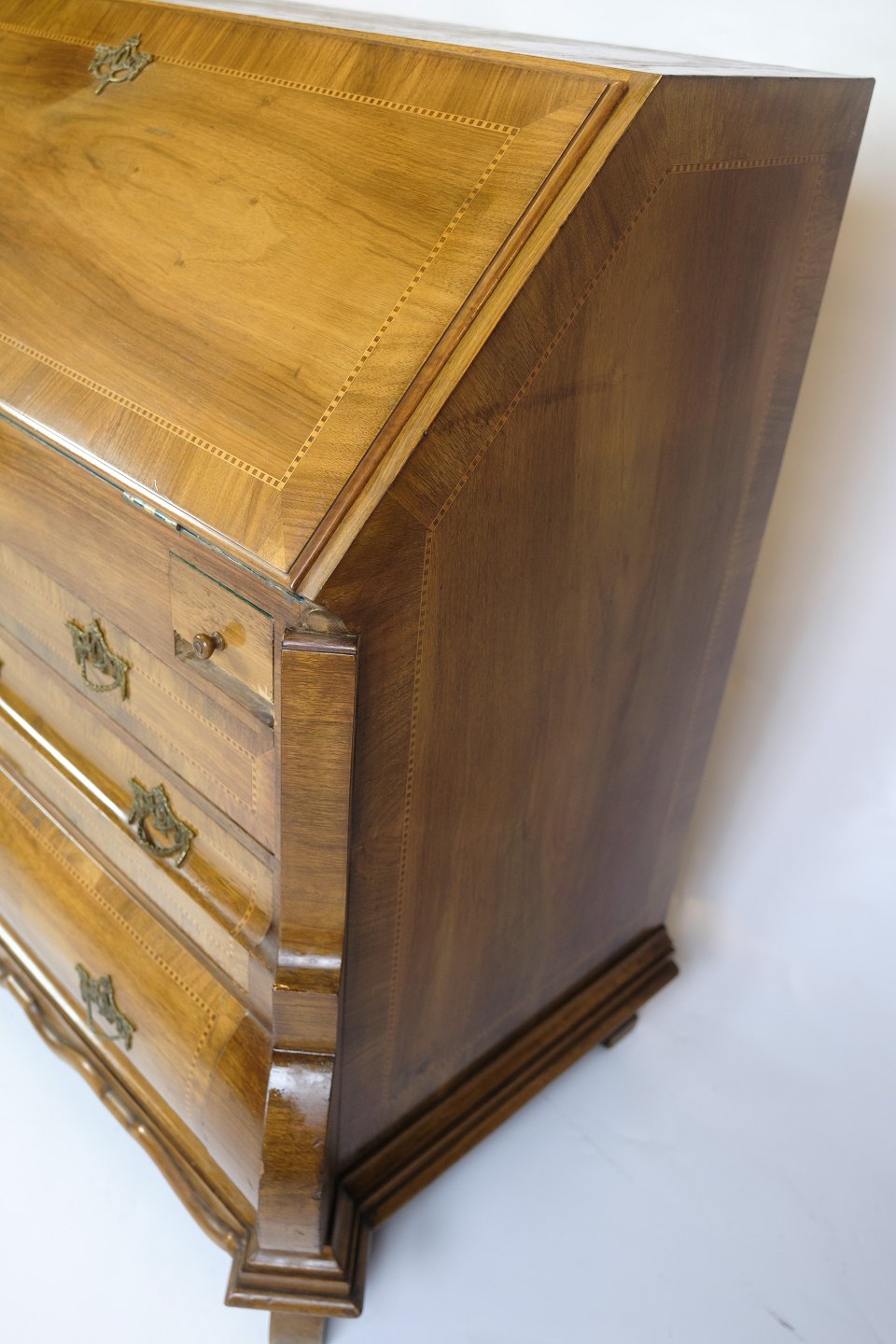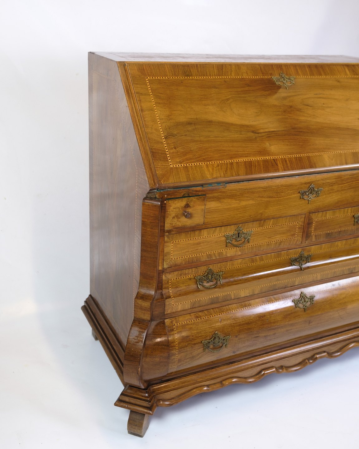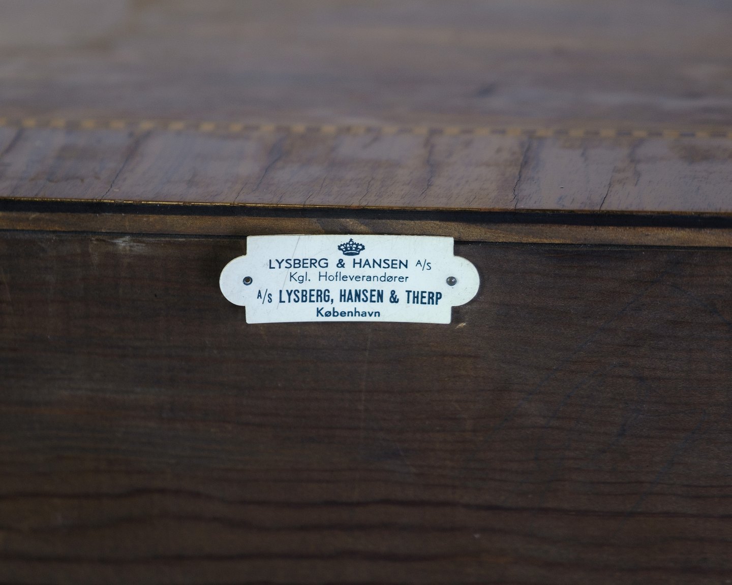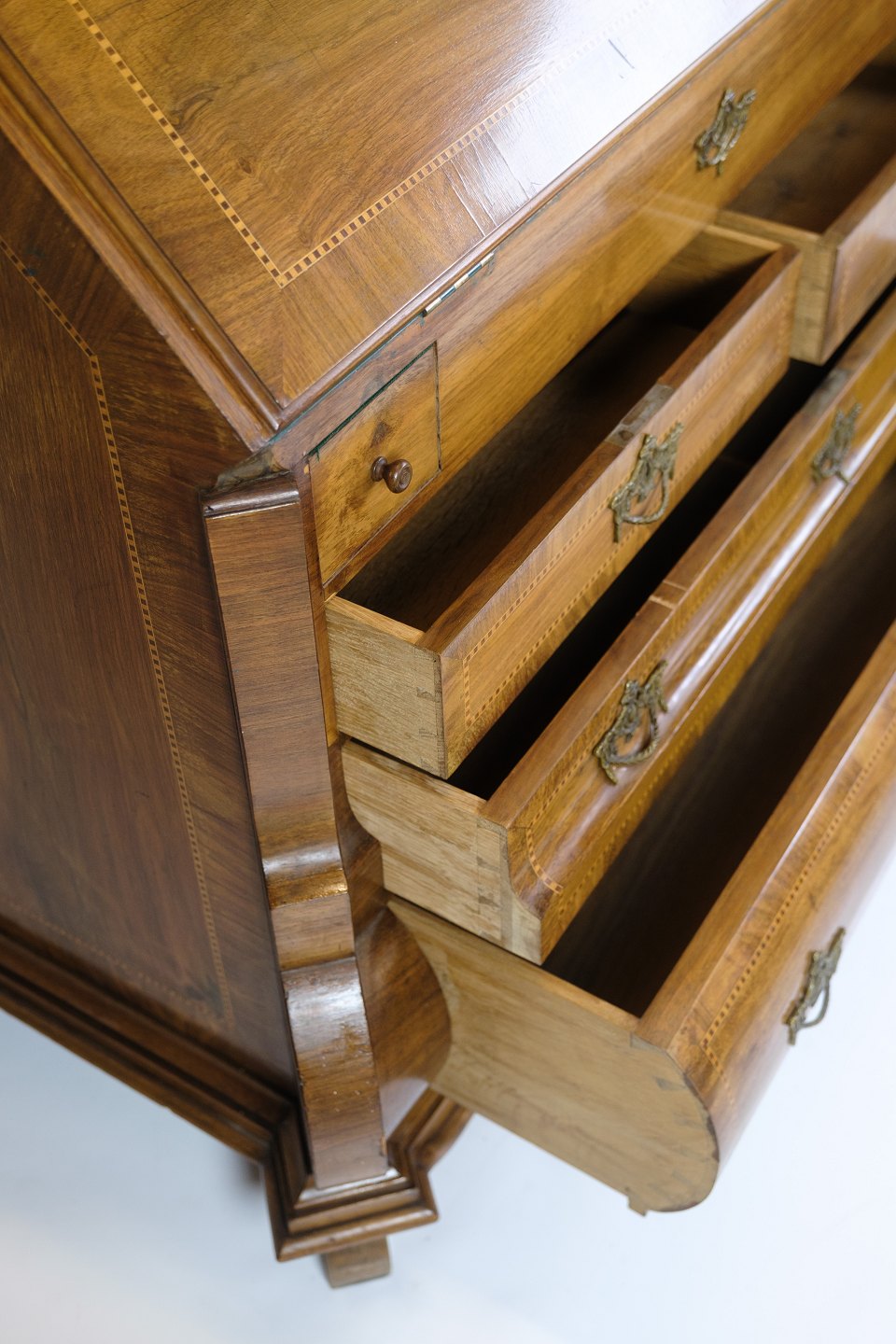 Chatol med fire skuffer, intersia og med indvendige bemaling. Chatollet er lavet i lys nøddetræ og fremstillet af møbelfabrikken Lysberg & Hansen, fra omkring år 1890erne.