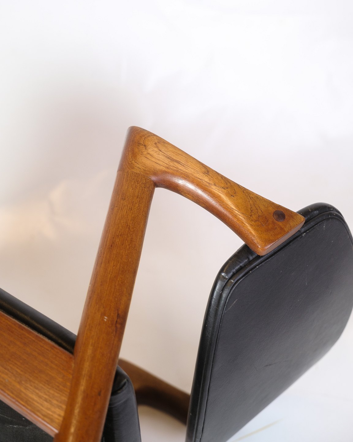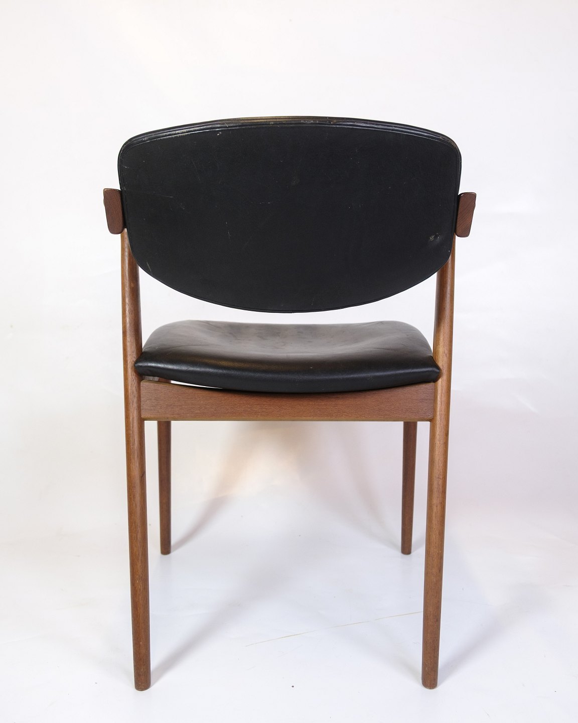 Dining chair - Model 42 - Teak & Black Leather - Kai Kristiansen - Schou Andersen - 1960s