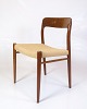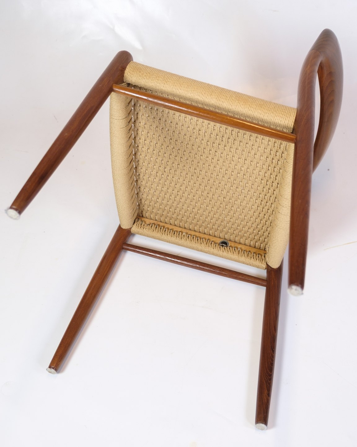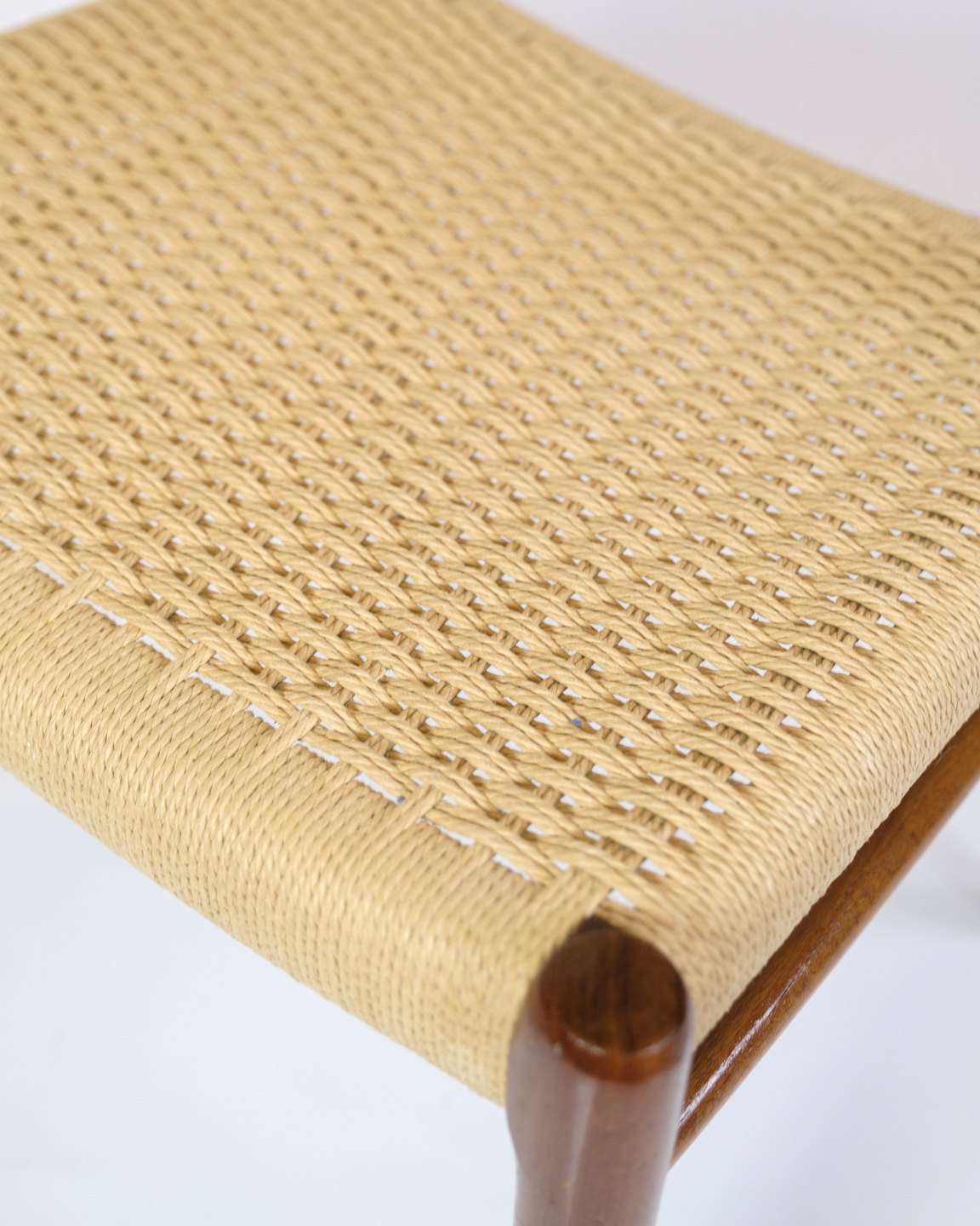 SolgtSæt af otte spisestuestole, model 75, designet af Niels Otto Møller og fremstillet i 1960’erne. Stolene er udført i teak med håndflettede sæder i papirflet – en klassisk kombination, der forener komfort med lethed i udtrykket.