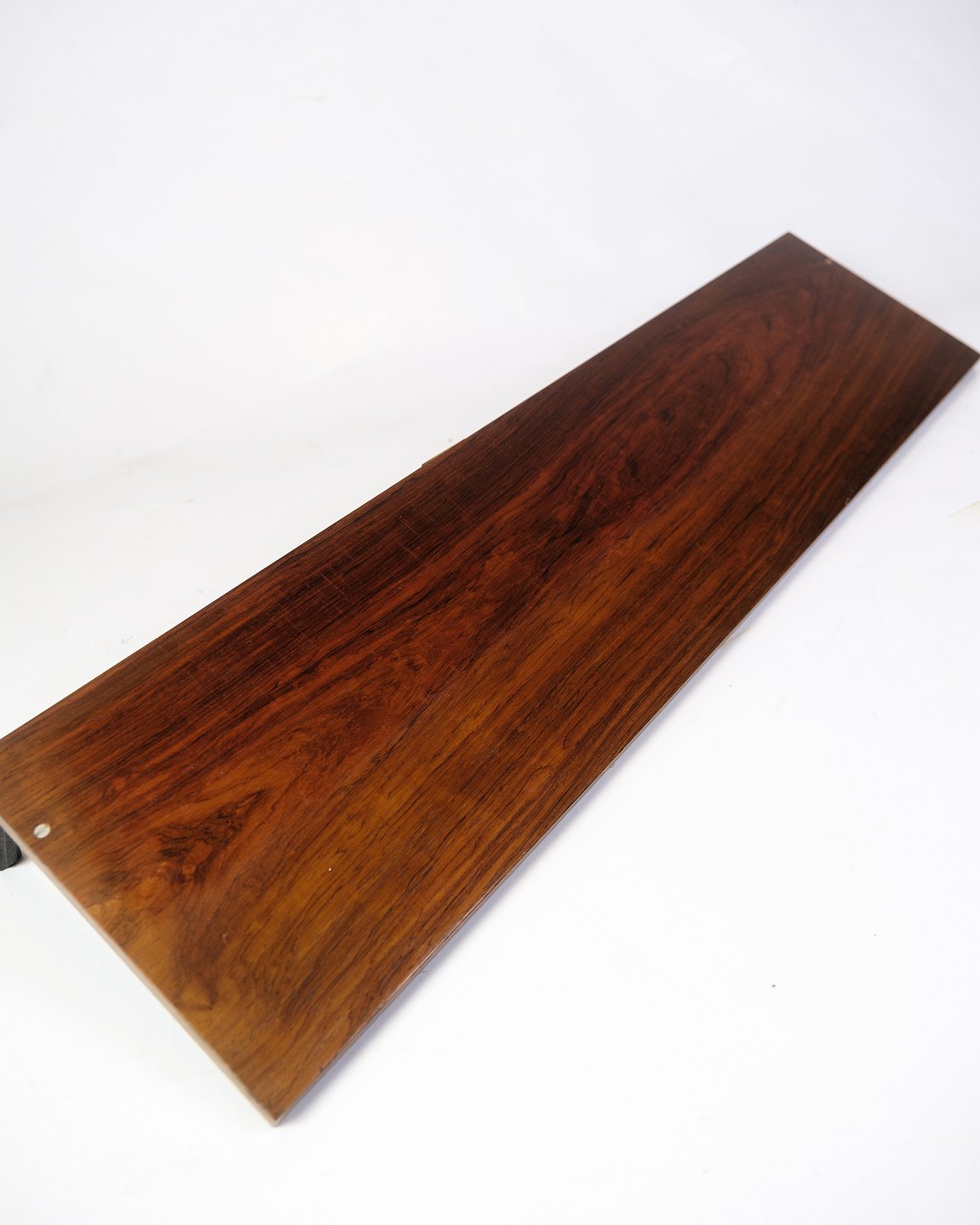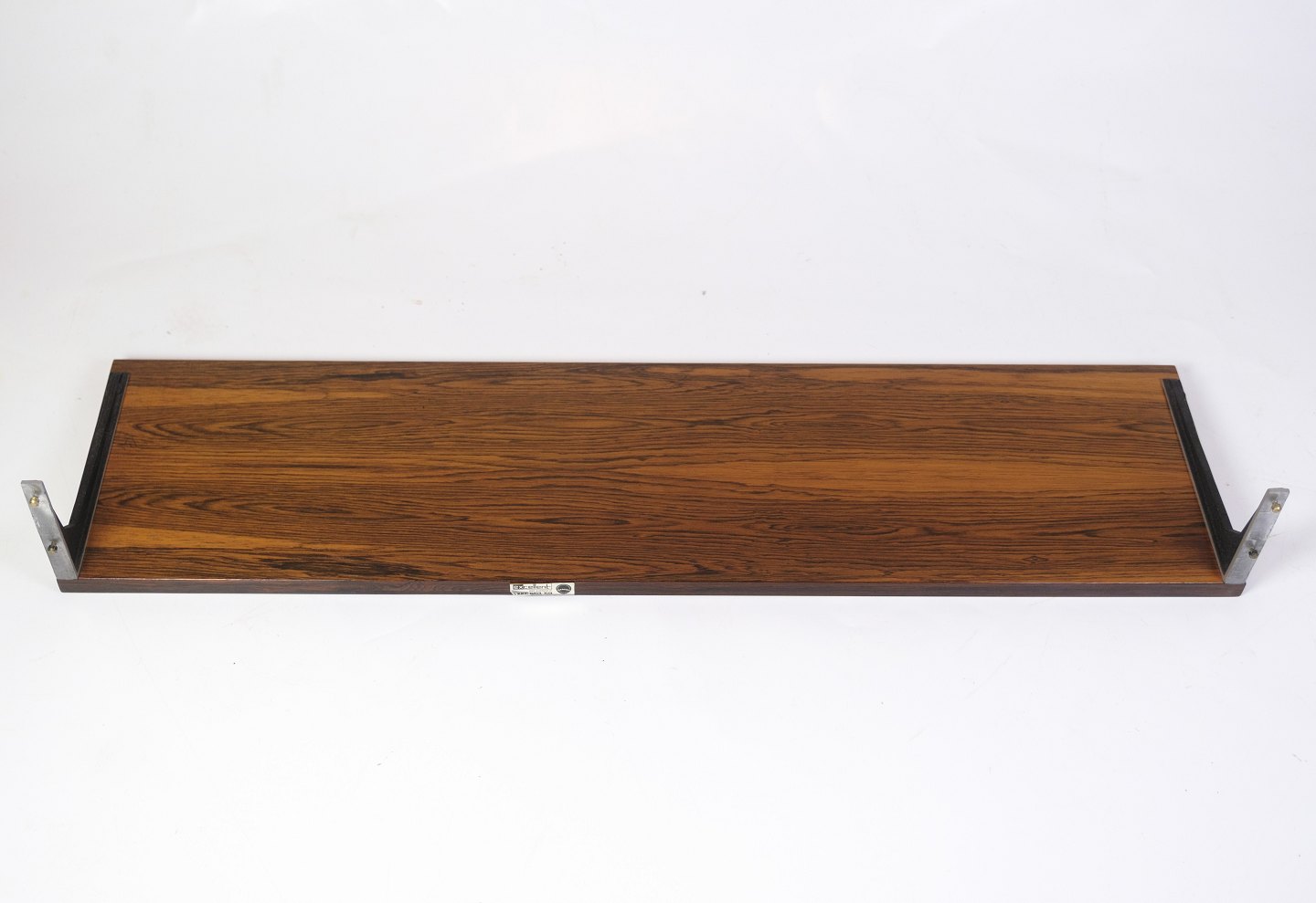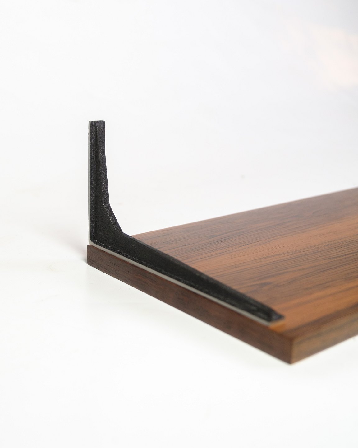 Shelf in rosewood with black lacquered metal suspension, designed by Albert Hansen as part of the Model Excellent series from the 1960s. The distinctive grain patterns and fine proportions make the shelf ideal for both decorative and practical purposes in the home.