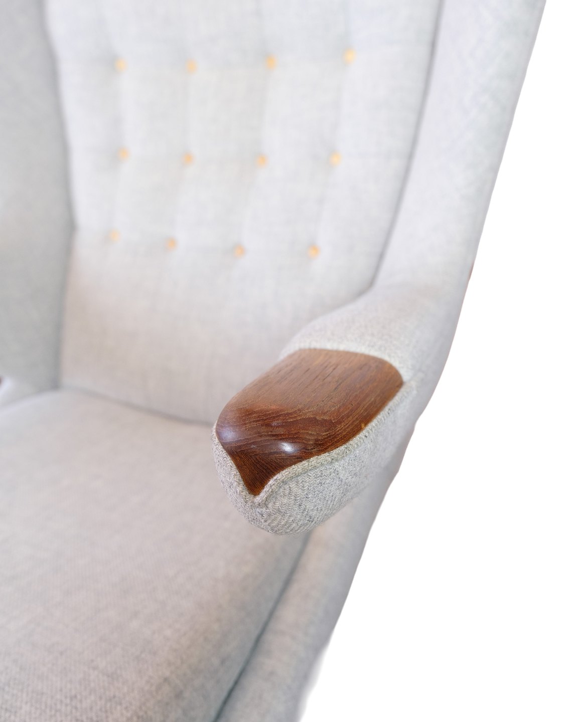Bamsestol - Model AP 19 - Lysegråt Hallingdal Stof - Negle Af Teak - Hans J. Wegner - P.P Møbler
