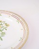 En frokosttallerken fra Royal Copenhagens serie "Flora Danica", dekoreret med håndmalet blomst og guldkant. Denne tallerken bærer dek. nr. 20/3550 og er fremstillet i 1960’erne.