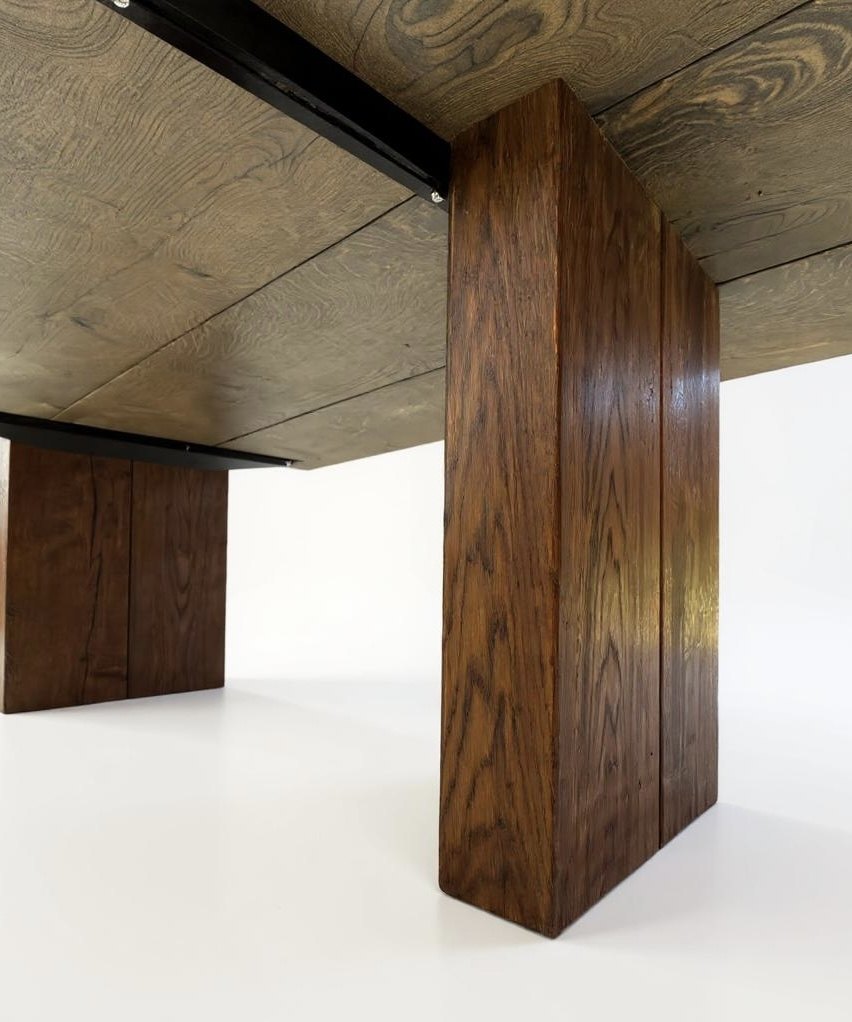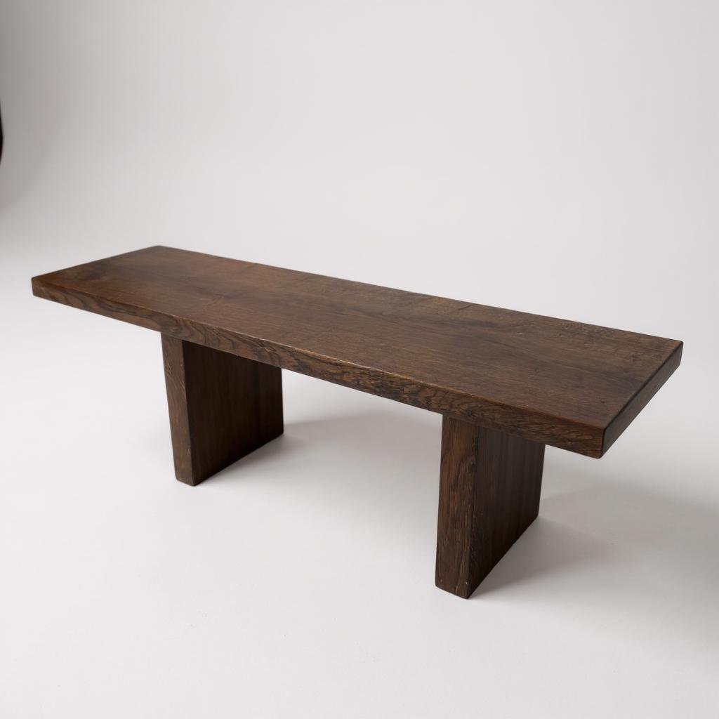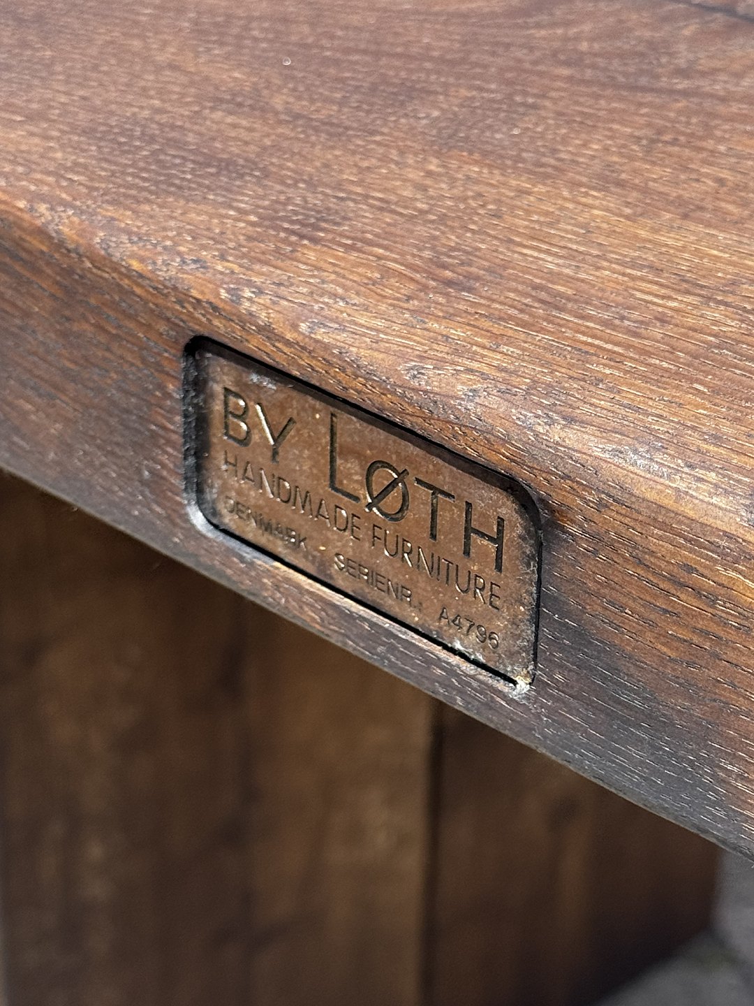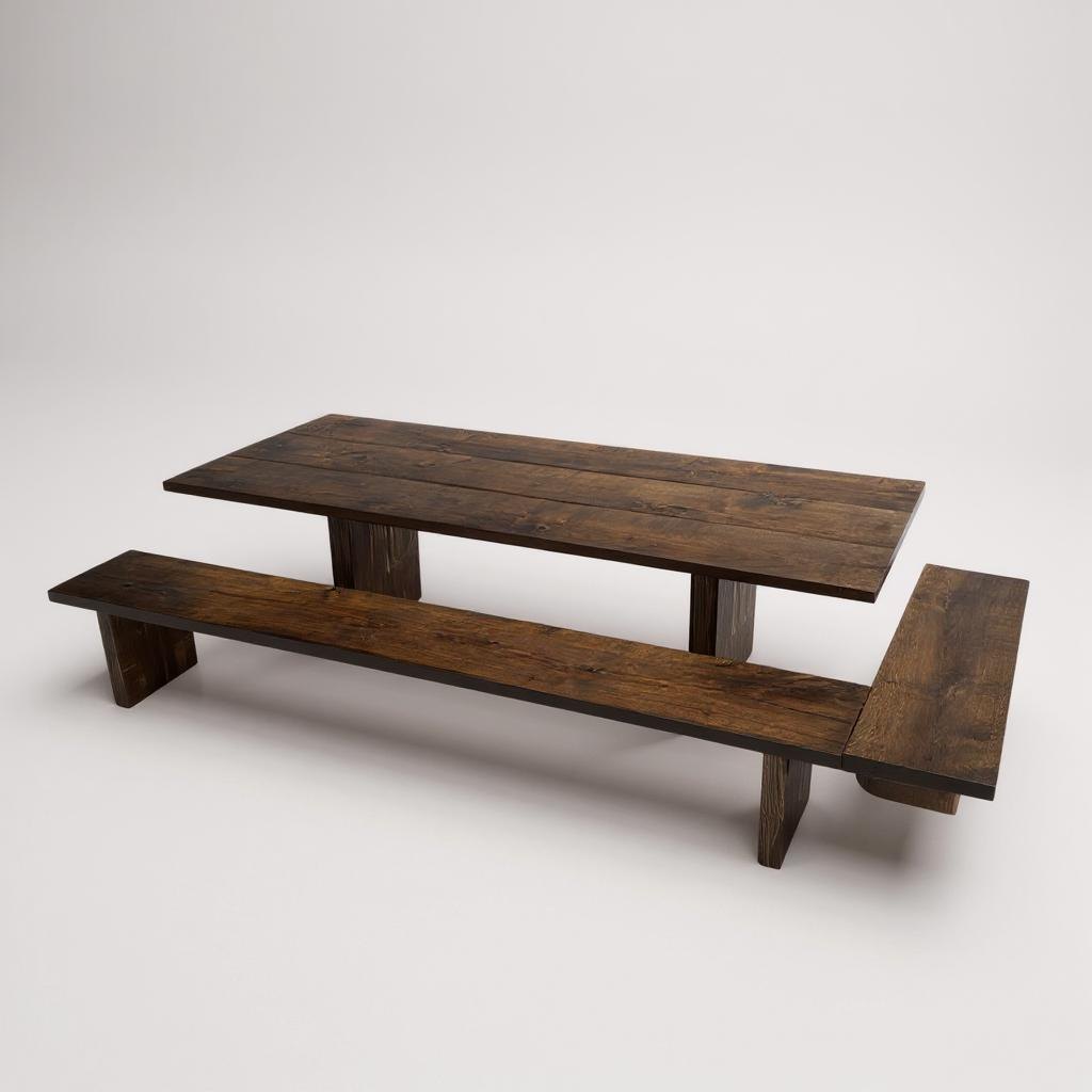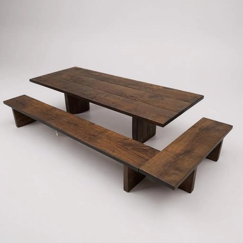 Håndlavet plankebord med tilhørende bænke, fremstillet i sortolieret eg. Sættet er designet og produceret af danske By Løth, kendt for deres kvalitet og rå æstetik. Bord og bænke har massive egeplanker med synlig åretegning og kraftigt understel i matchende træ.