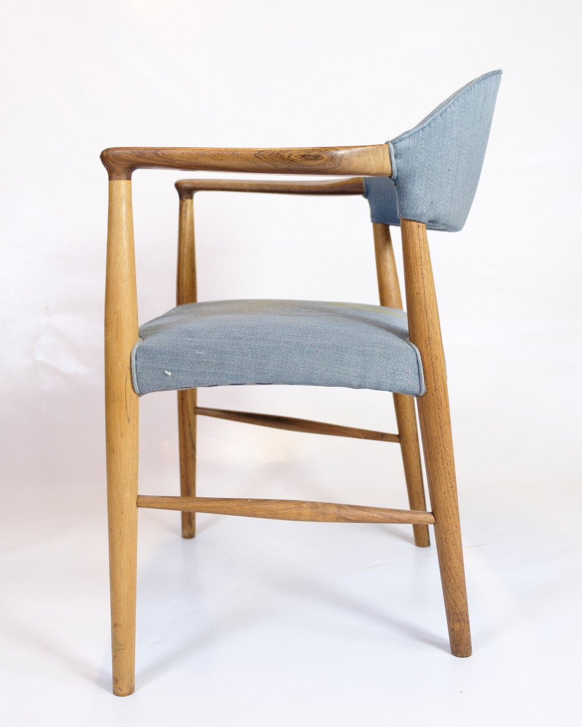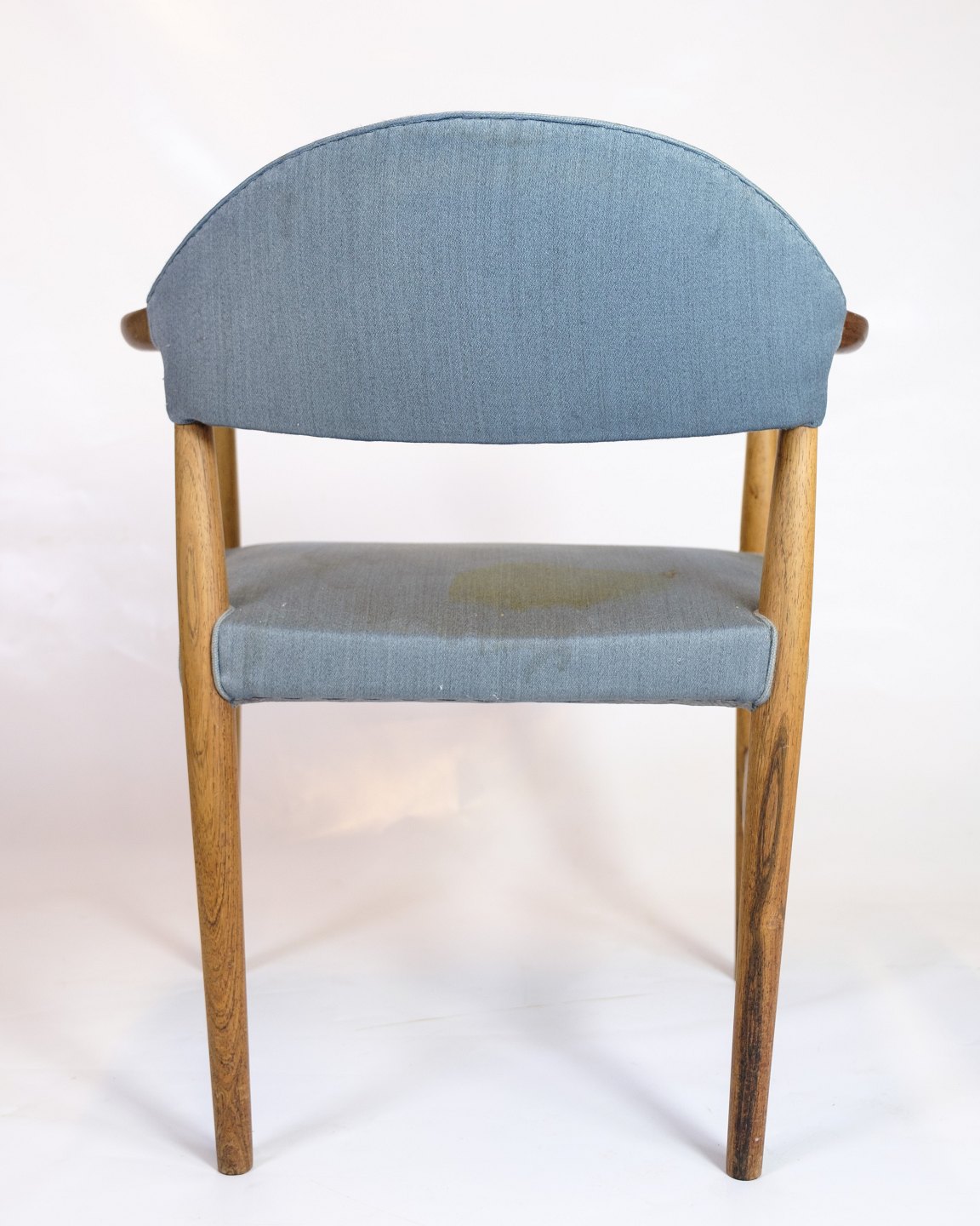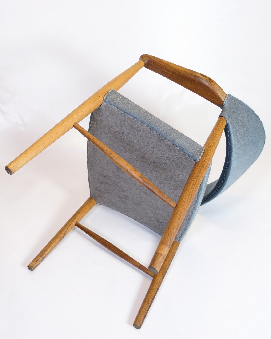 Danish armchair in teak with blue fabric seat designed by Kurt Olsen in the 1960s.