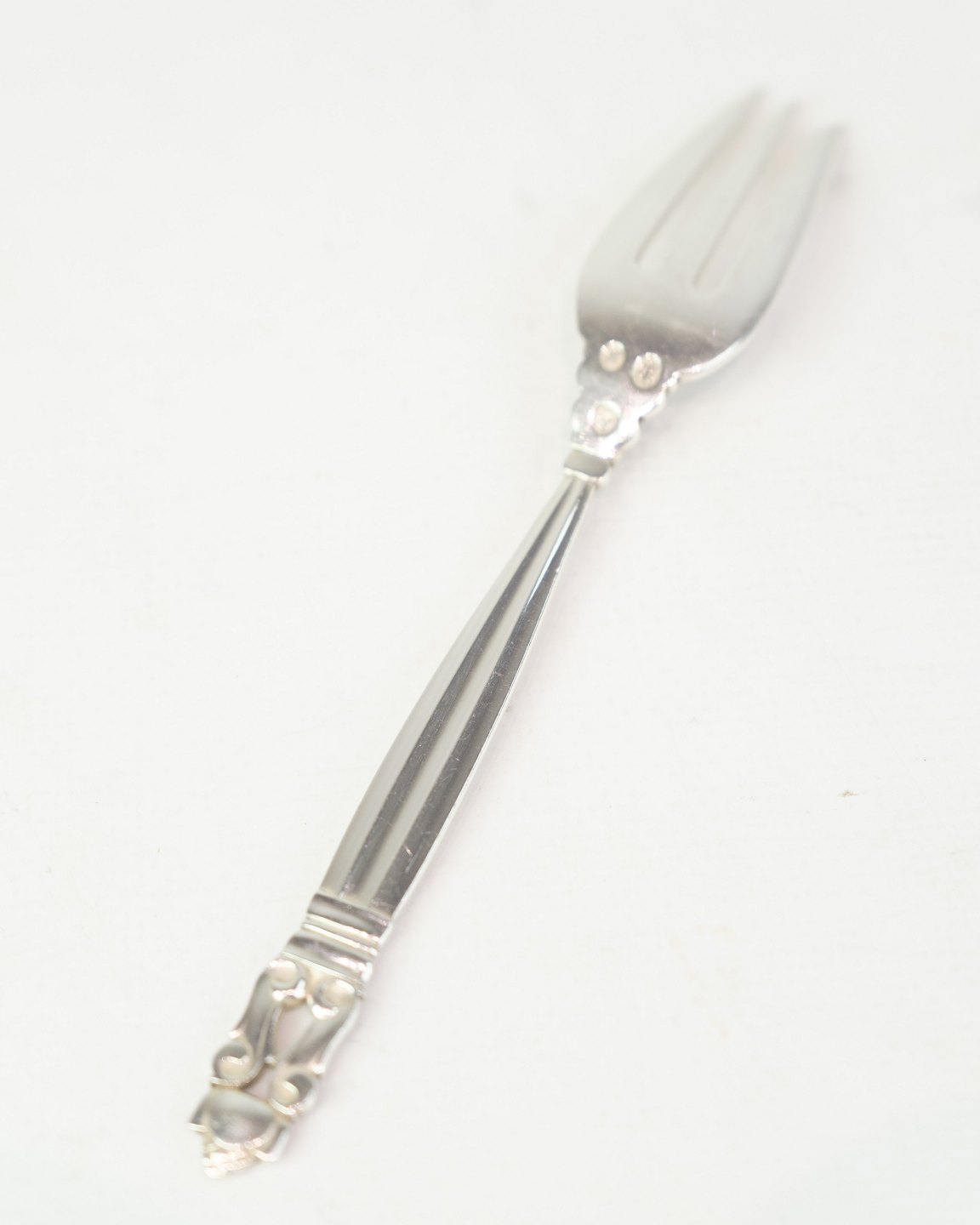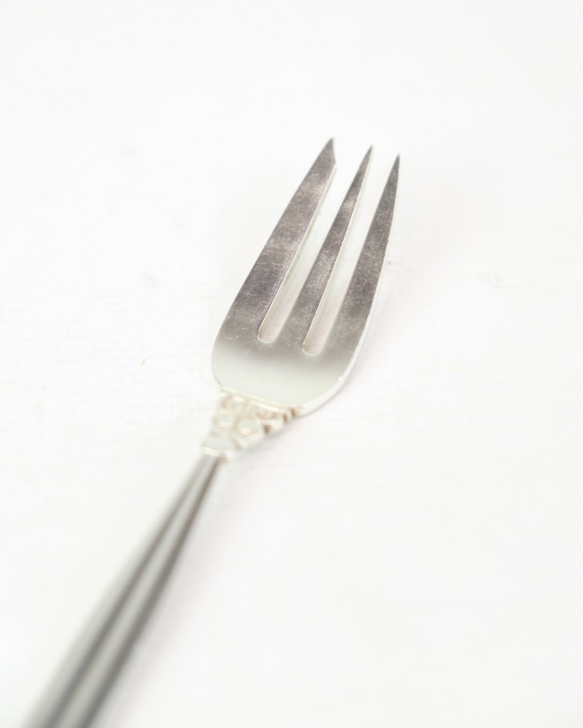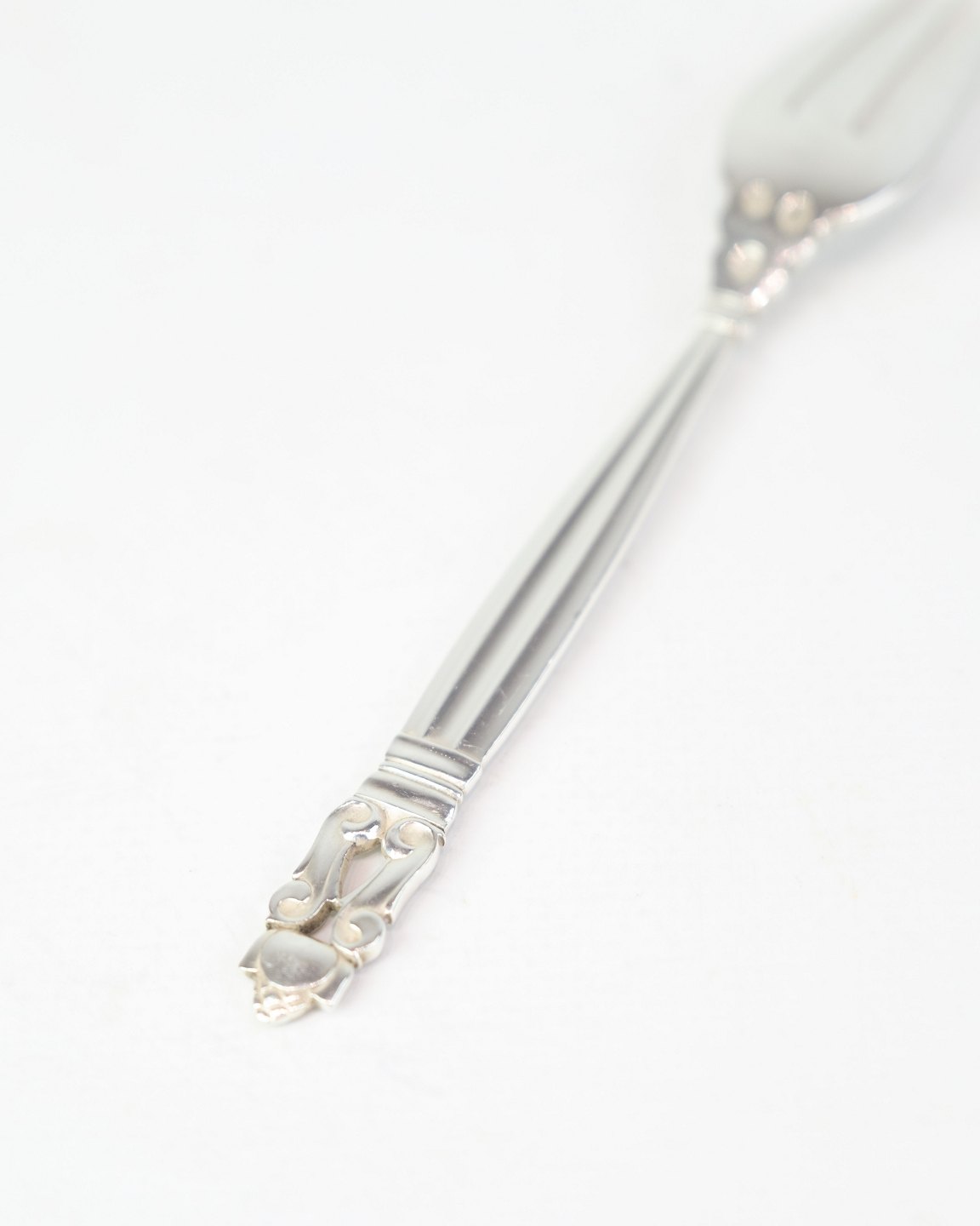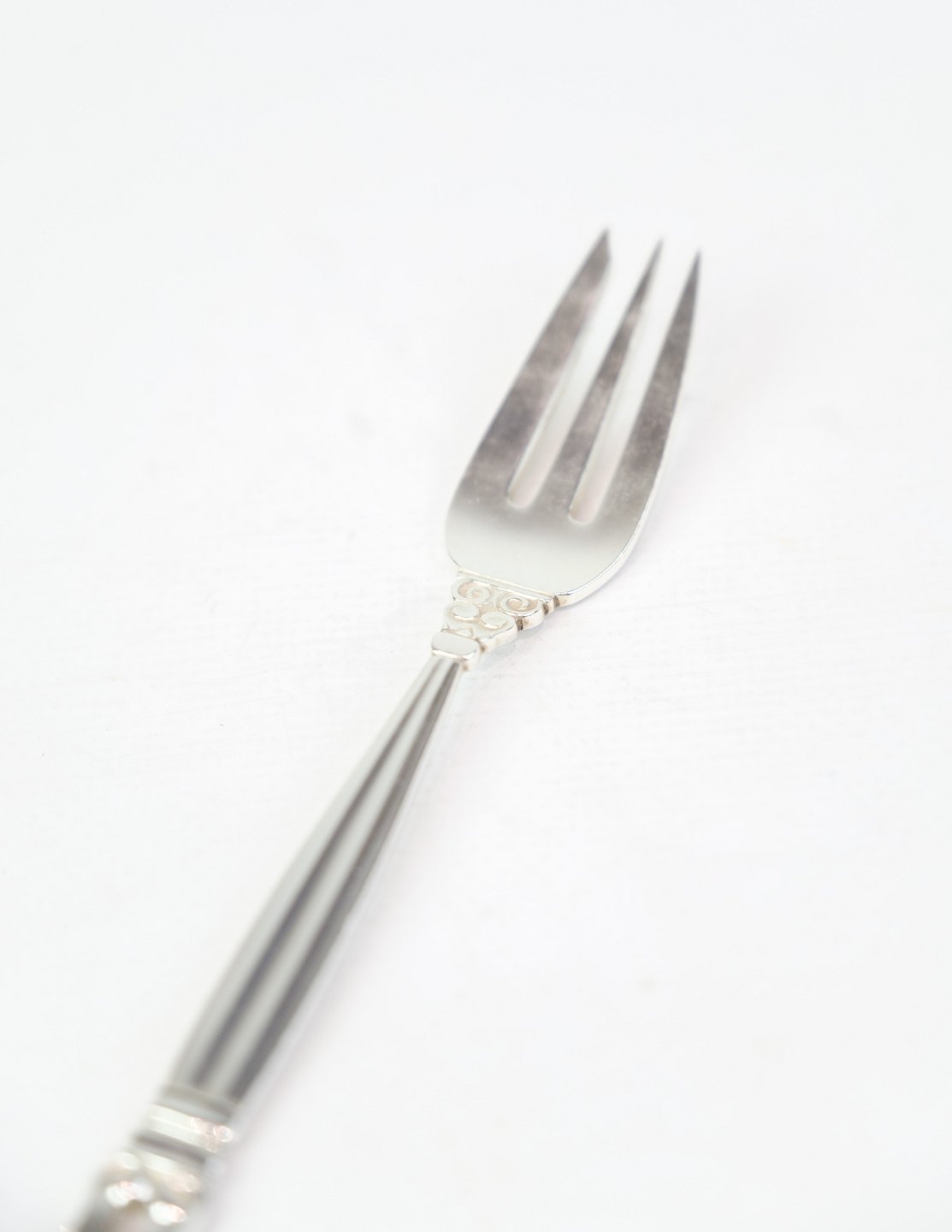 Georg Jensen Barnegaffel i sølv, mønster Konge. Designet af Johan Rohde i 1915. Længde 14 cm. Klassisk dansk sølvarbejde.