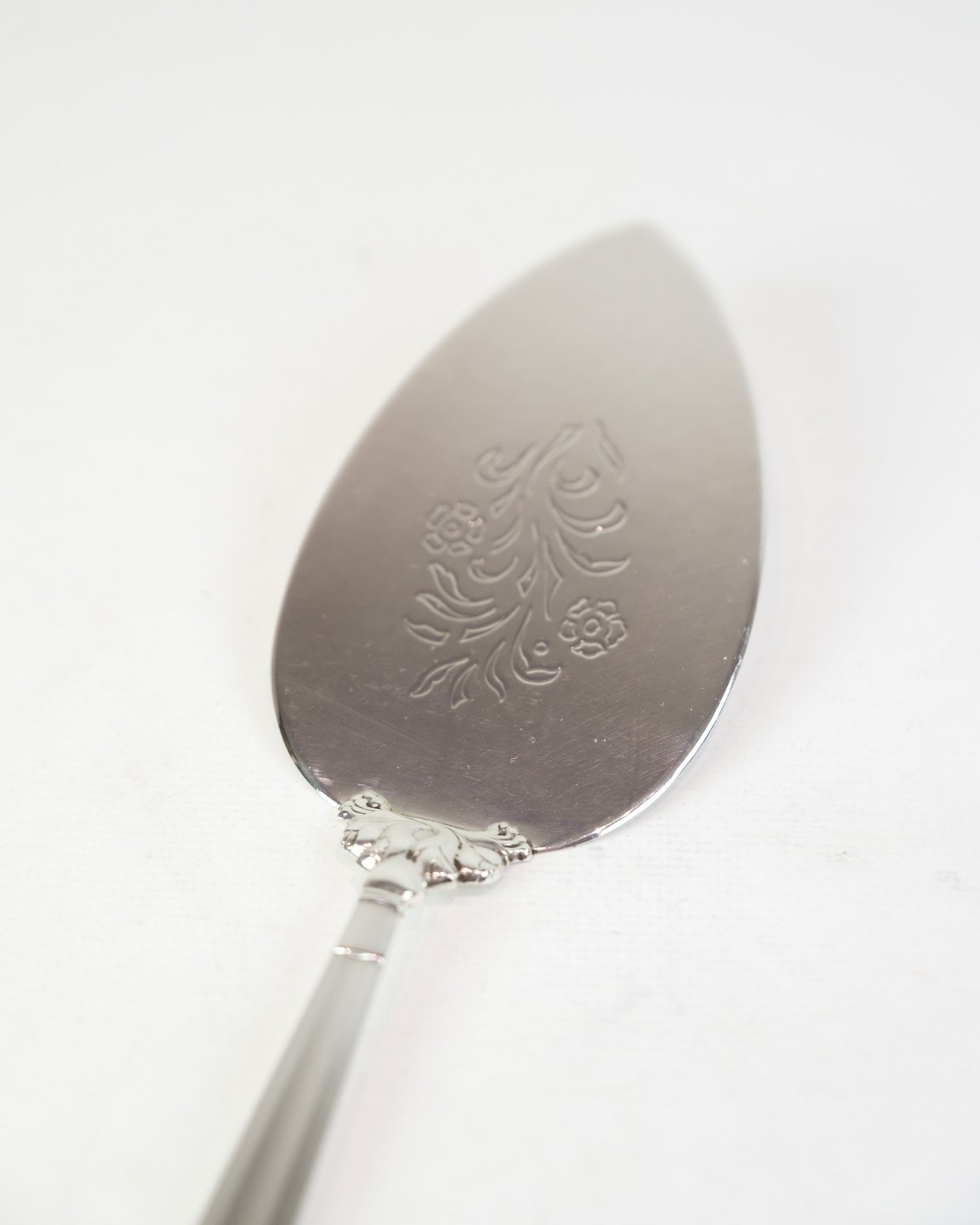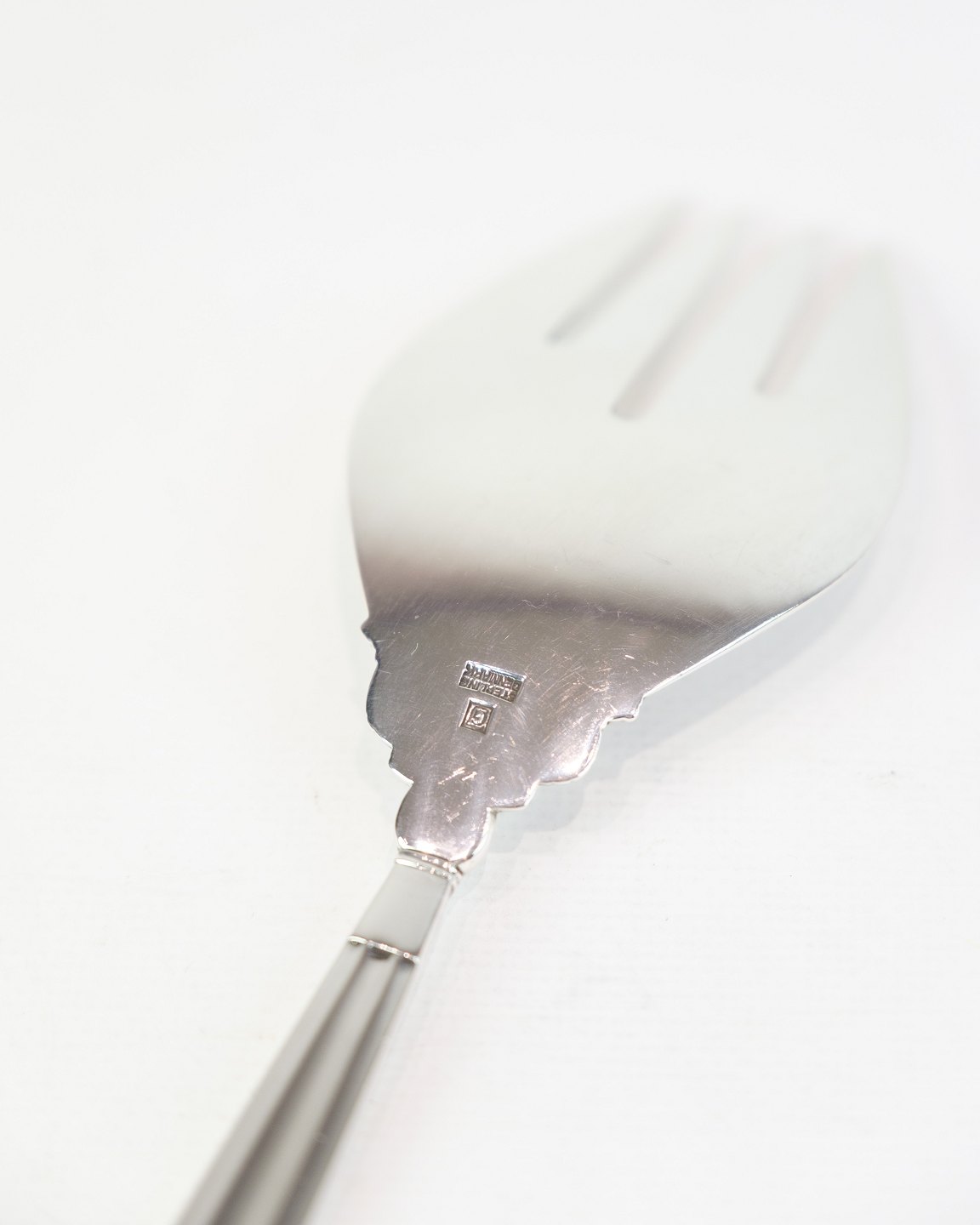 Georg Jensen serveringssæt i Konge mønster. Sterling sølv spade (No. 193, 26,5 cm) og gaffel (No. 114, 24 cm). Design af Johan Rohde 1915.
