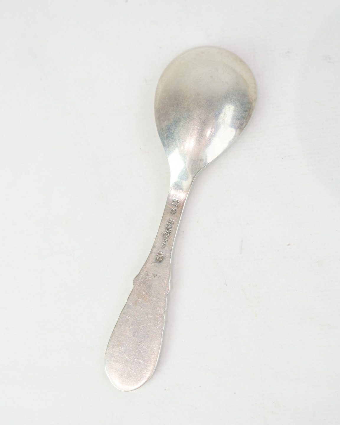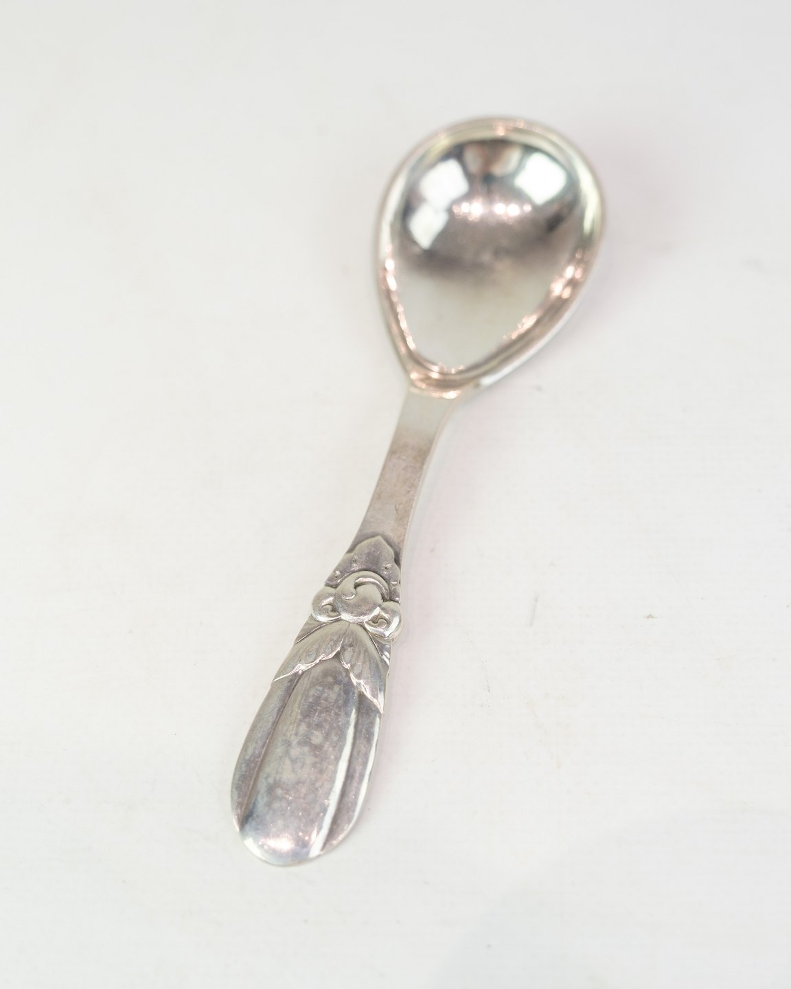 SolgtEvald Nielsen caviarske i ægte sølv. Hammerslået mønster, Model No. 16. Længde 14 cm. Klassisk dansk sølvarbejde.