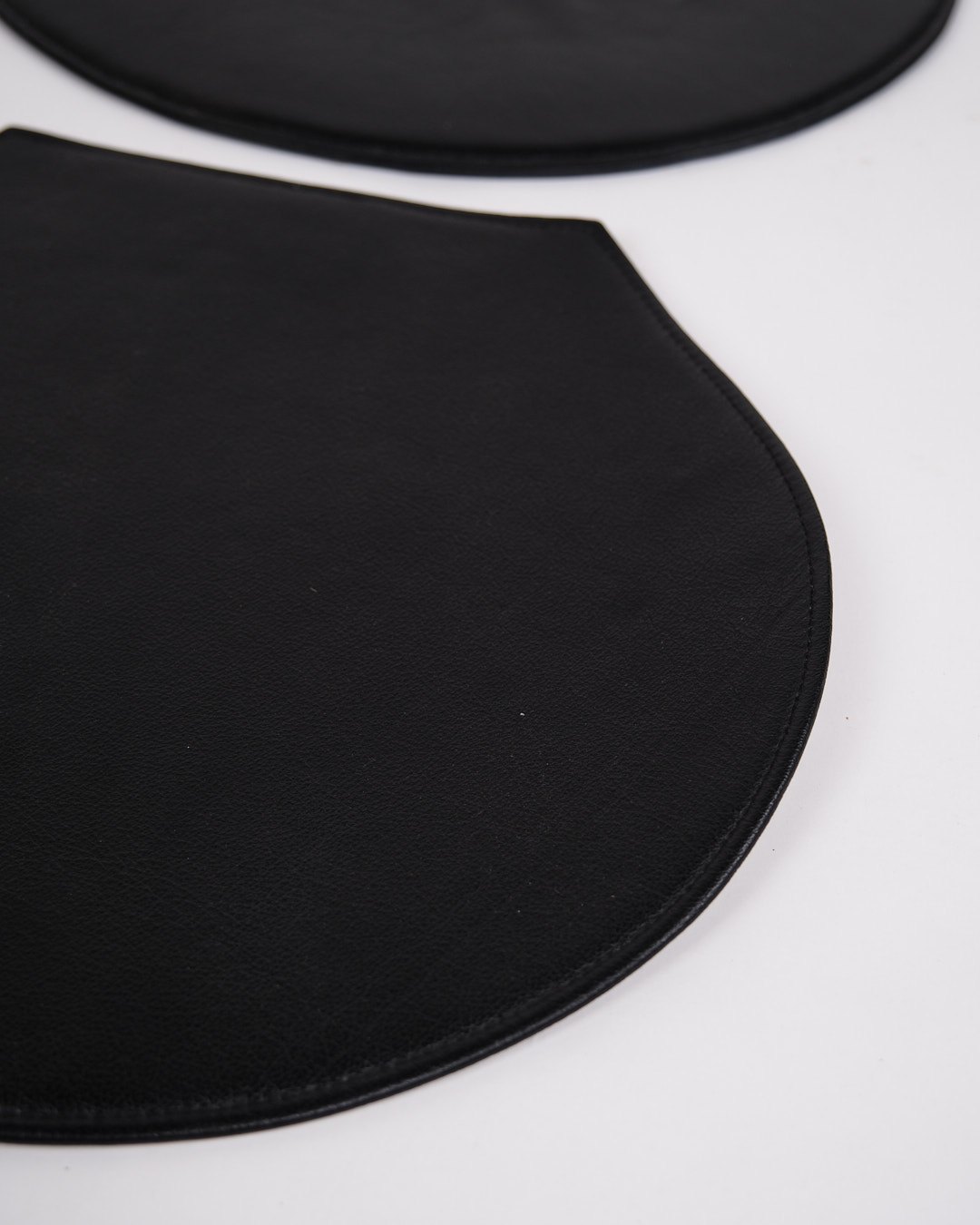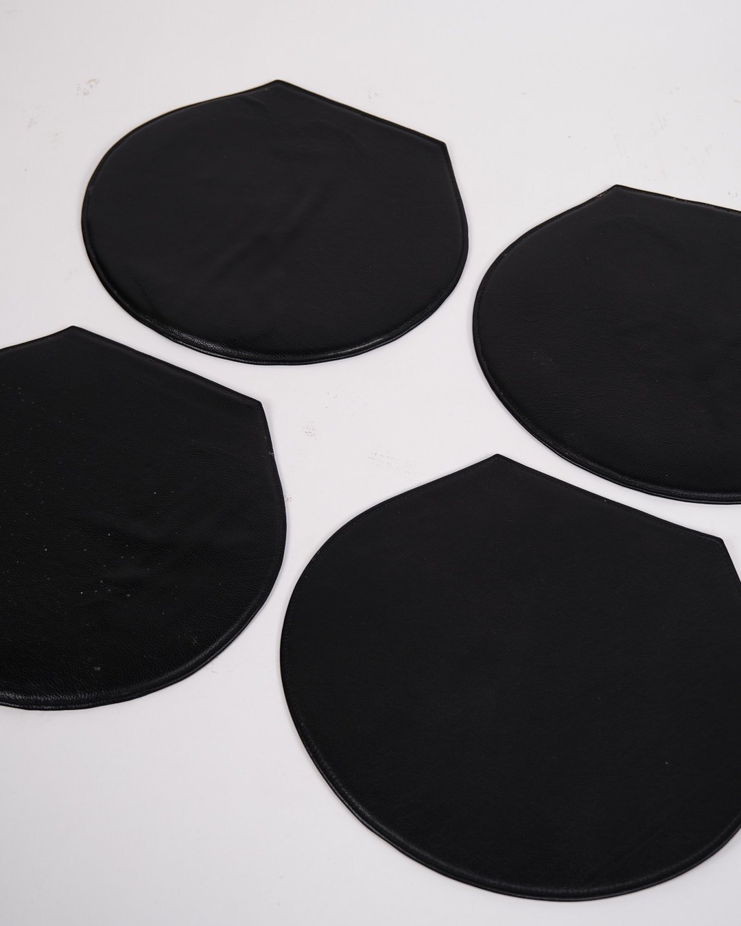 SoldSet of four black leather cushions for Arne Jacobsen chair model 3107. Fit design. Comfortable and stylish accessory for Danish design classic.