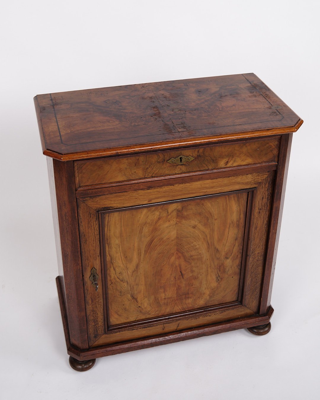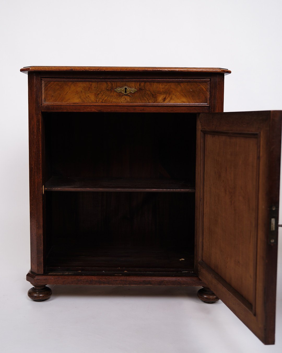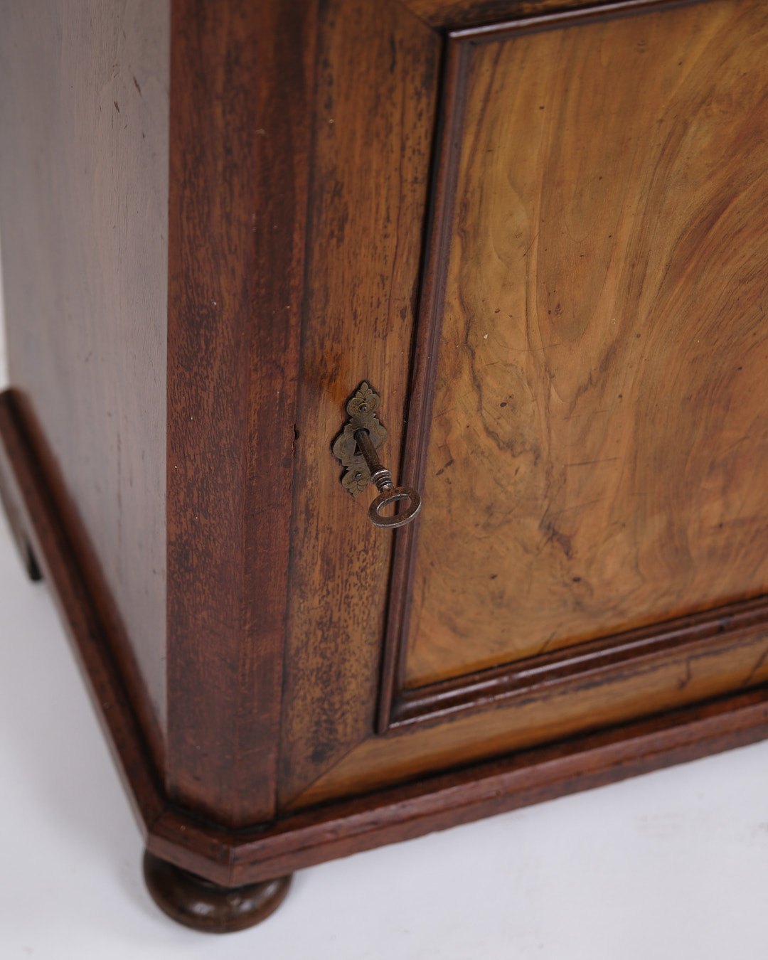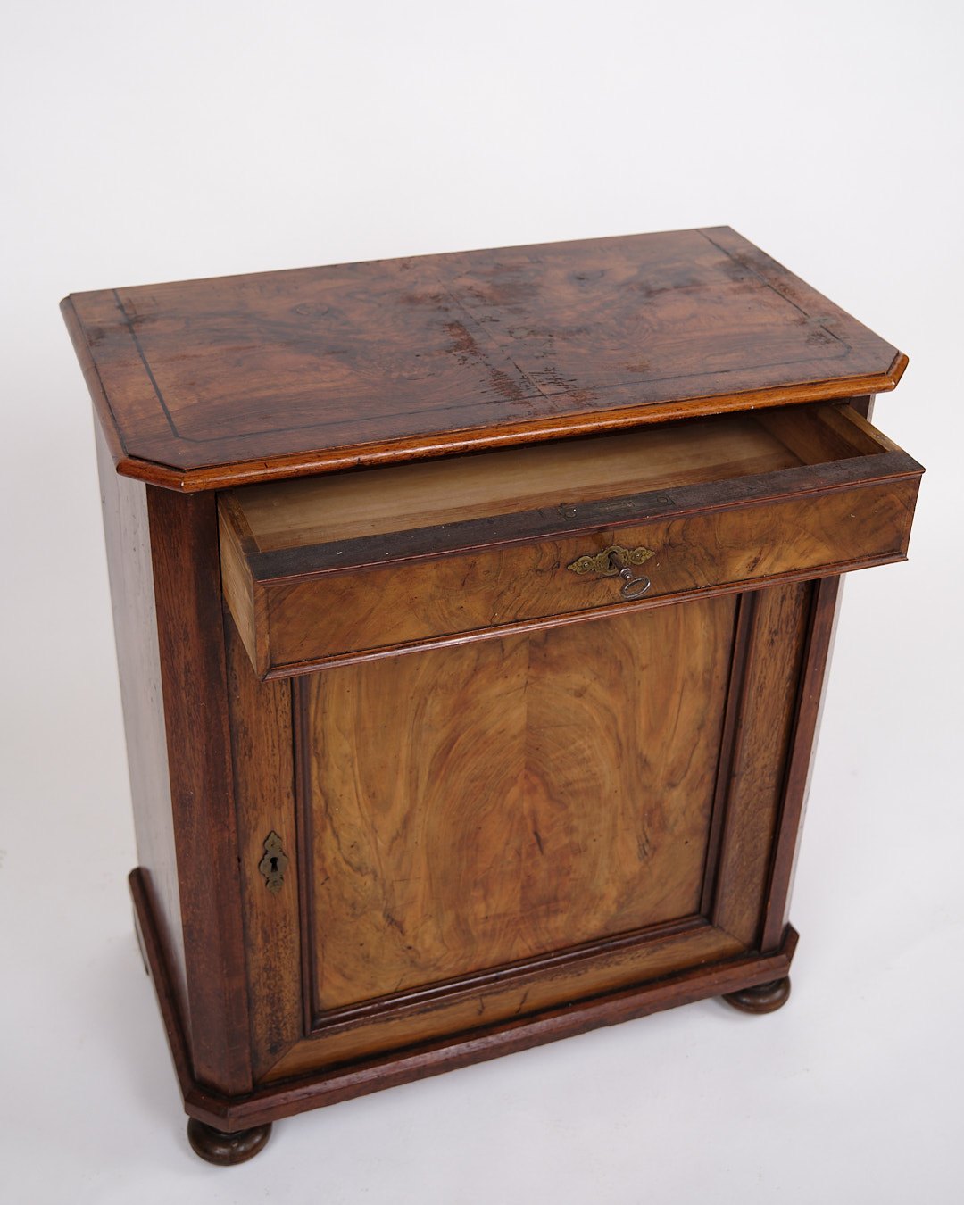 Lille Antikt Konsol/Skab - Entré Møbel - Mahogni & Nøddetræ - Runde Ben - 1880erne