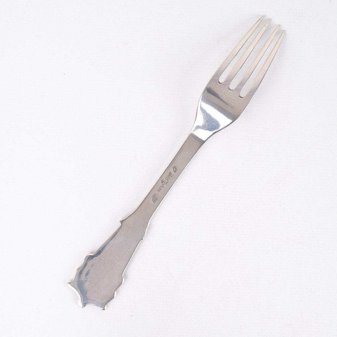 Gaffel med Konge-mønster af Evald Nielsen. Sølv 830s, stemplet.
