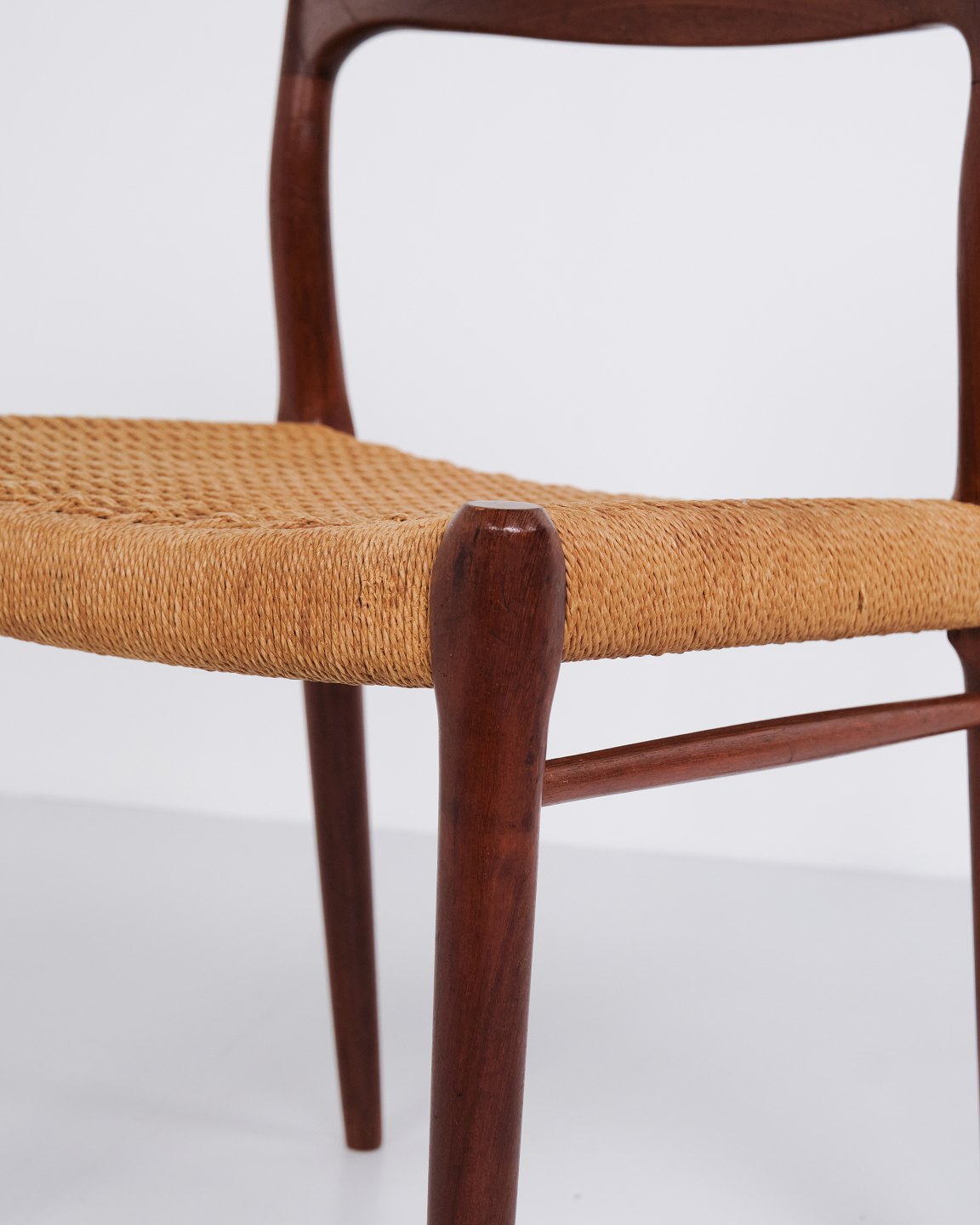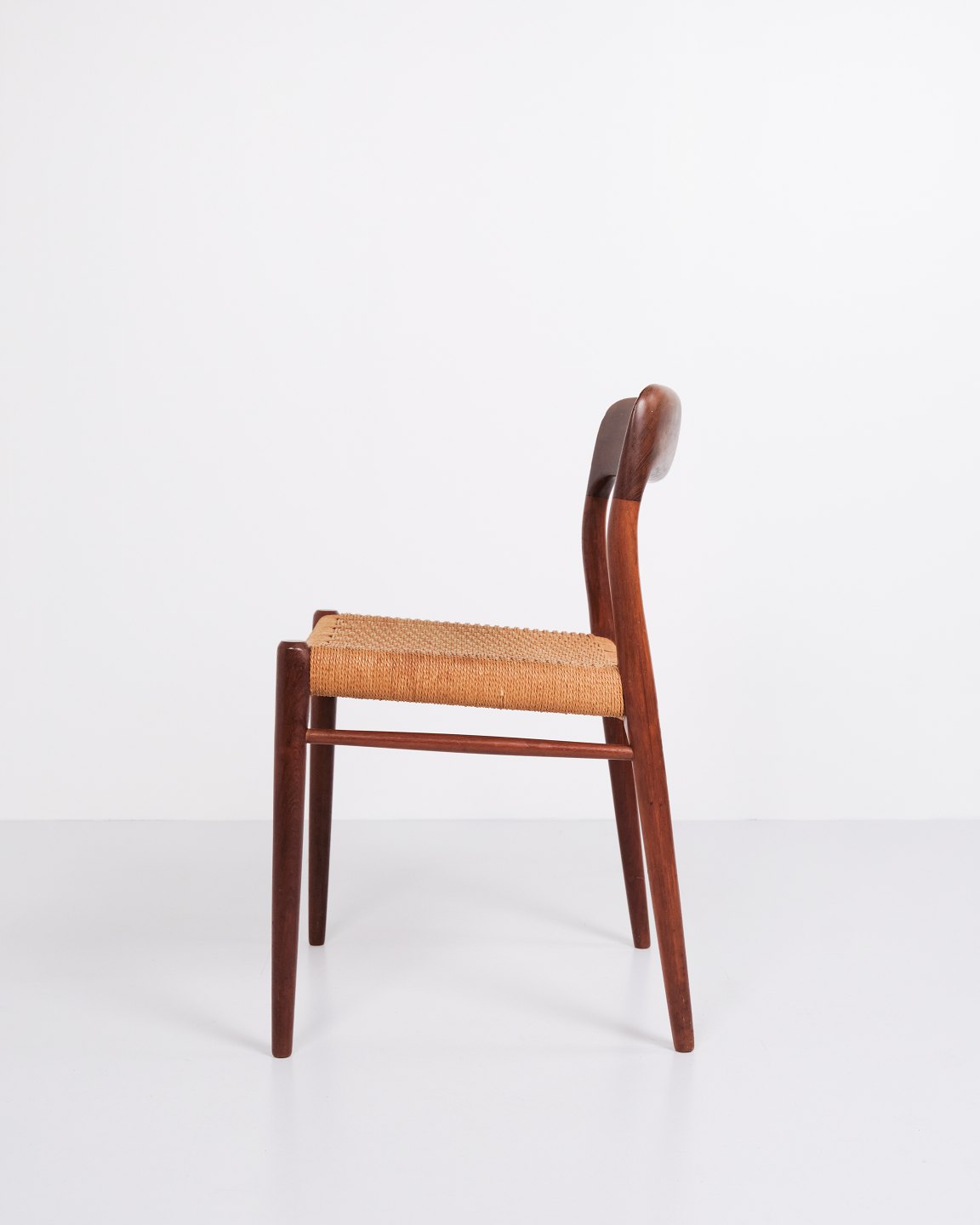 Set of Five Dining Chairs - Model 75 - Teak - Paper Wicker - N.O Møller - 1960s