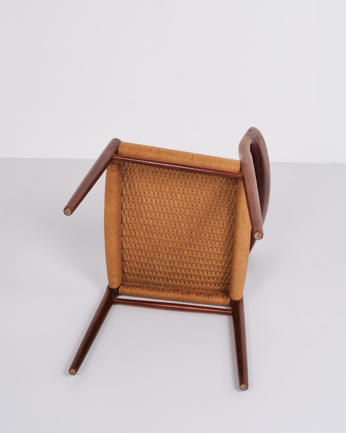 Set of five N.O. Møller dining chairs, model 75. Teak and paper wicker, 1960s.