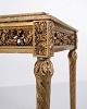 Antik Louis XVI salonbord fra 1850’erne med marmorplade, forgyldt træ og detaljerede udskæringer. Louis XVI møbelstil 1800-tallet.