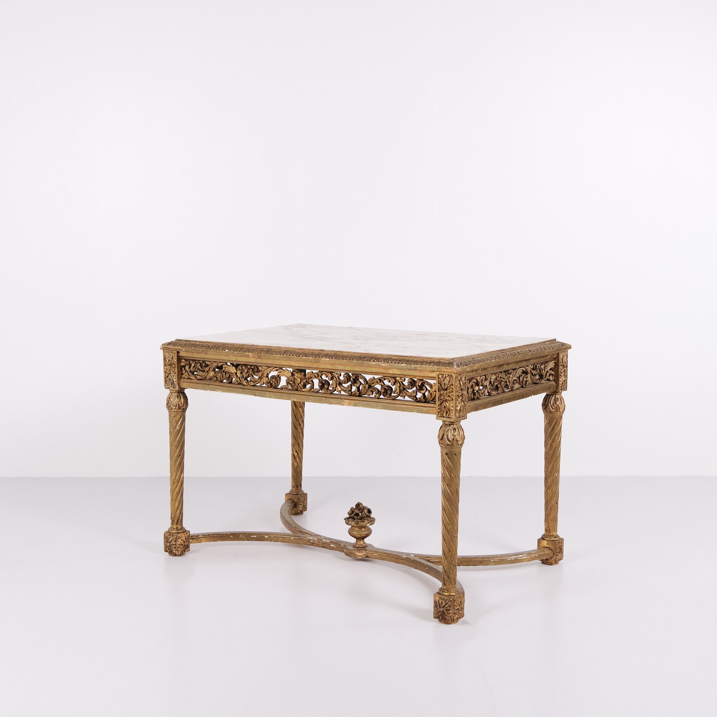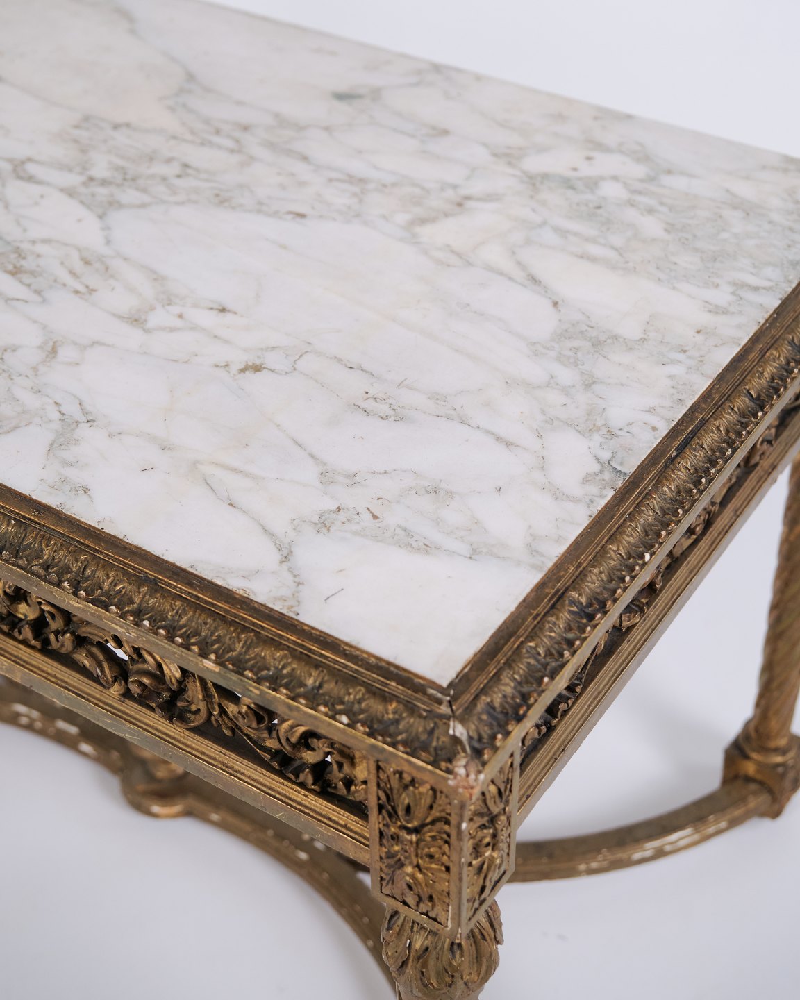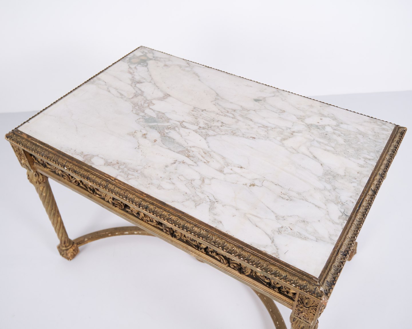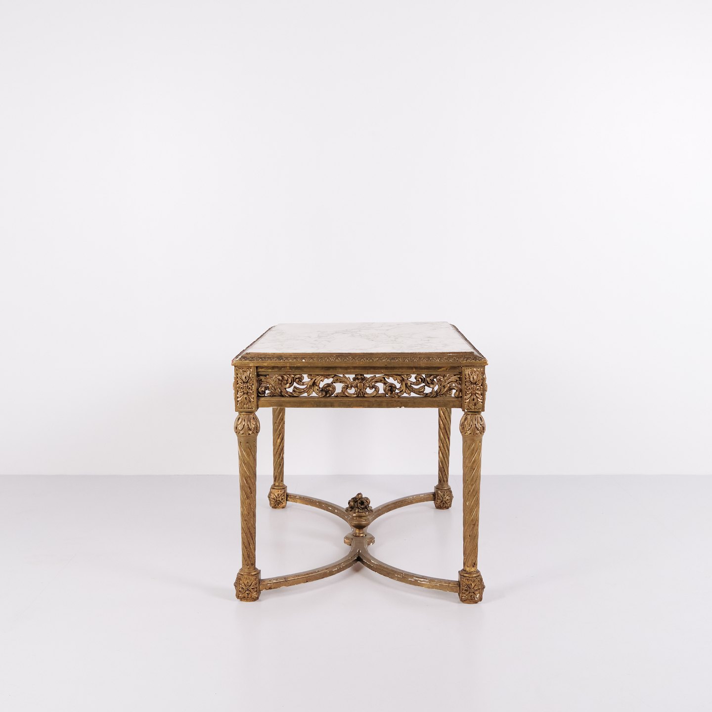 Antik Salonbord Med Marmorplade – Detaljerede Udskæringer – Forgyldt Træ – Louis XVI-stil – År 1850erne