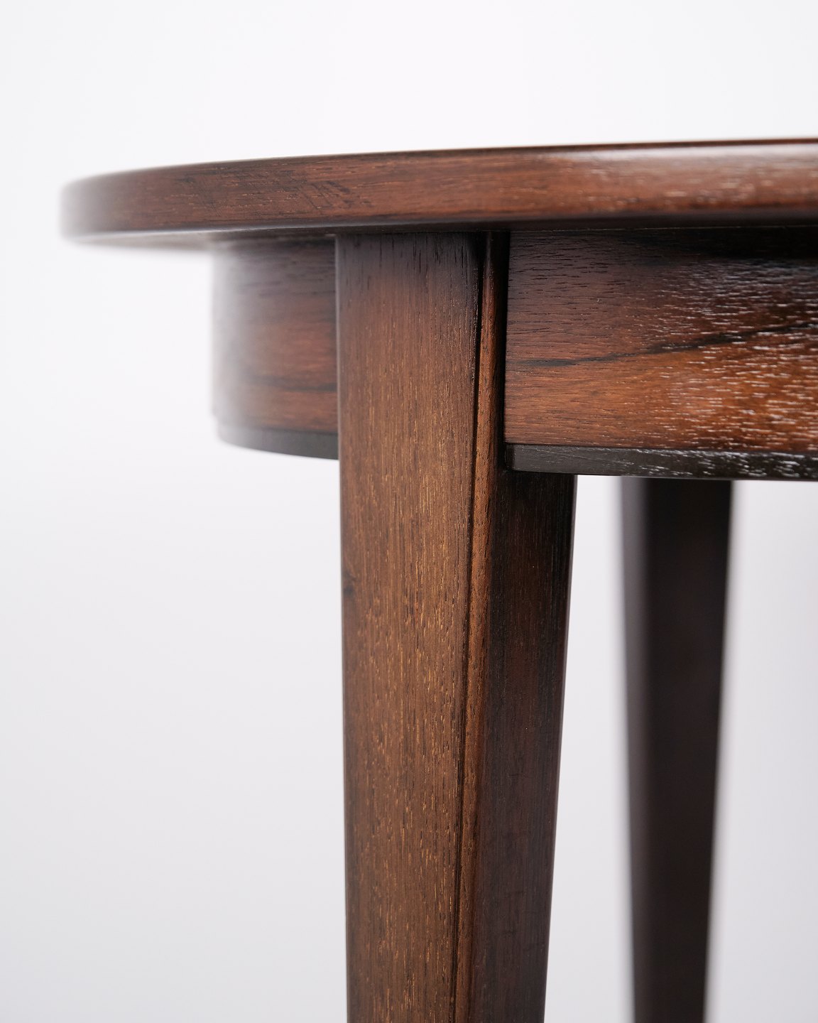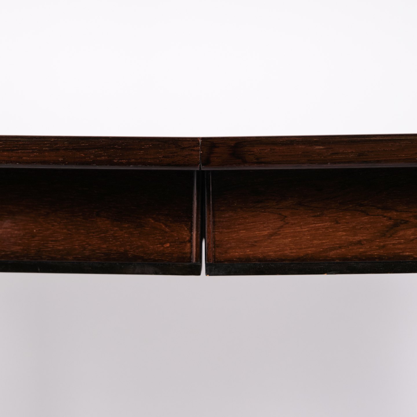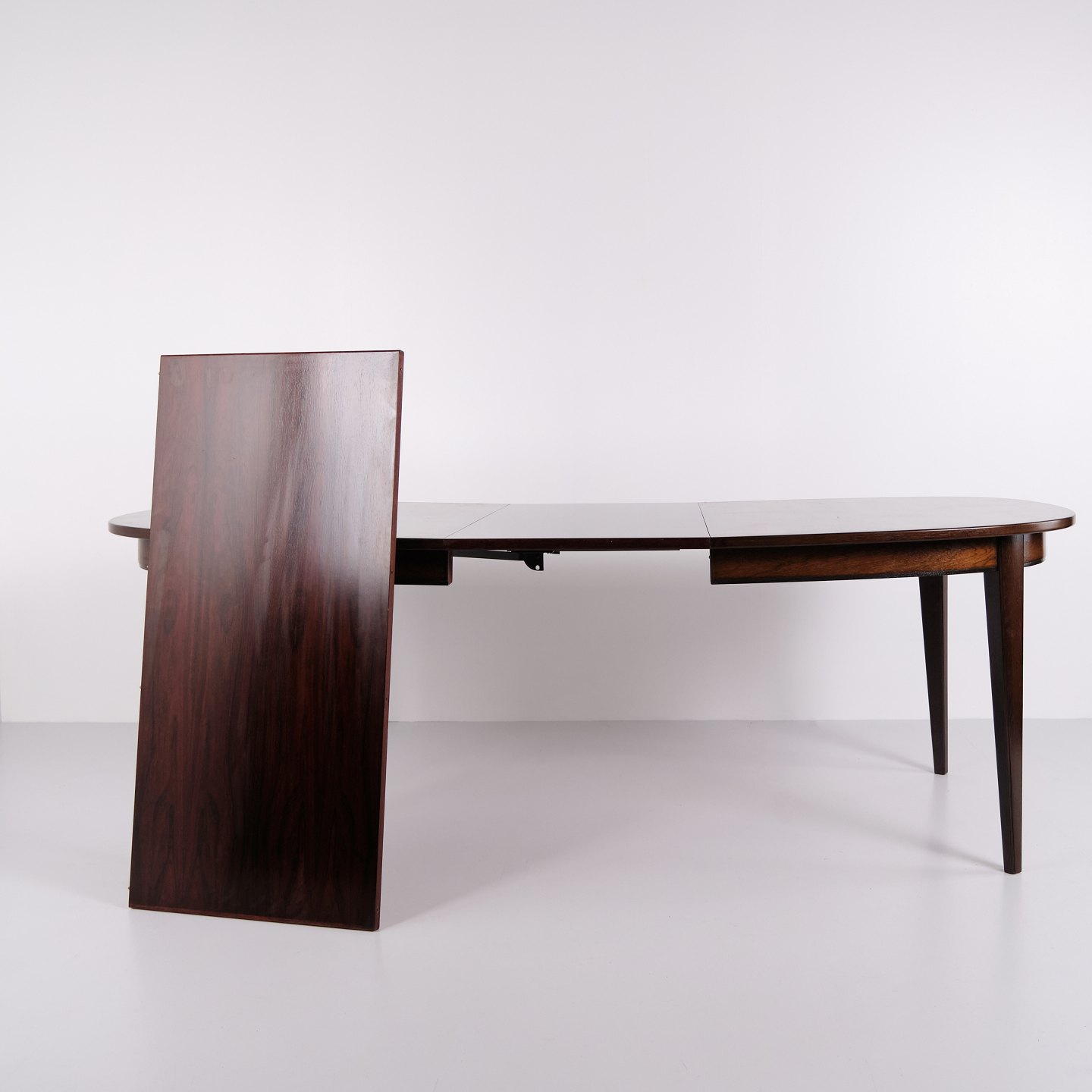 Omann Jun model 55 spisebord af Gunni Omann i palisander med tillægsplader fra 1960’erne. Dansk design palisander spisebord.