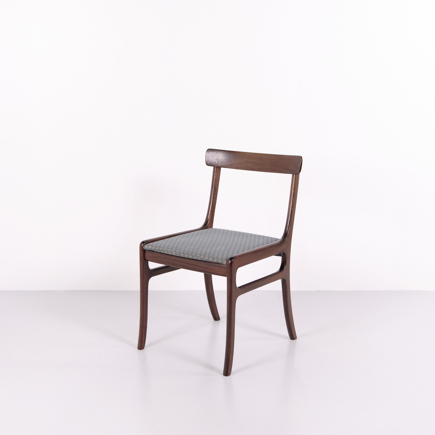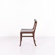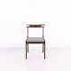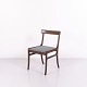 Sæt spisebordsstole fra serien Rungstedlund, designet af Ole Wanscher i 1950’erne og fremstillet hos Poul Jeppesen Møbelfabrik i Danmark. Stolene er kendetegnet ved deres elegante proportioner, slanke konstruktion og klassiske udtryk, som er typisk for Ole Wanschers tilgang til dansk møbeldesign.