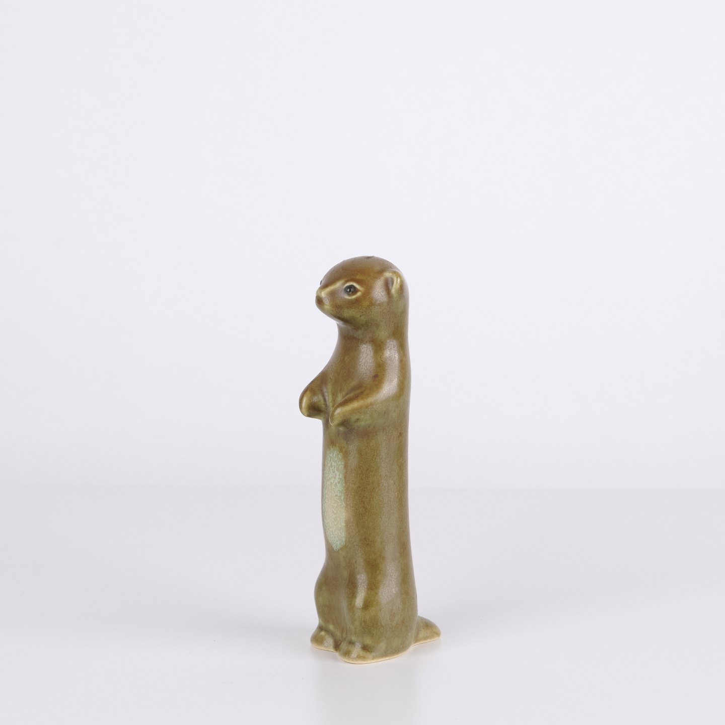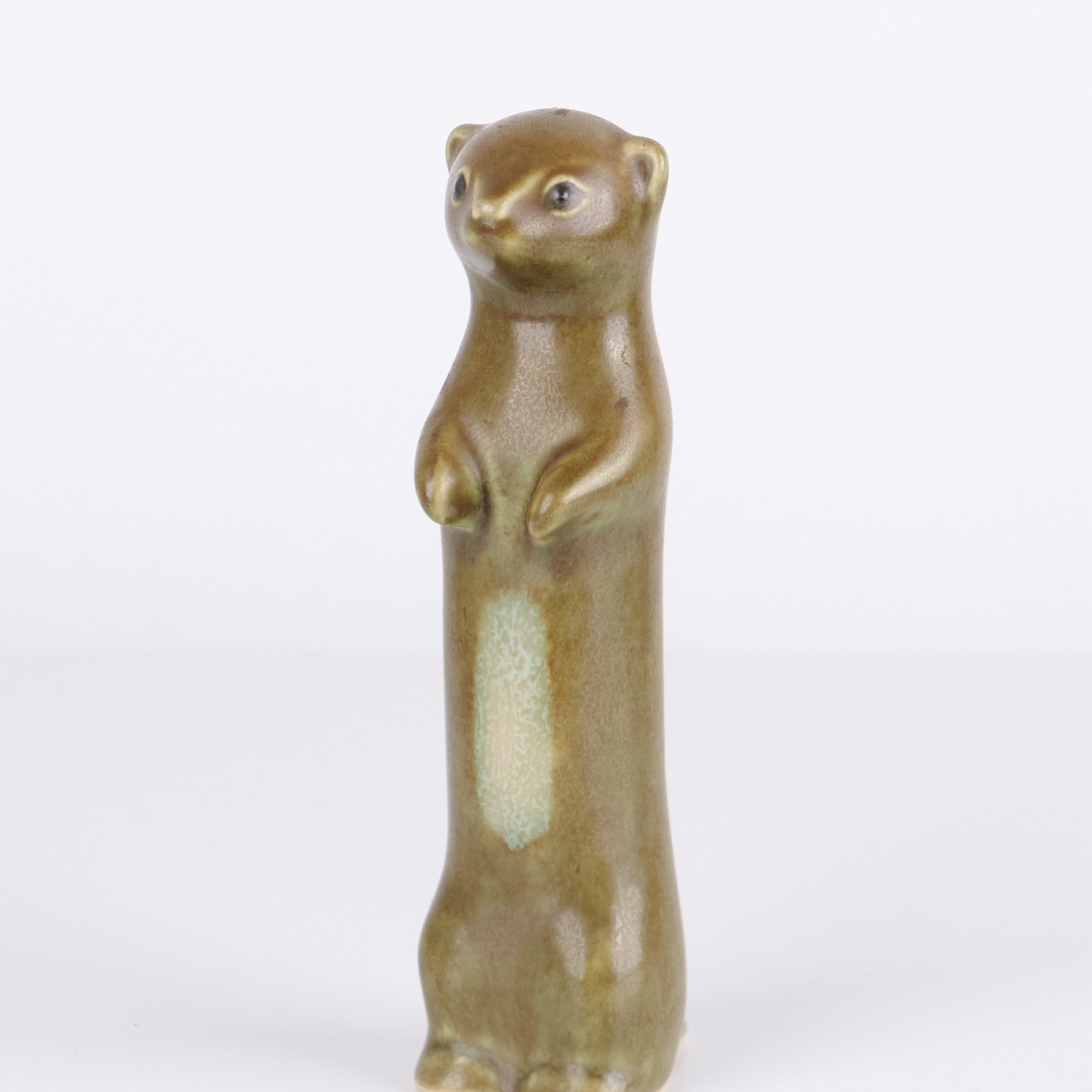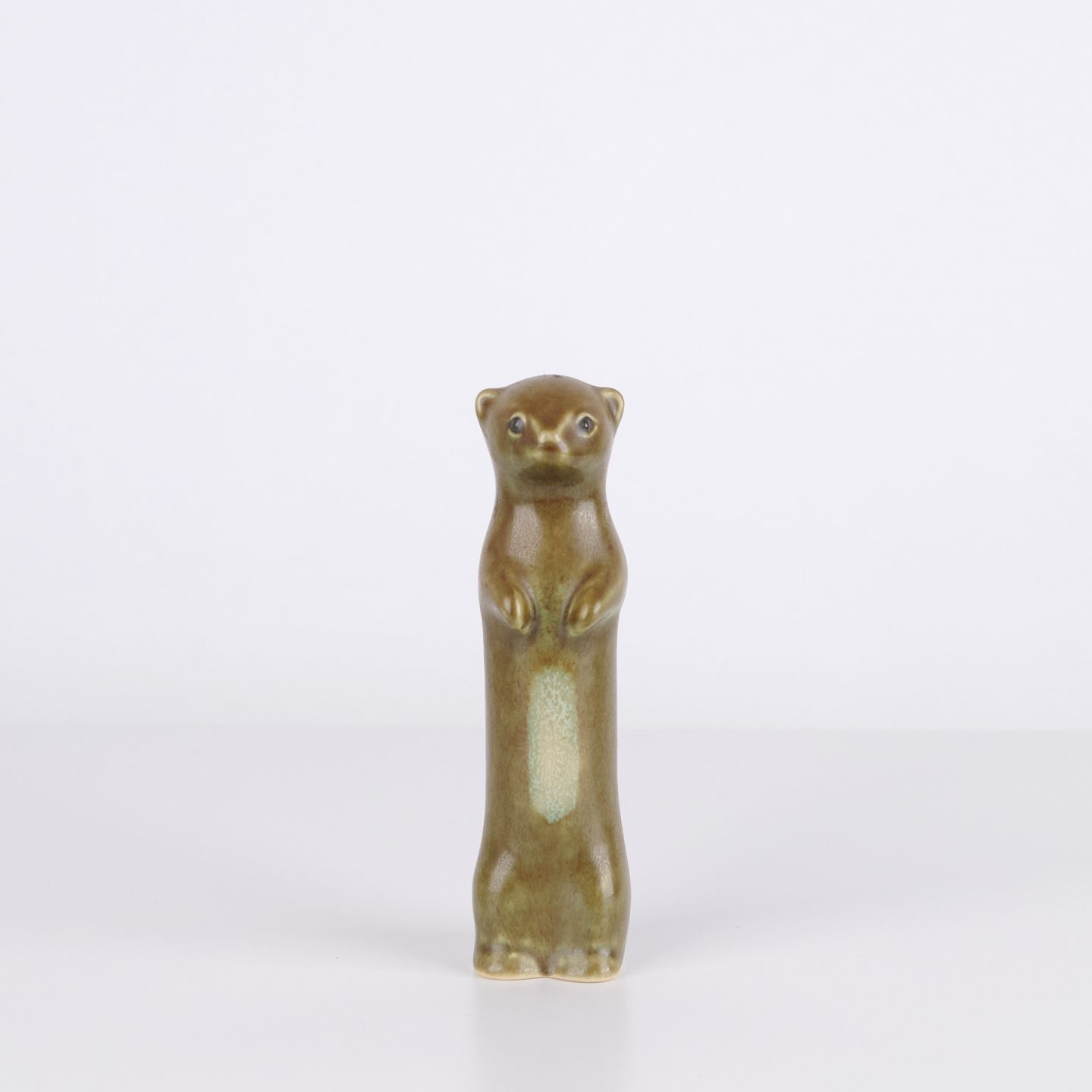 Dyrefigur af Knud Basse udført i glaseret keramik. Figuren forestiller fritte eller hermelin og er fremstillet i Danmark i 1960’erne. Knud Basse er kendt for keramiske dyrefigurer med naturmotiver og mindre serier produceret i perioden.