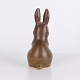 Stor harefigur af Knud Basse udført i brun glaseret keramik. Figuren er modelleret i opret siddende form med lange ører og fine håndmalede øjne.